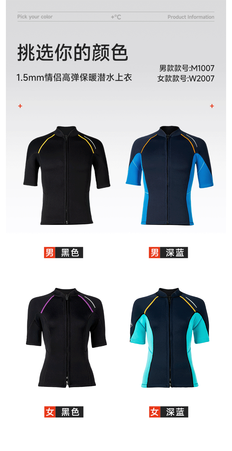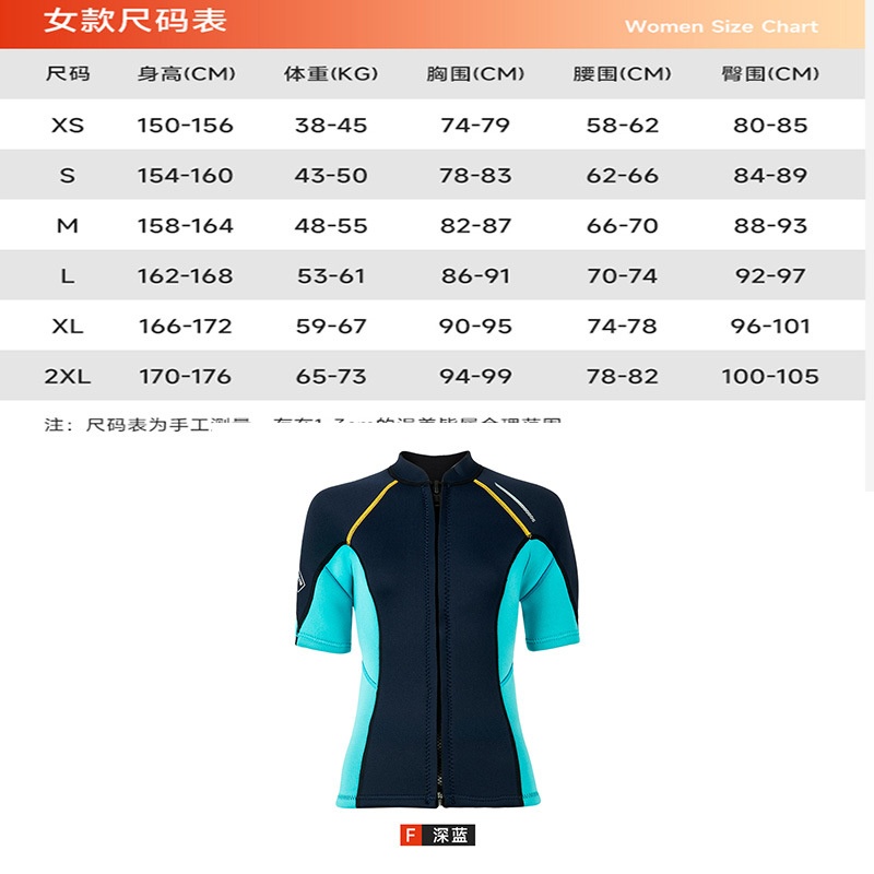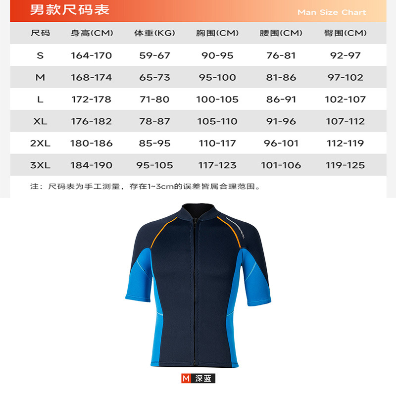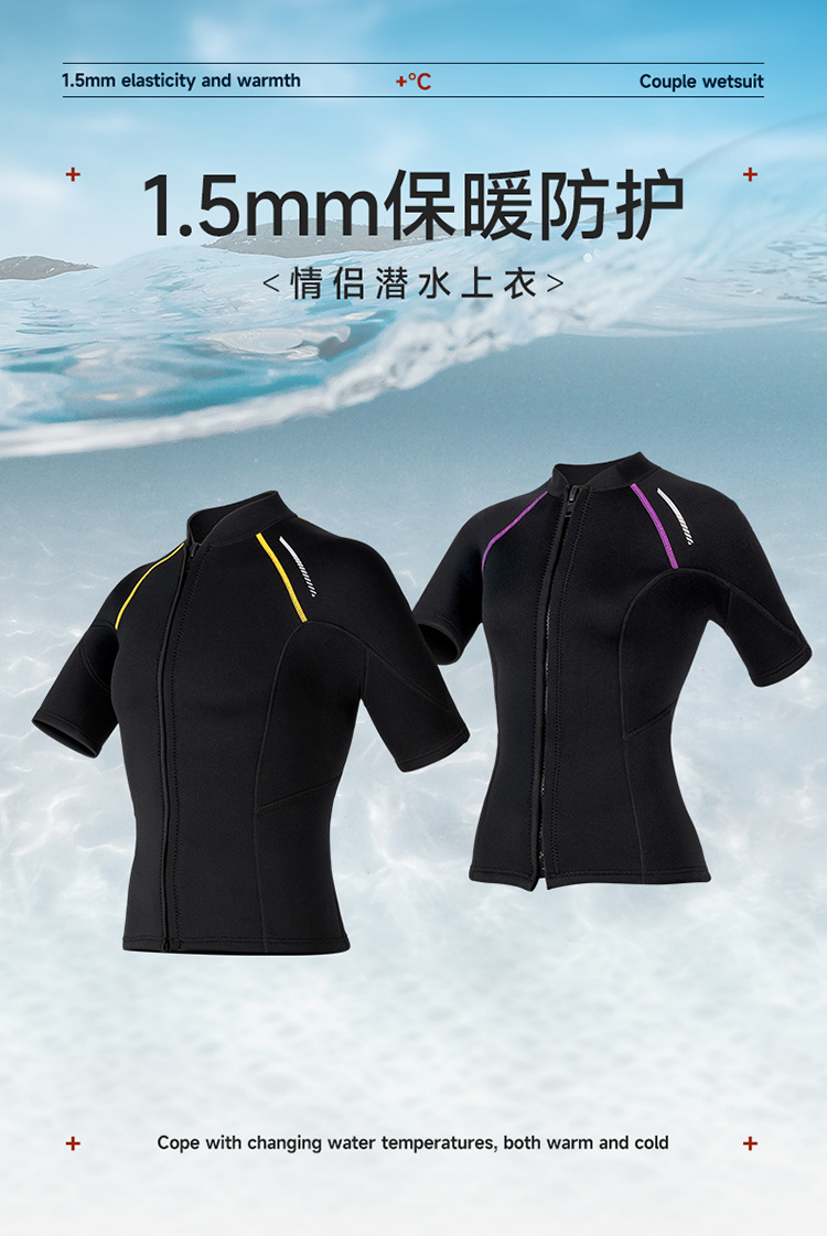 1.5MM 남자와 여자 커플 물옷 탑 짧은 소매 무료 스쿠버 스노클링 수영 다이빙 선 스크린 서핑 수트