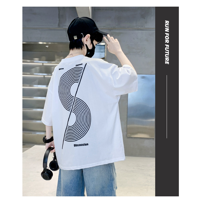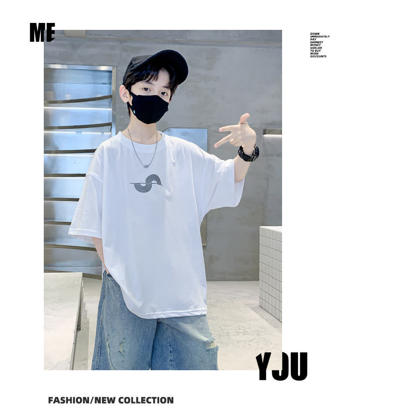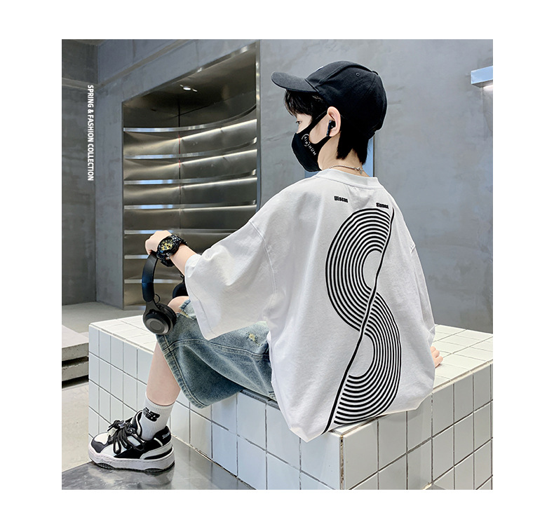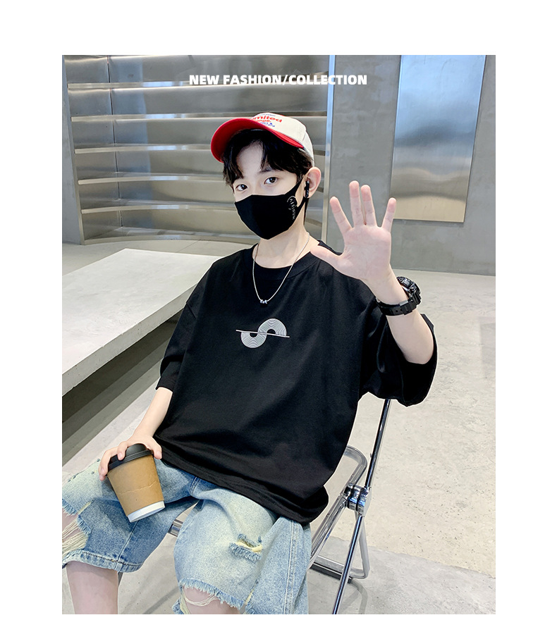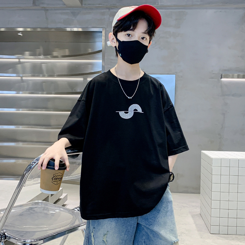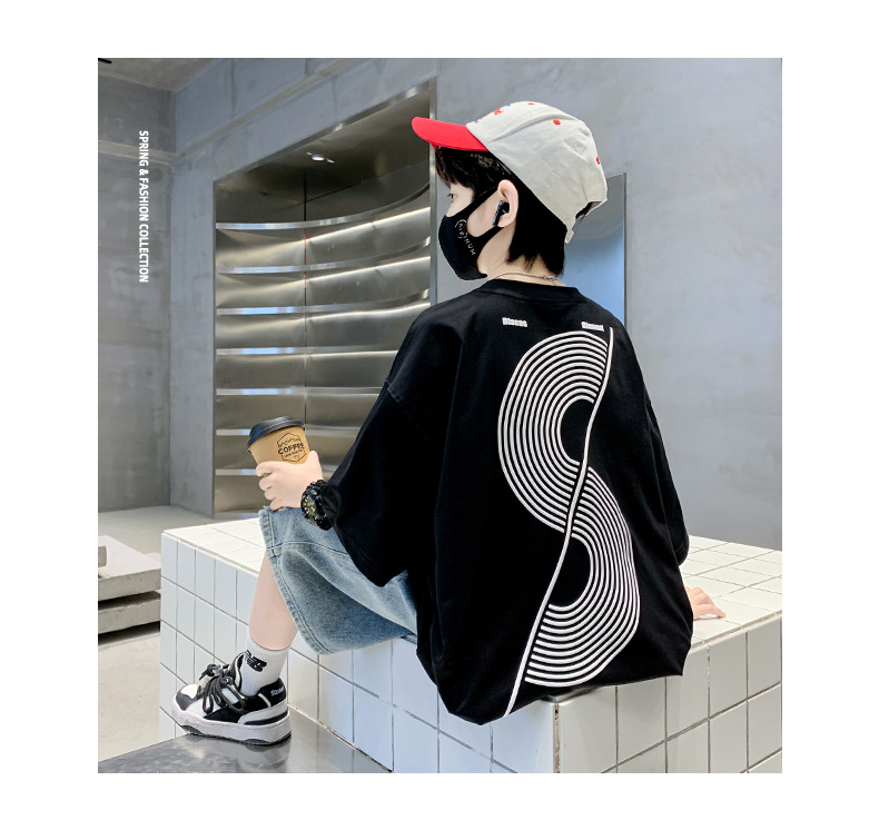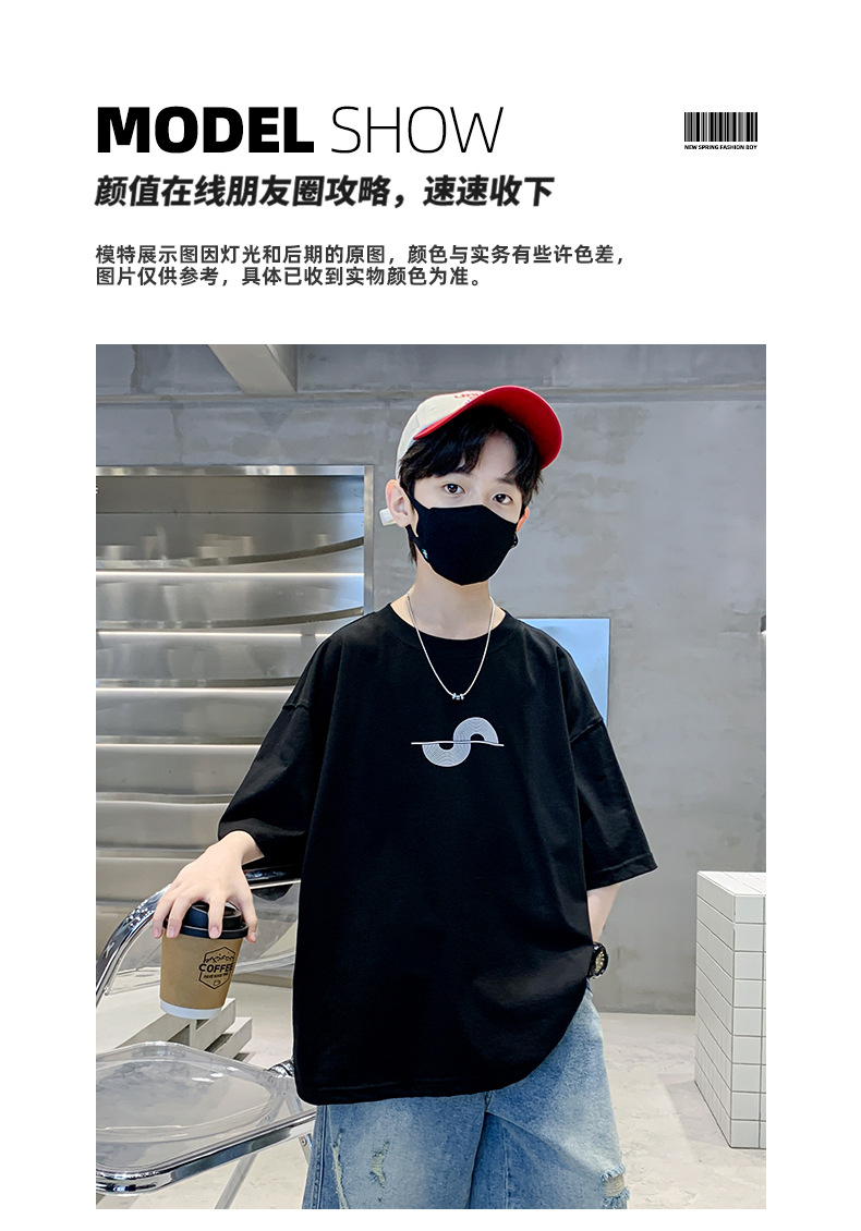 남자들의 여름 반소매 티셔츠 2025 여름 새 도착 한국식 반팔 티셔츠, 어린이를위한 S 편지