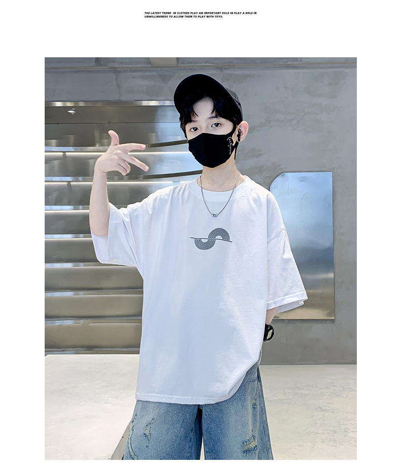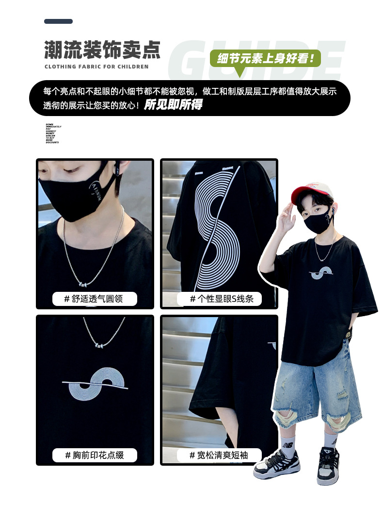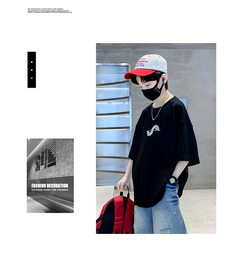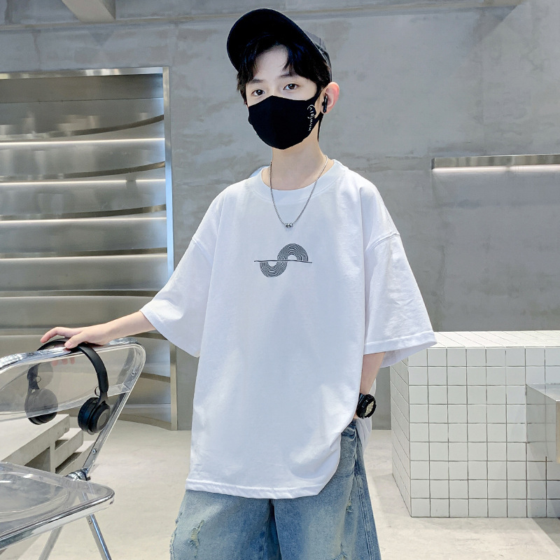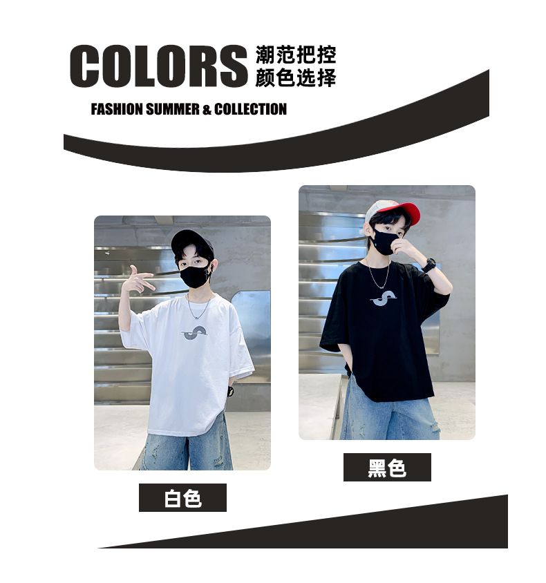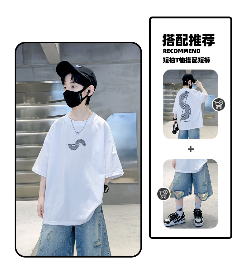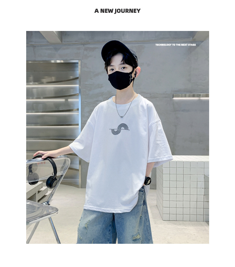 남자들의 여름 반소매 티셔츠 2025 여름 새 도착 한국식 반팔 티셔츠, 어린이를위한 S 편지