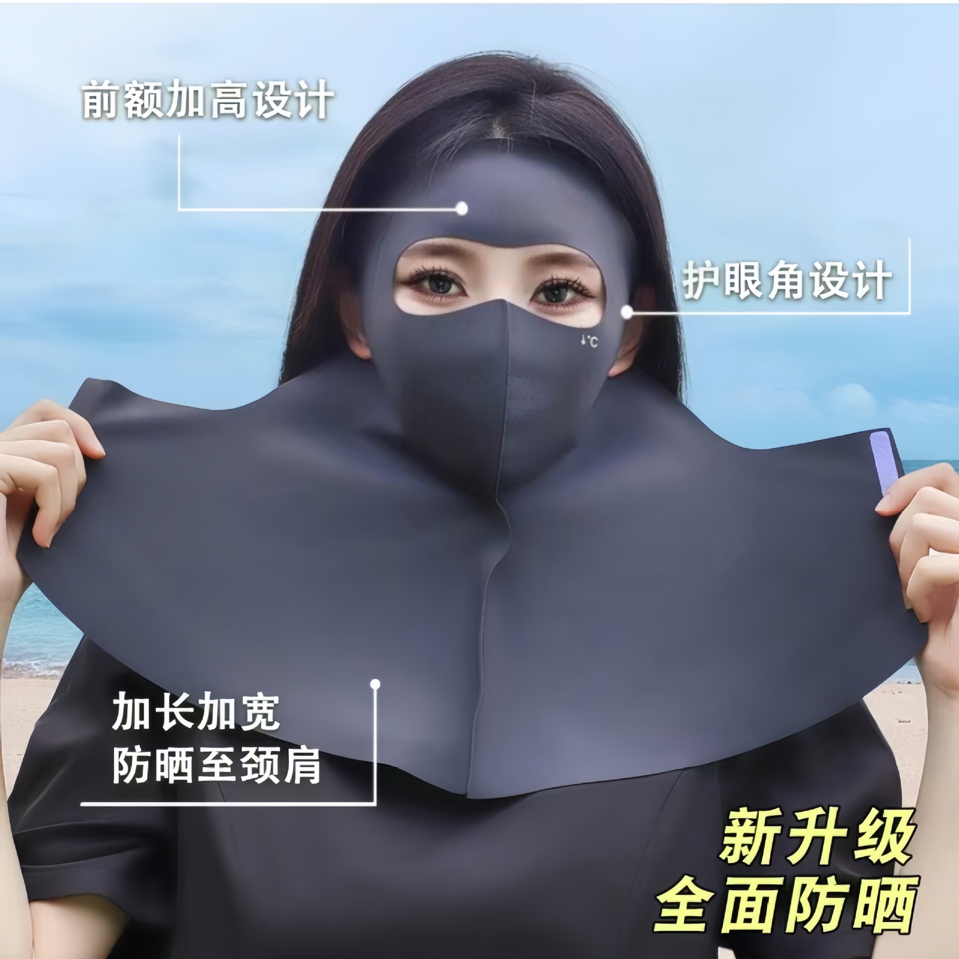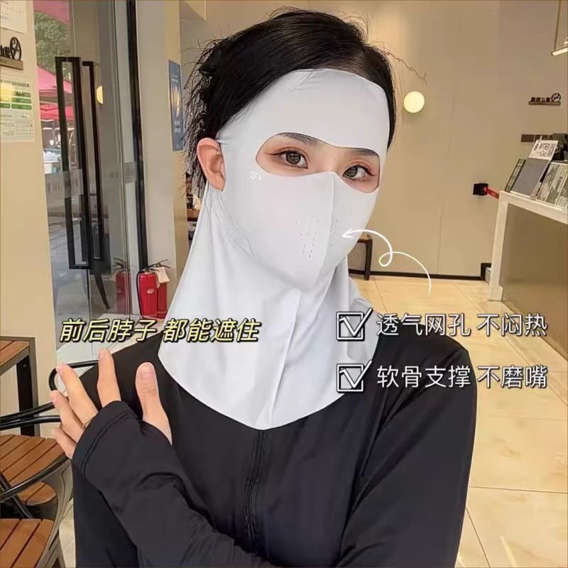 여름 선 스크린 전체 얼굴 목 보호 안티-UV 여성의 높은 가치 얼굴 지니 목 커버 아이스 실크 양산 마스크스토어 가기