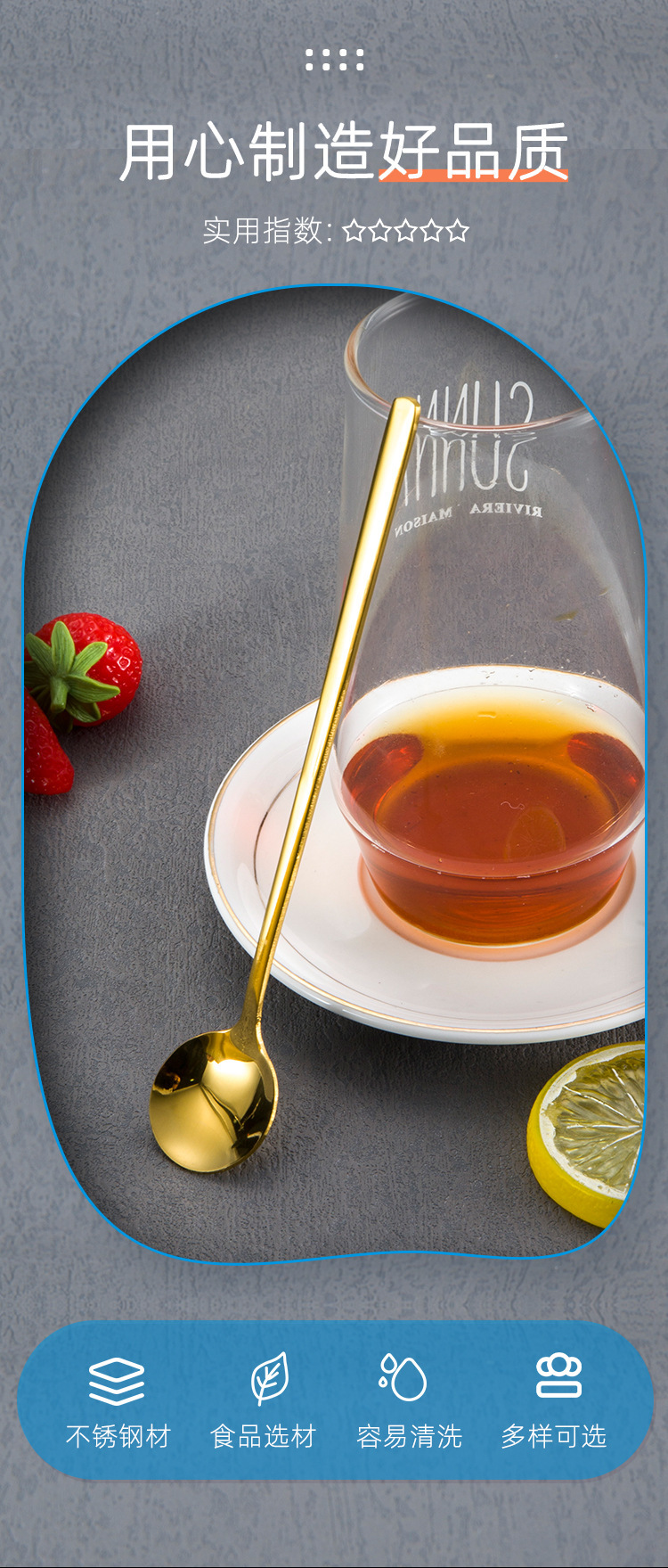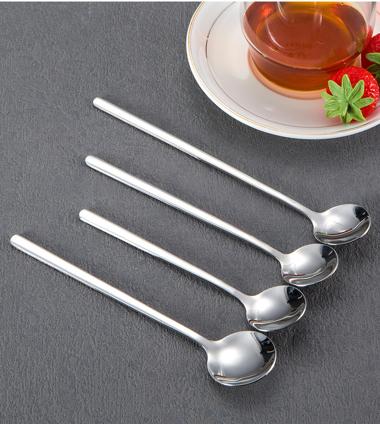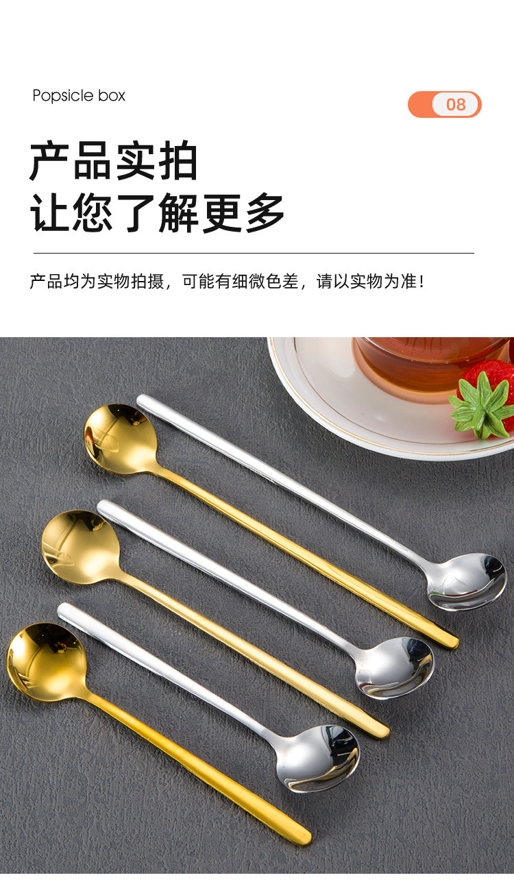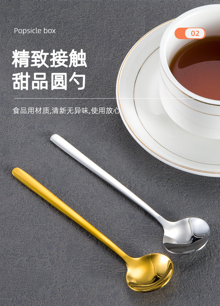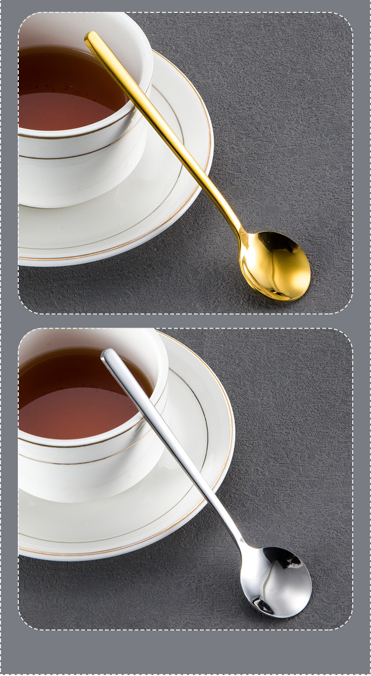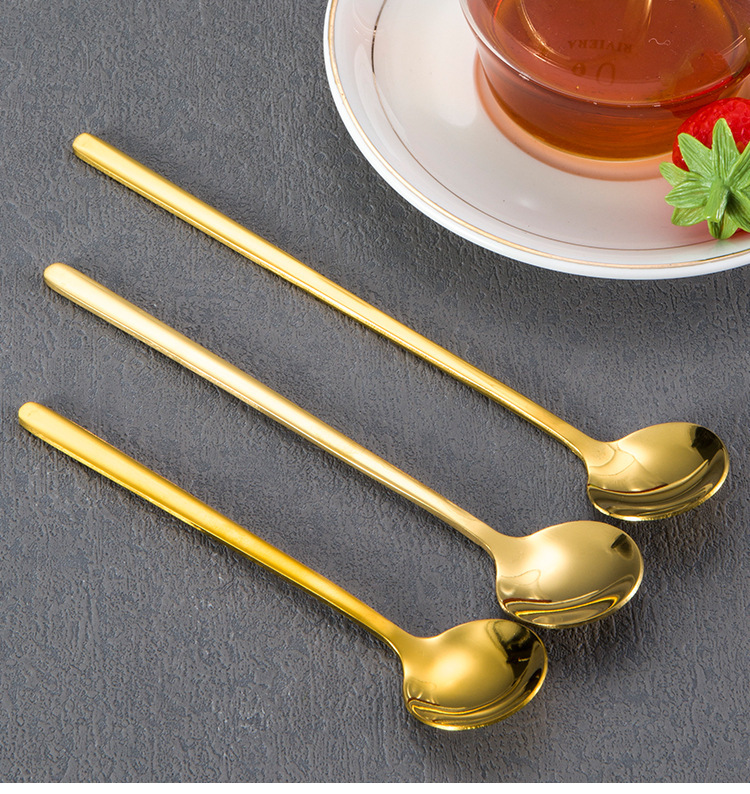 304 스테인레스 스틸 작은 둥근 숟가락 가정용 황금 작은 둥근 숟가락 긴 손잡이 혼합 숟가락 조미료 디저트 스푼 도매