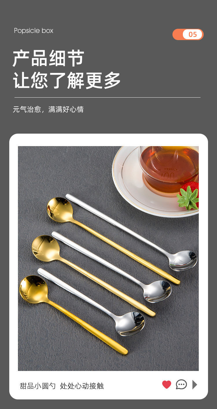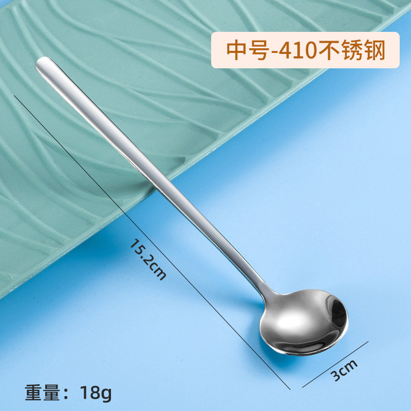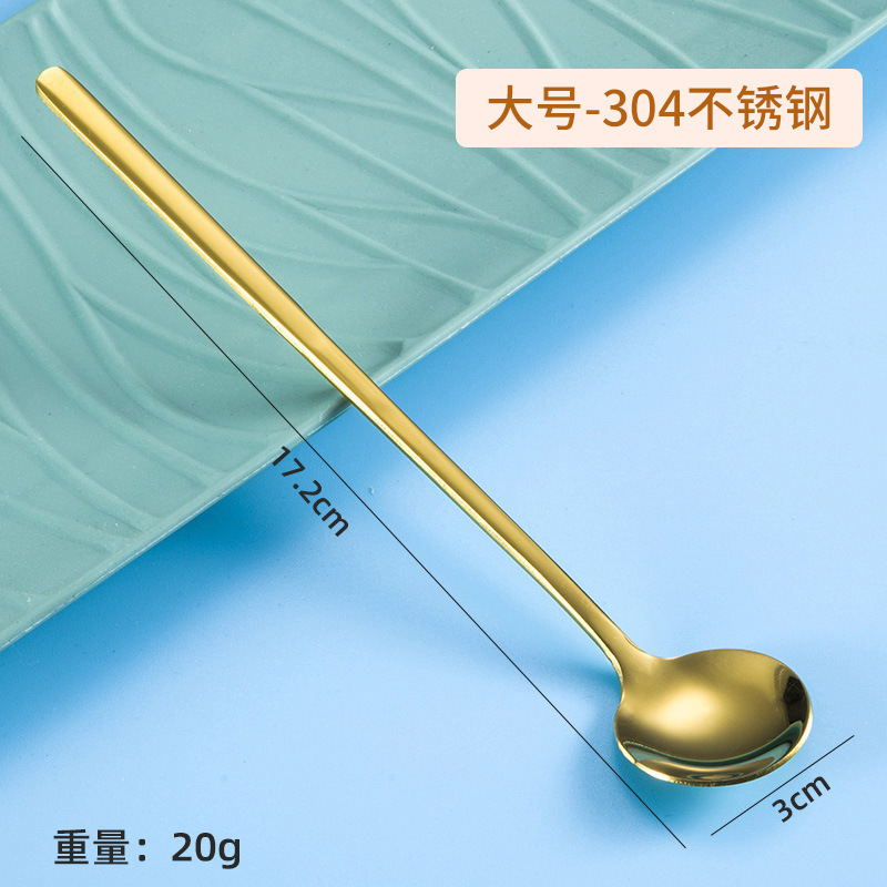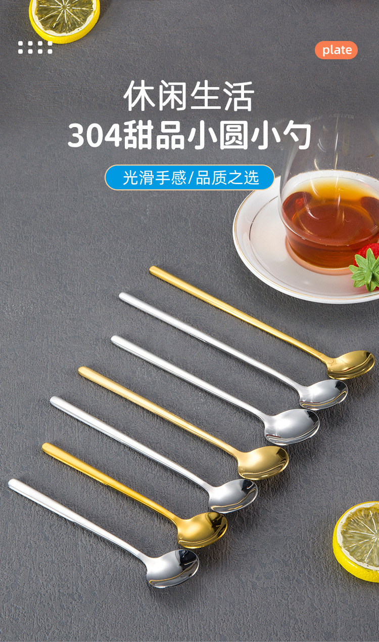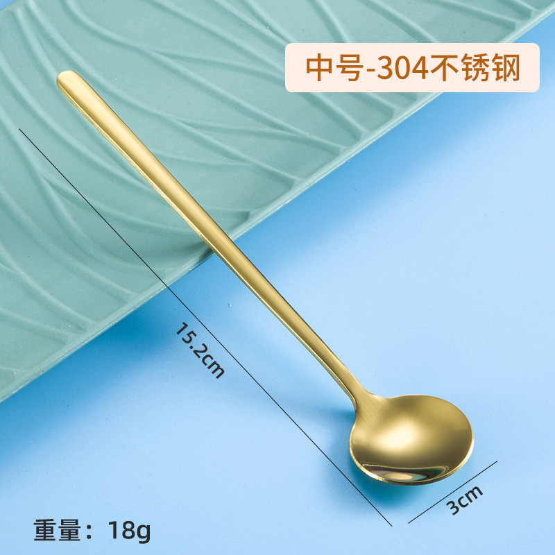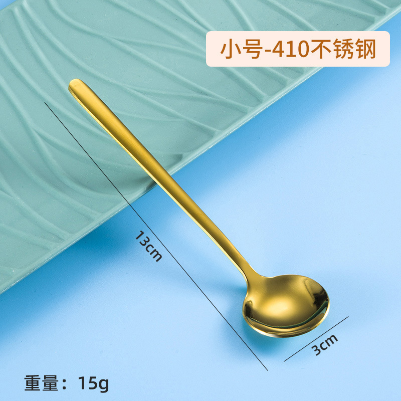 304 스테인레스 스틸 작은 둥근 숟가락 가정용 황금 작은 둥근 숟가락 긴 손잡이 혼합 숟가락 조미료 디저트 스푼 도매스토어 가기