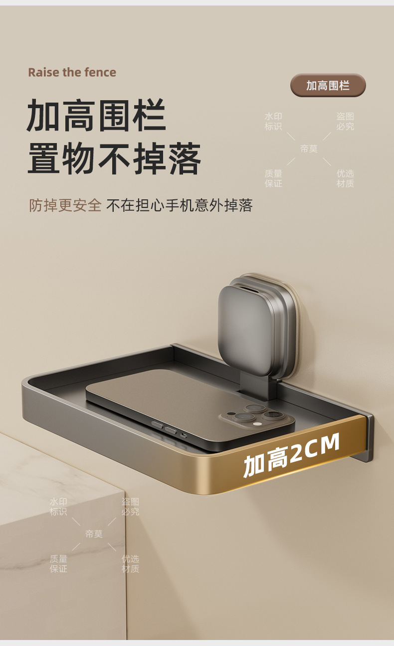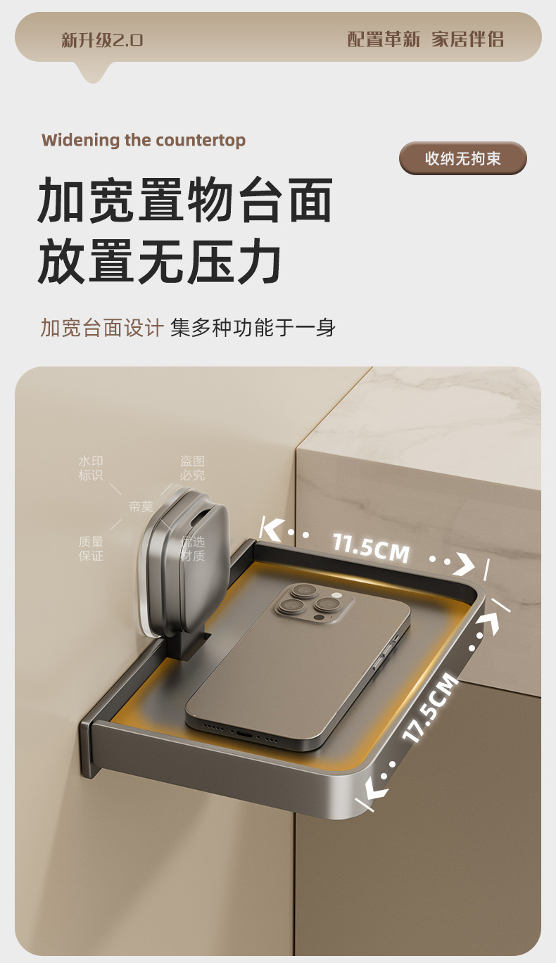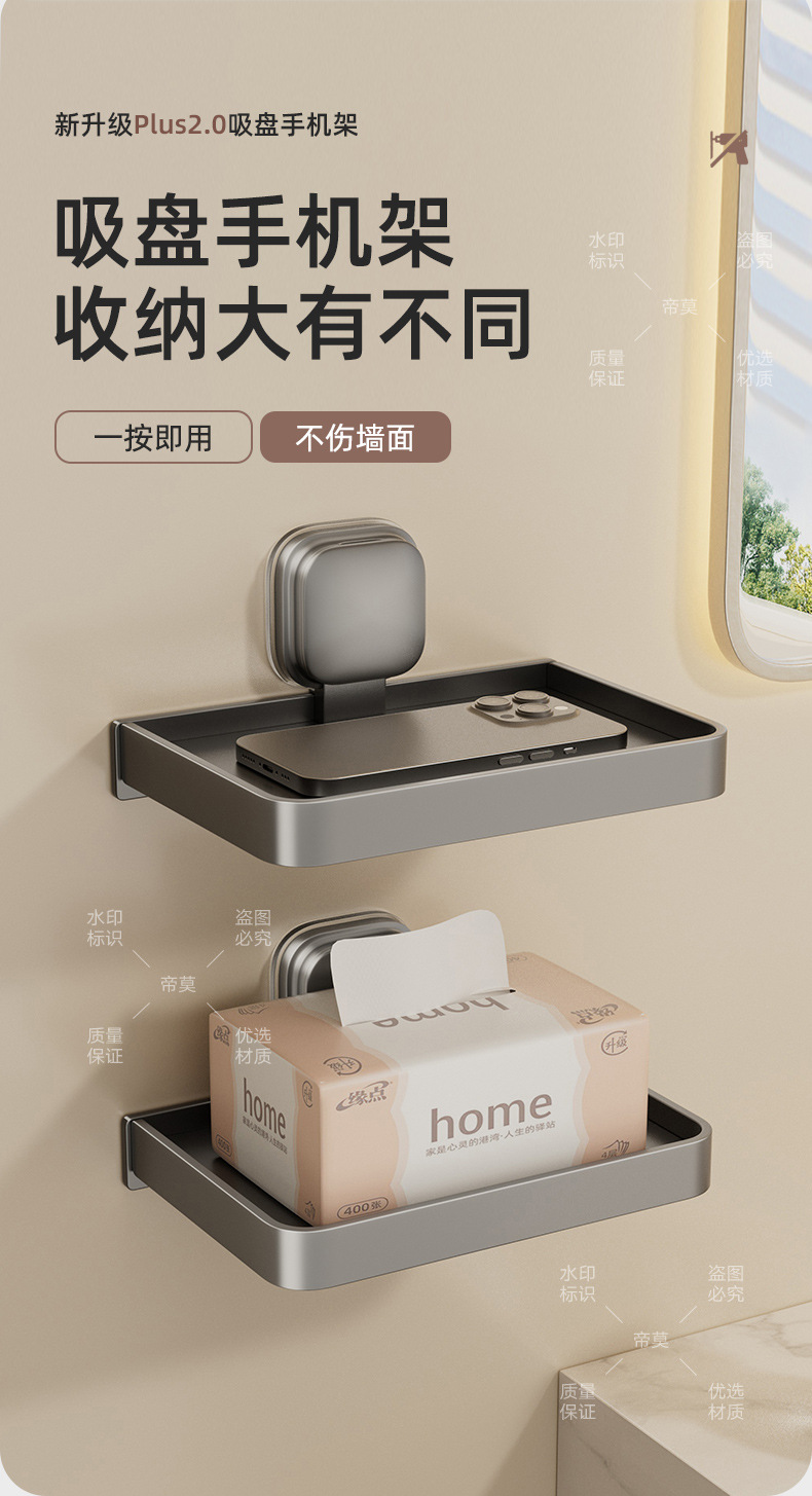 • 밀크화이트로 업그레이드된 흡착컵 휴대폰 티슈 수납선반 [2팩]