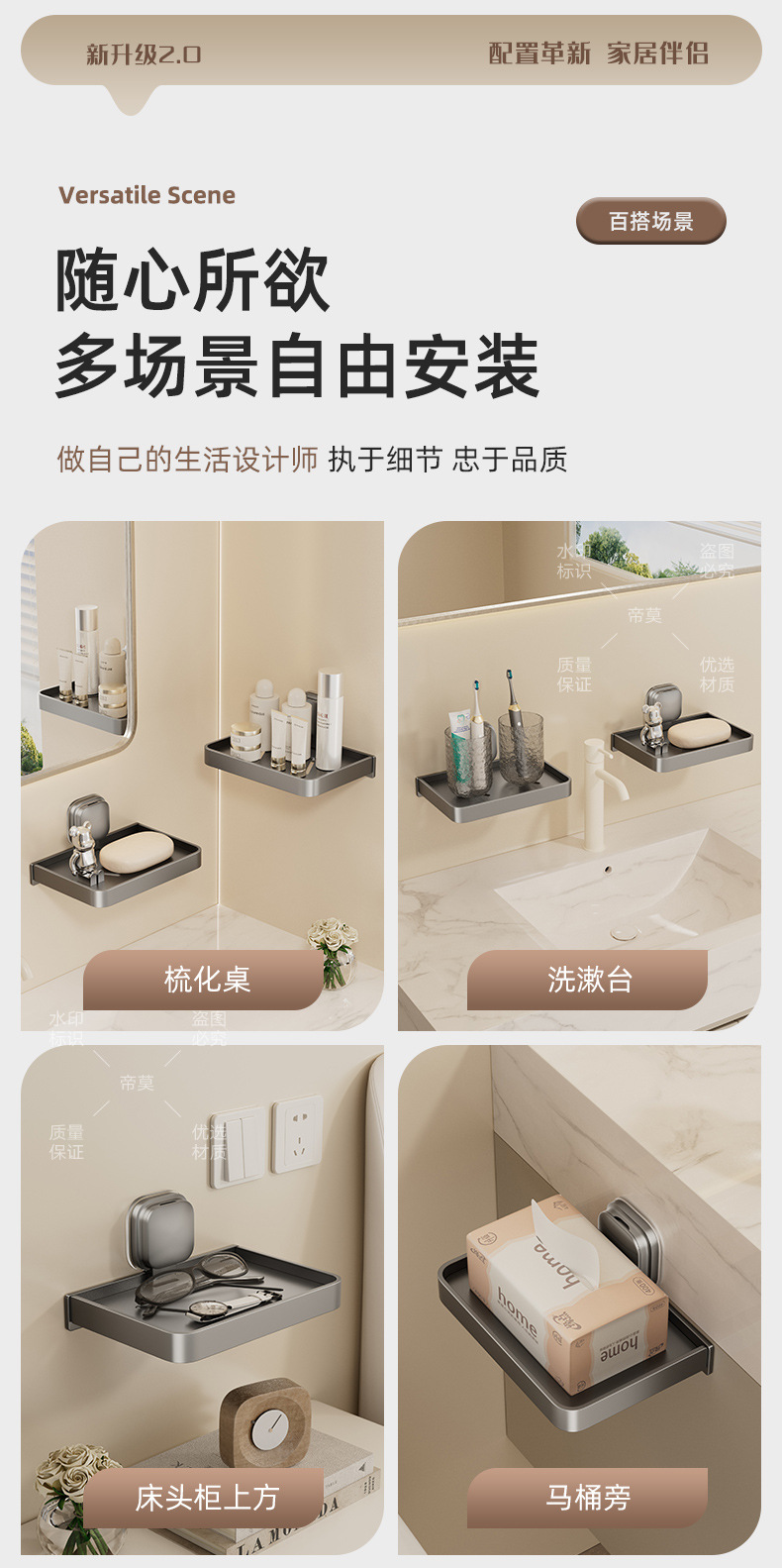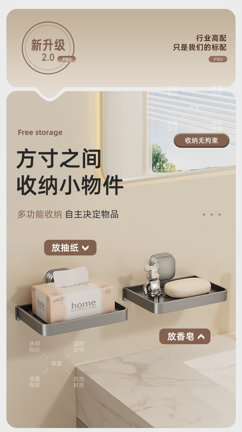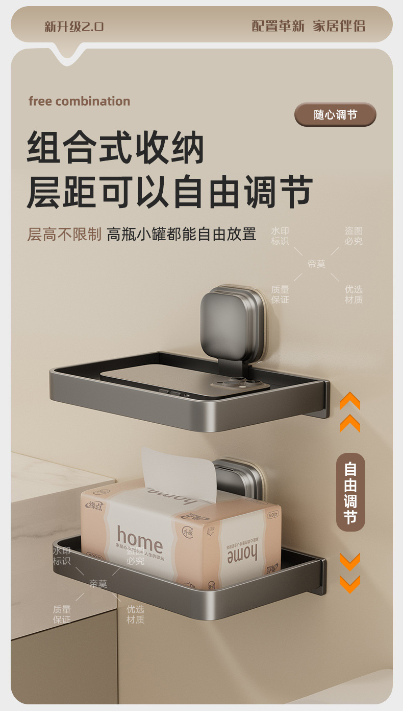 • 밀크화이트로 업그레이드된 흡착컵 휴대폰 티슈 수납선반 [2팩]