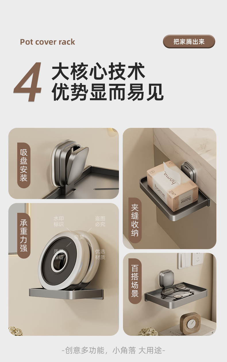 • 밀크화이트로 업그레이드된 흡착컵 휴대폰 티슈 수납선반 [1팩]
