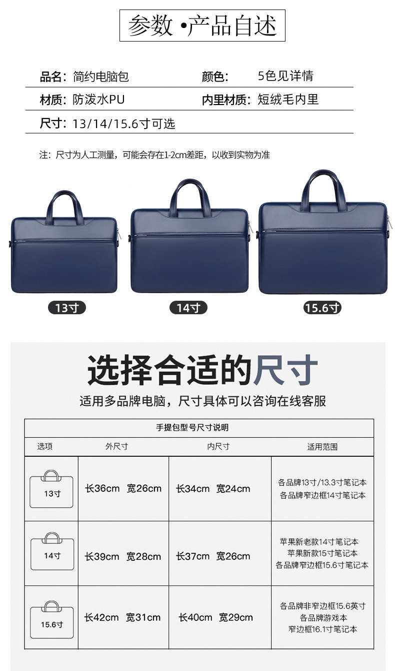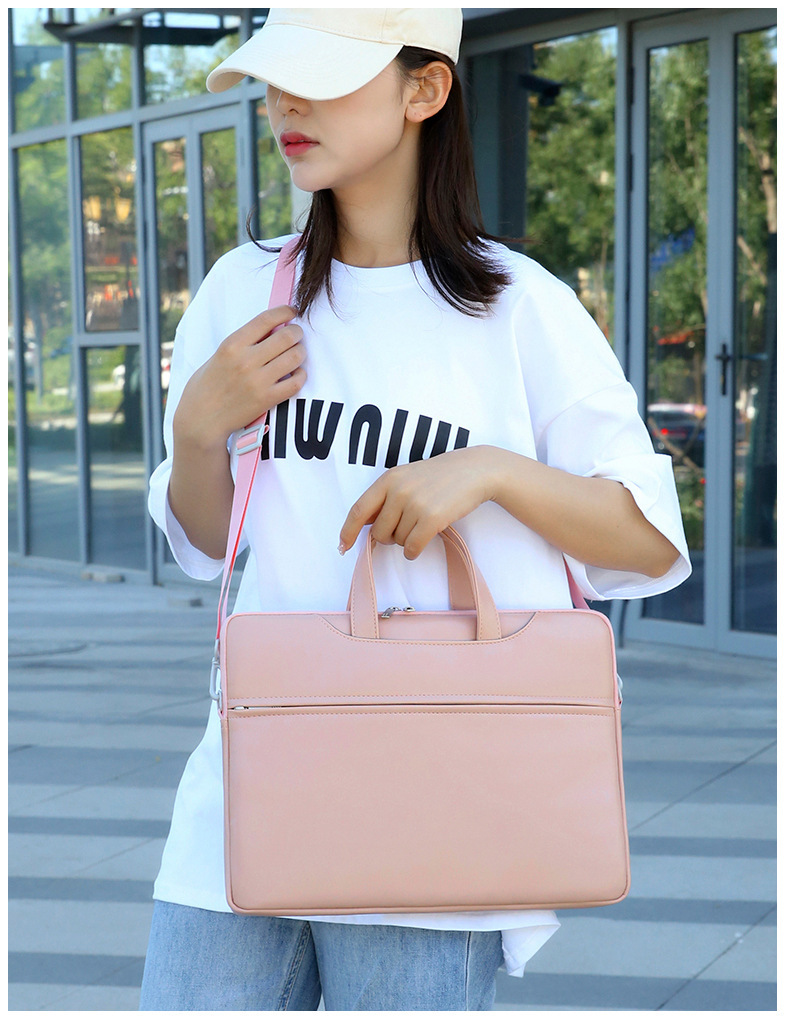 새로운 노트북 가방 사업 경량 남성과 여성의 어깨 핸드백 솔리드 컬러 PU 방수 대용량 파일 가방
