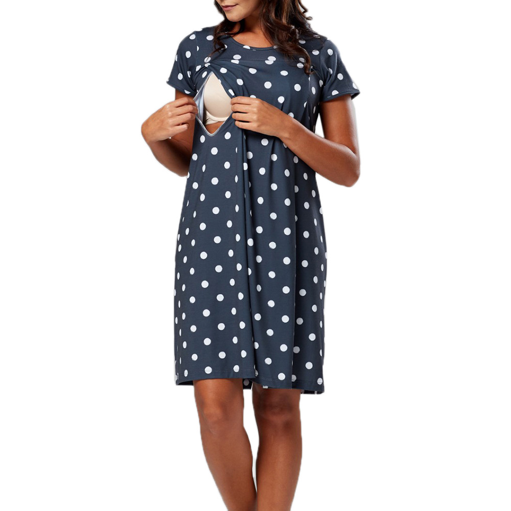 유럽과 미국의 인기있는 웨이브 도트 인쇄 임산부 배달 병원 원피스 짧은 소매 측면 숨겨진 오프닝 수유 원피스스토어 가기