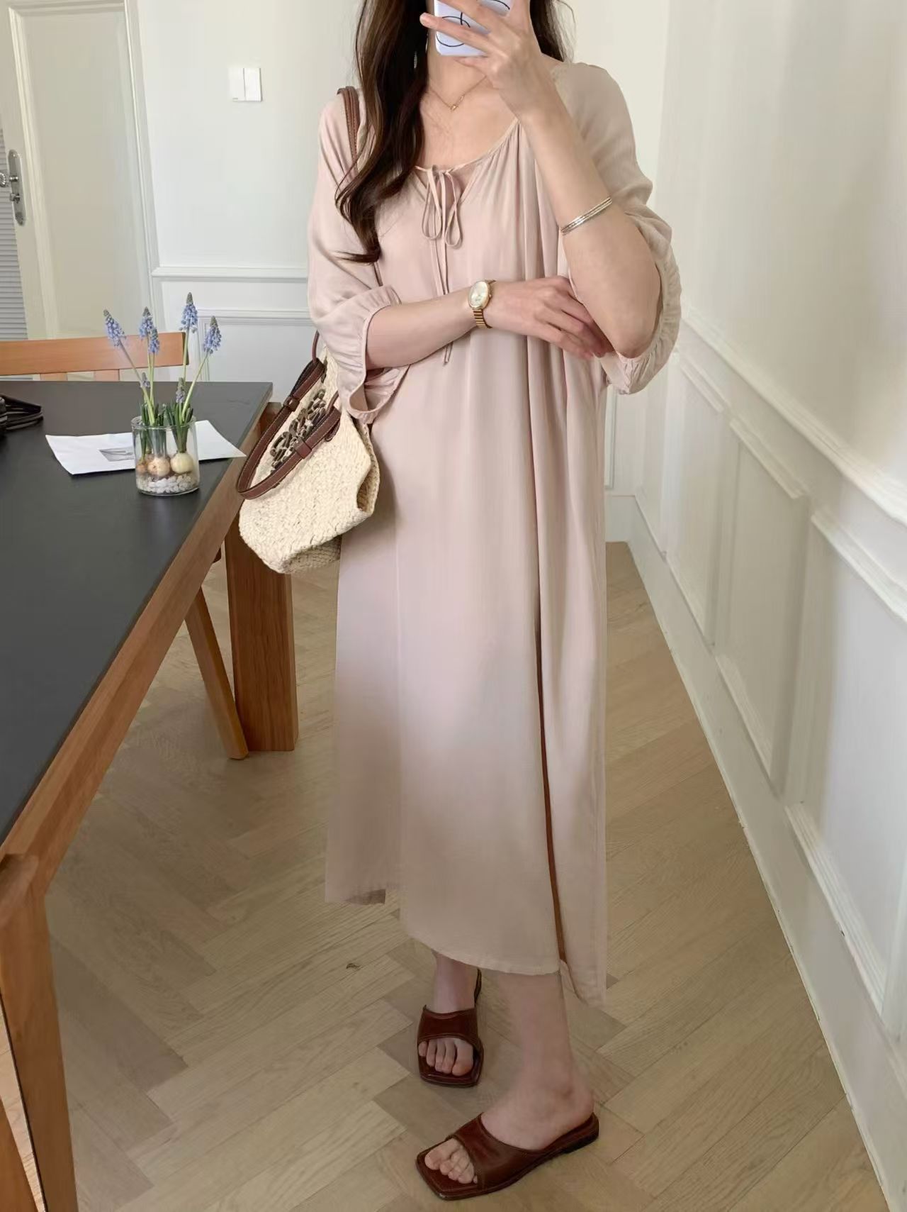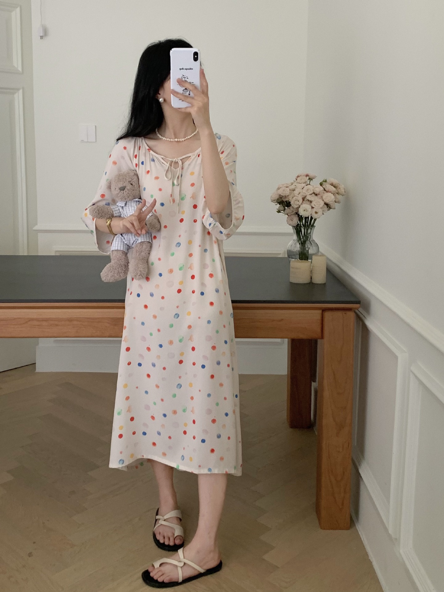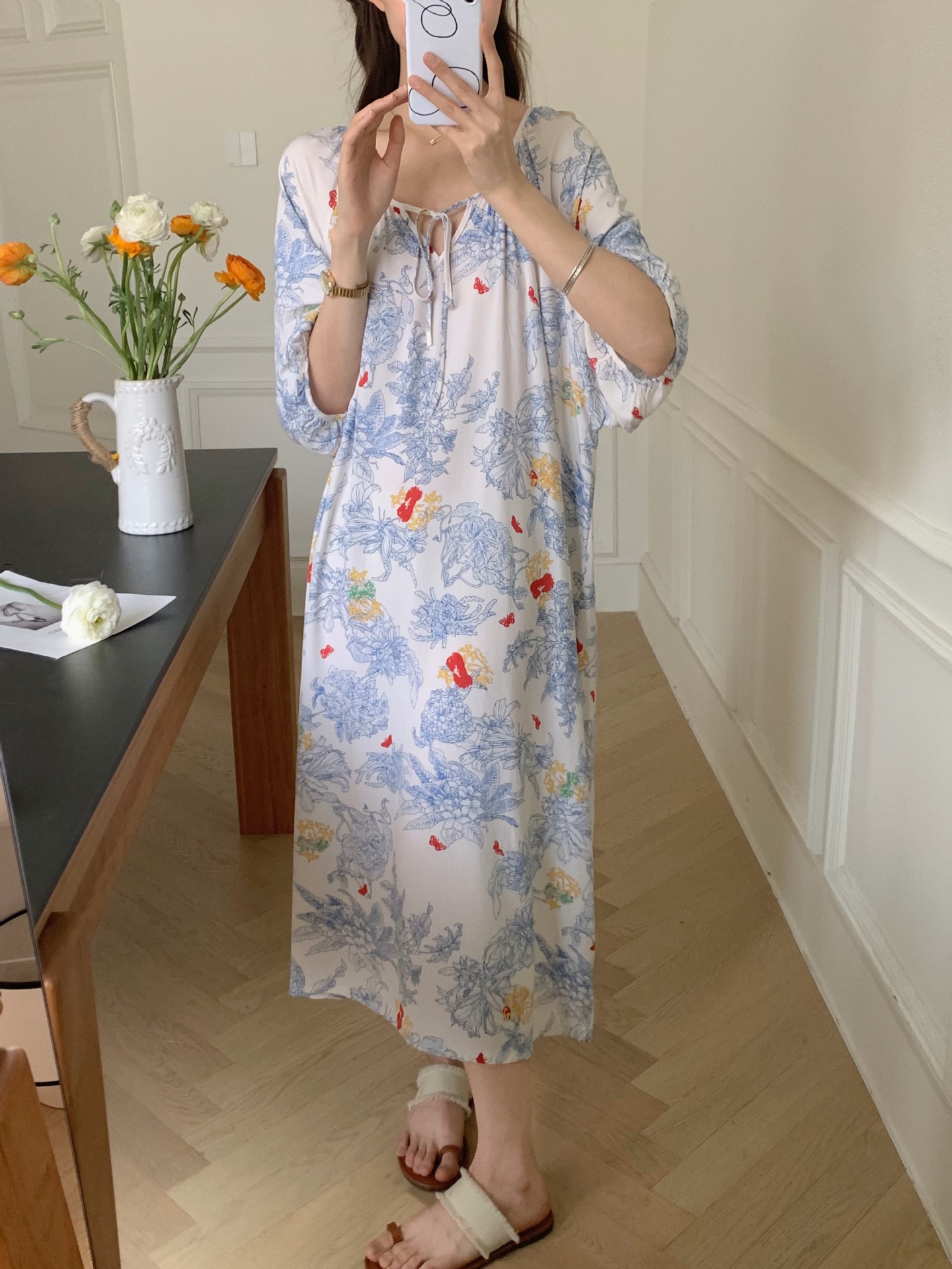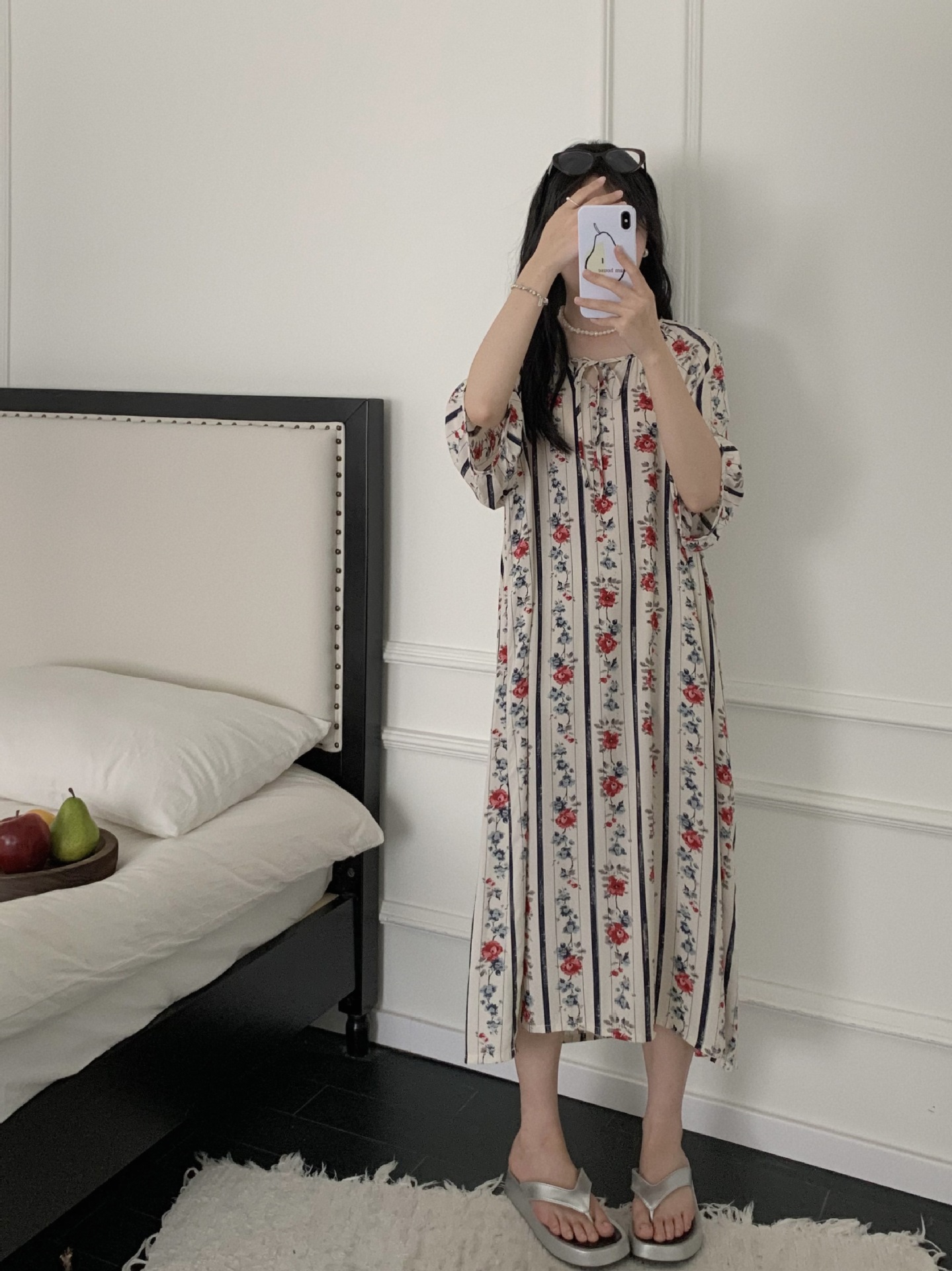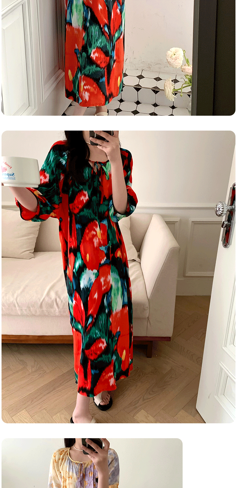 2026년 신상 여성용 면 실크 잠옷, 고급스러운 프린트 반팔 롱 드레스, 큰 사이즈, 얇은 소재, 외출복으로도 활용 가능한 홈웨어