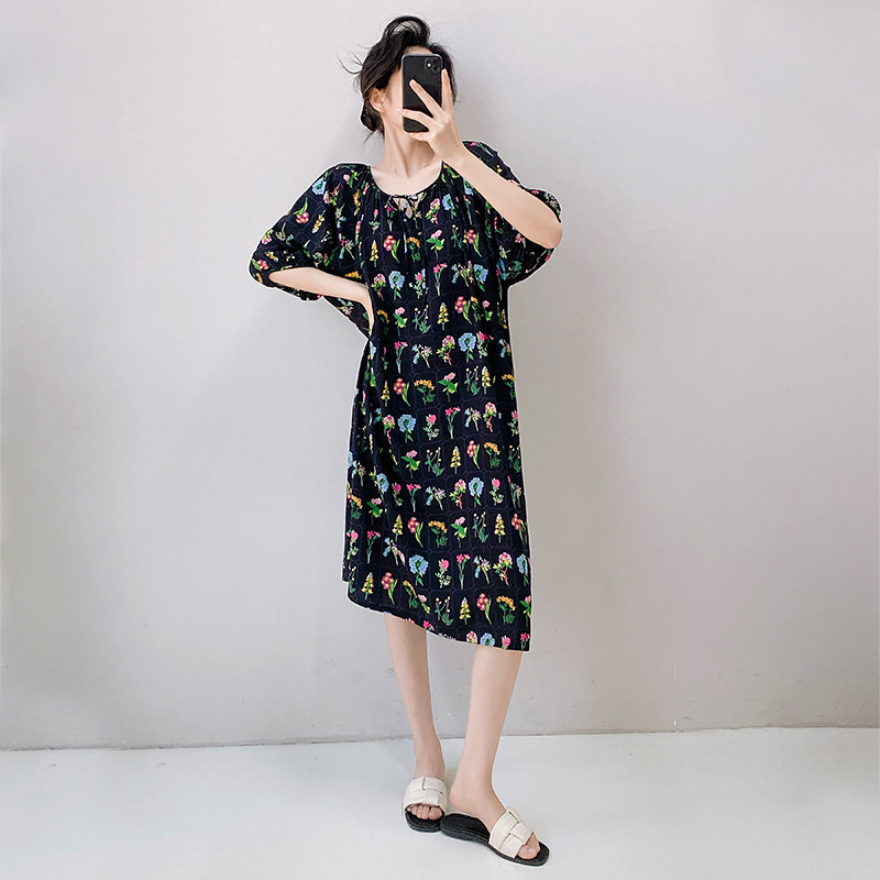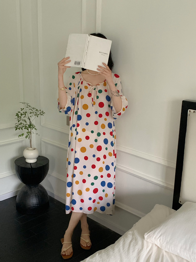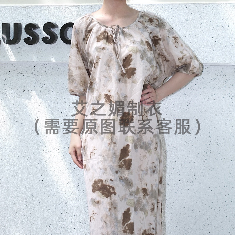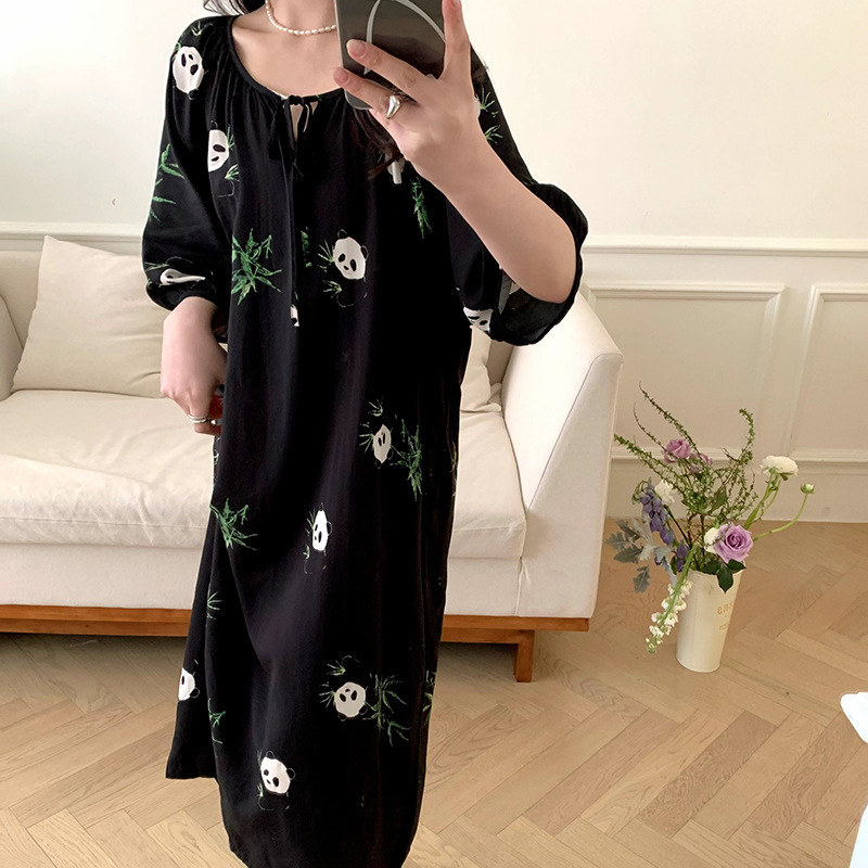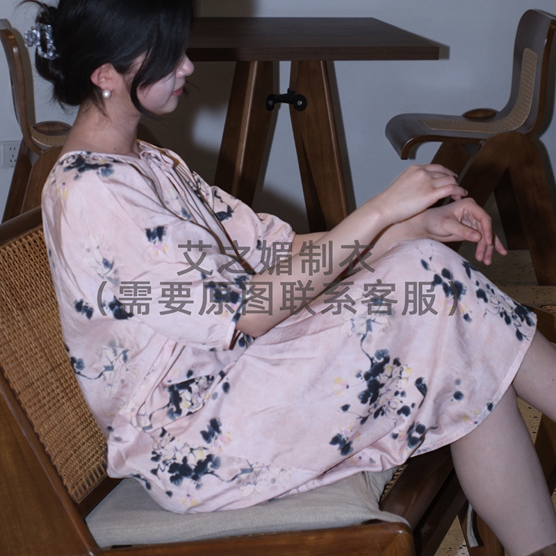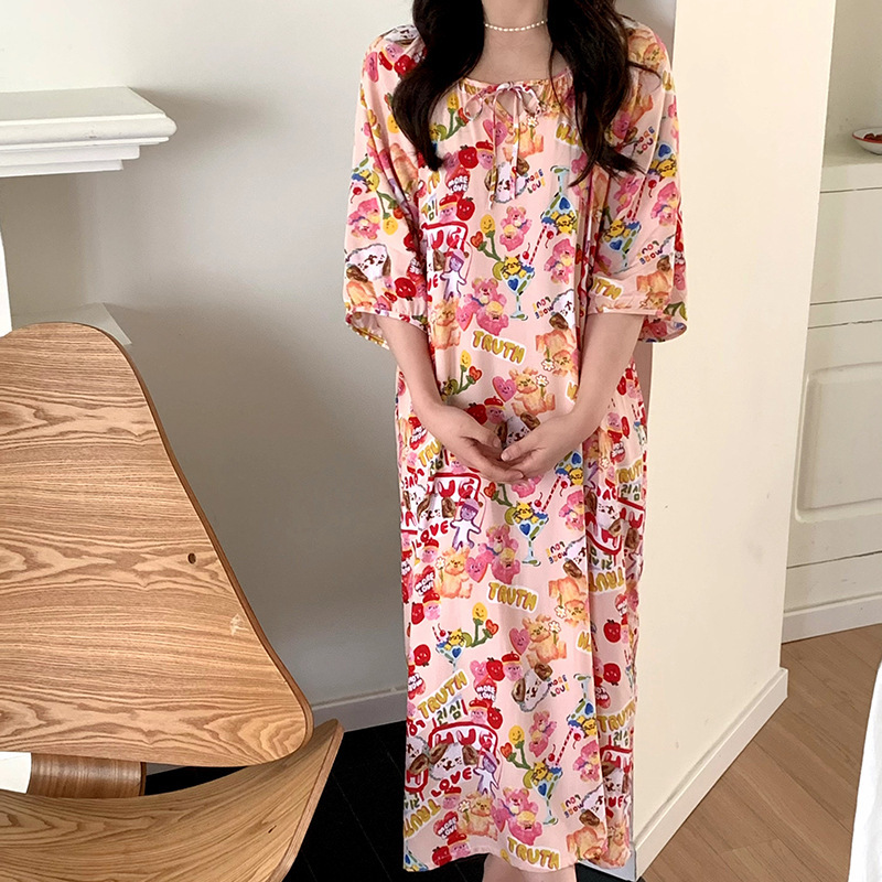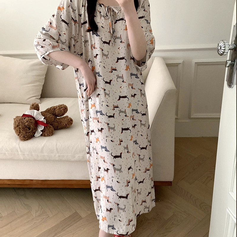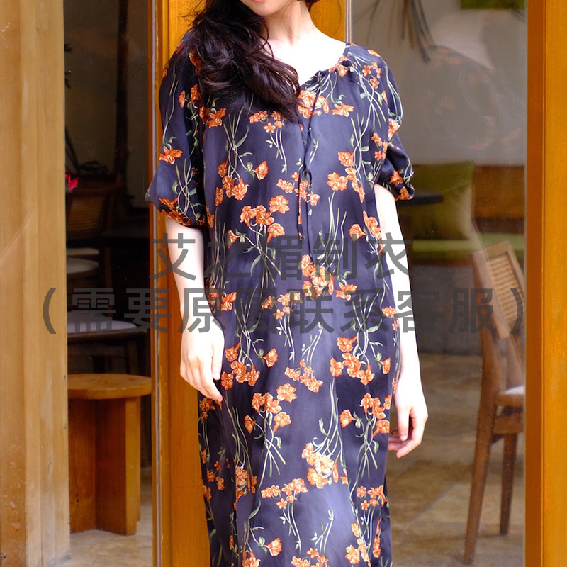 2026년 신상 여성용 면 실크 잠옷, 고급스러운 프린트 반팔 롱 드레스, 큰 사이즈, 얇은 소재, 외출복으로도 활용 가능한 홈웨어스토어 가기