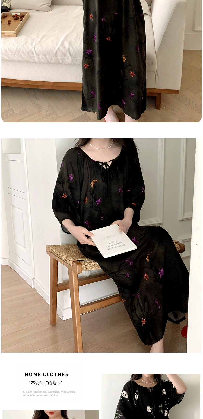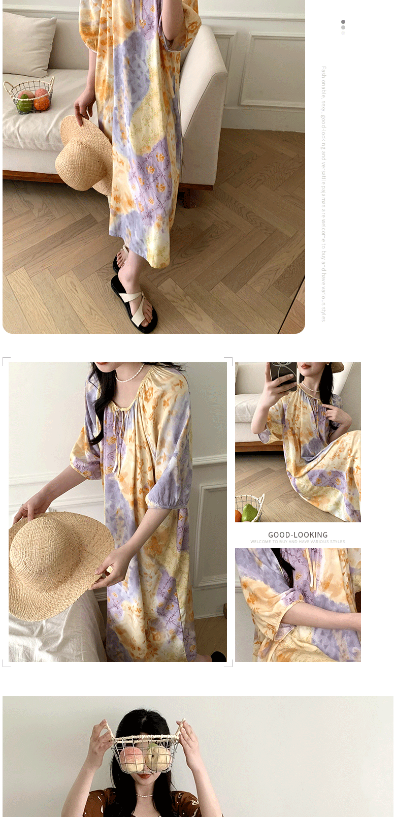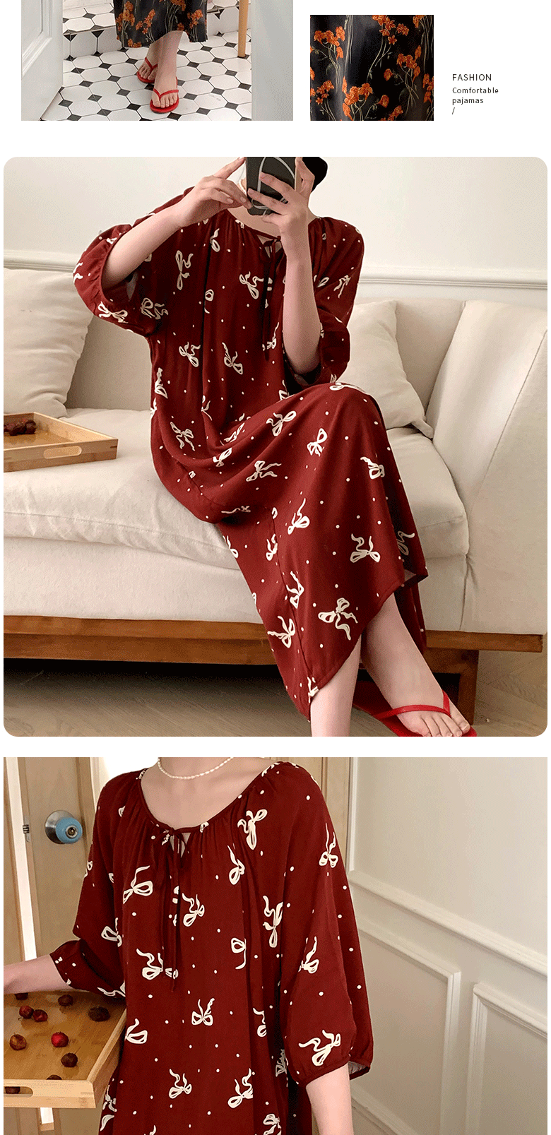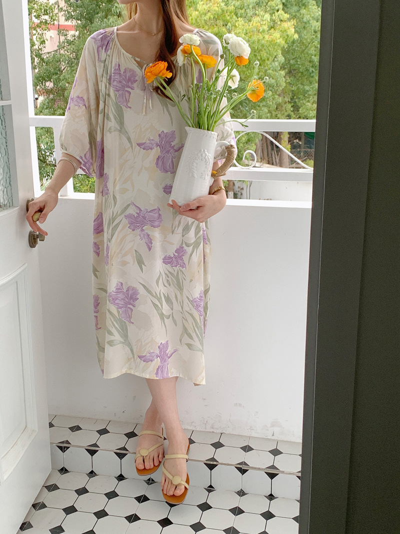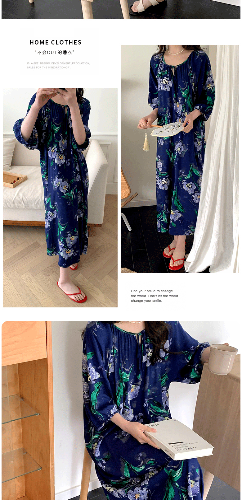 2026년 신상 여성용 면 실크 잠옷, 고급스러운 프린트 반팔 롱 드레스, 큰 사이즈, 얇은 소재, 외출복으로도 활용 가능한 홈웨어스토어 가기