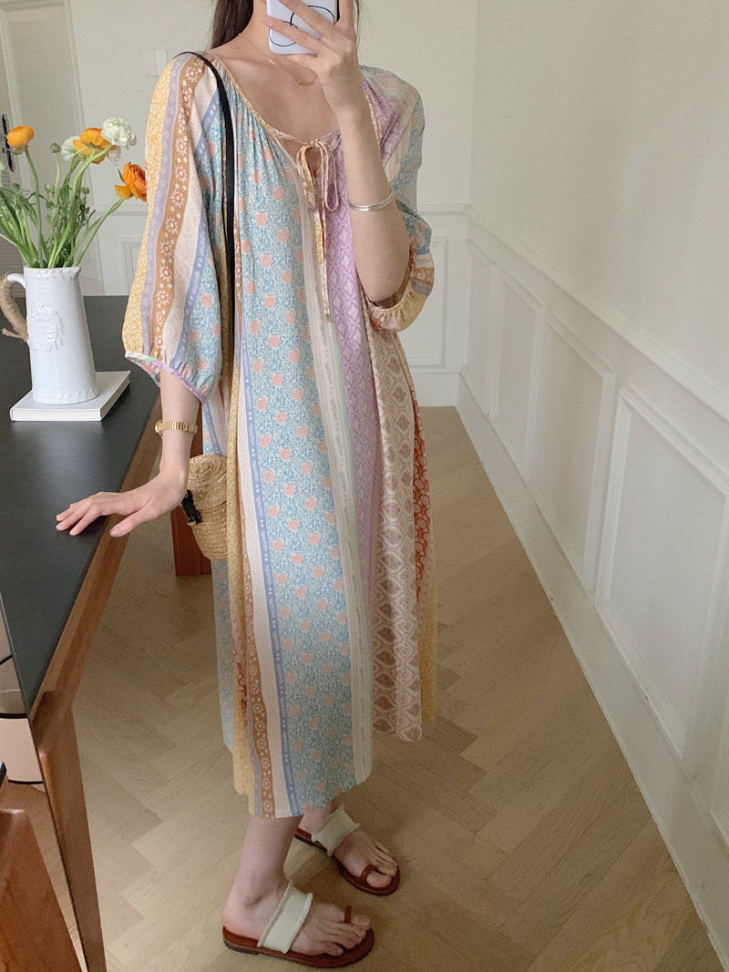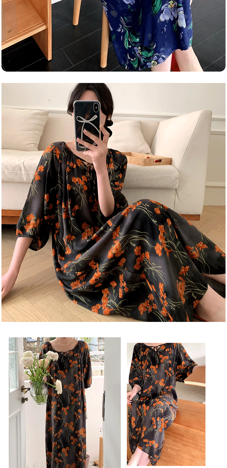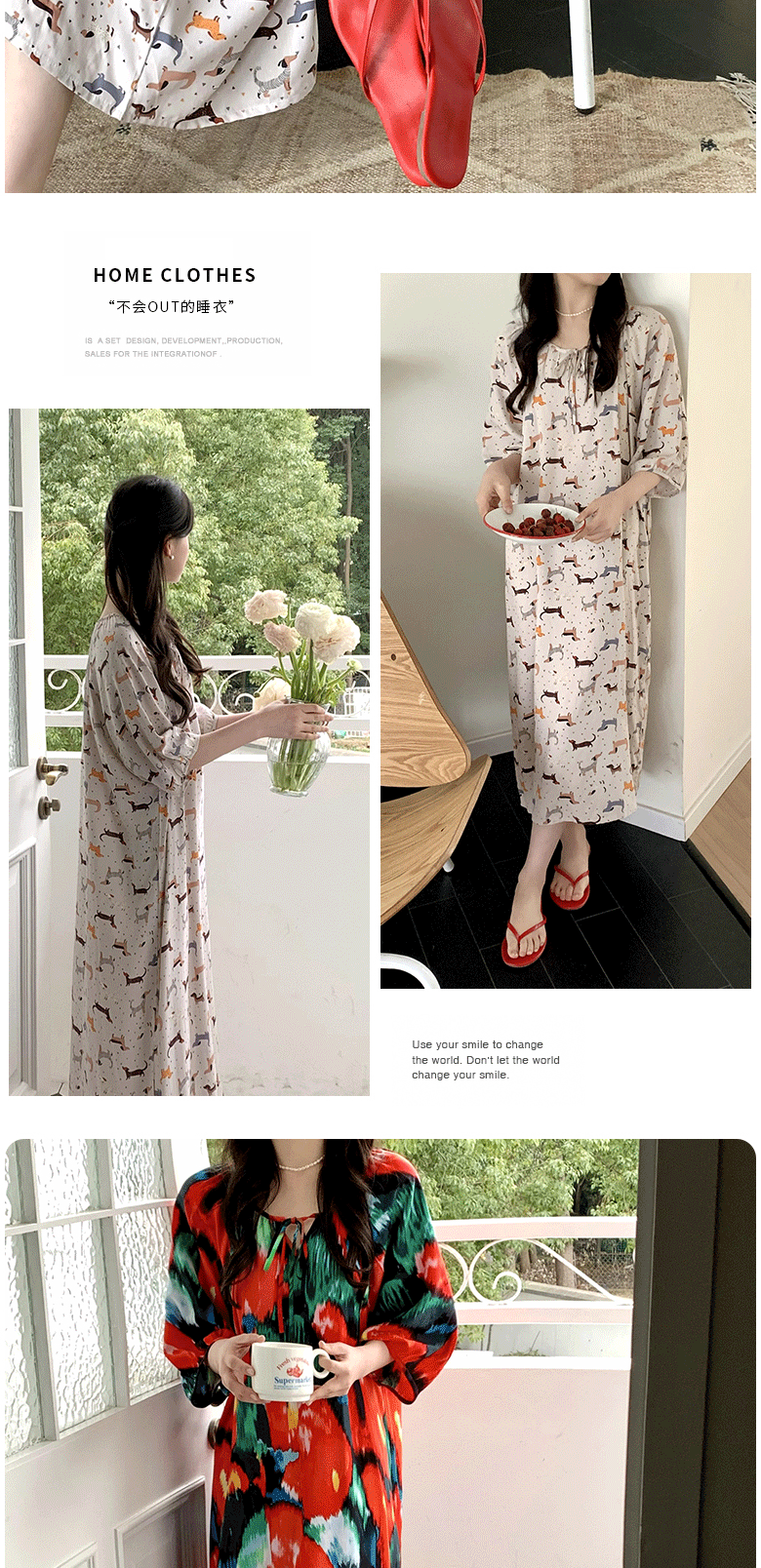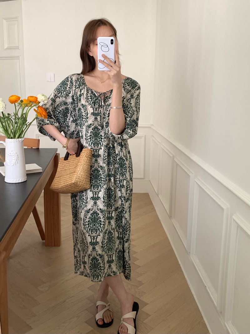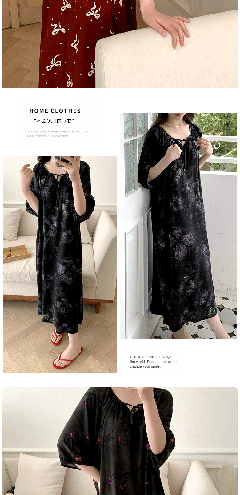 2026년 신상 여성용 면 실크 잠옷, 고급스러운 프린트 반팔 롱 드레스, 큰 사이즈, 얇은 소재, 외출복으로도 활용 가능한 홈웨어스토어 가기