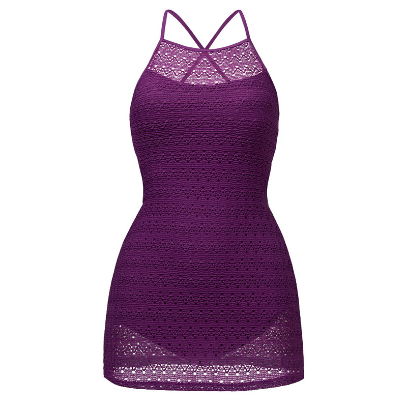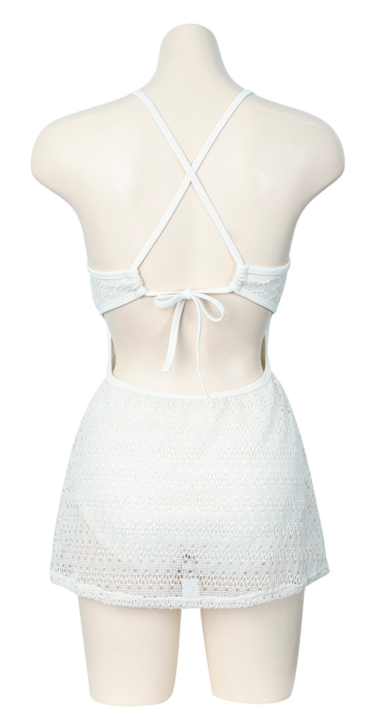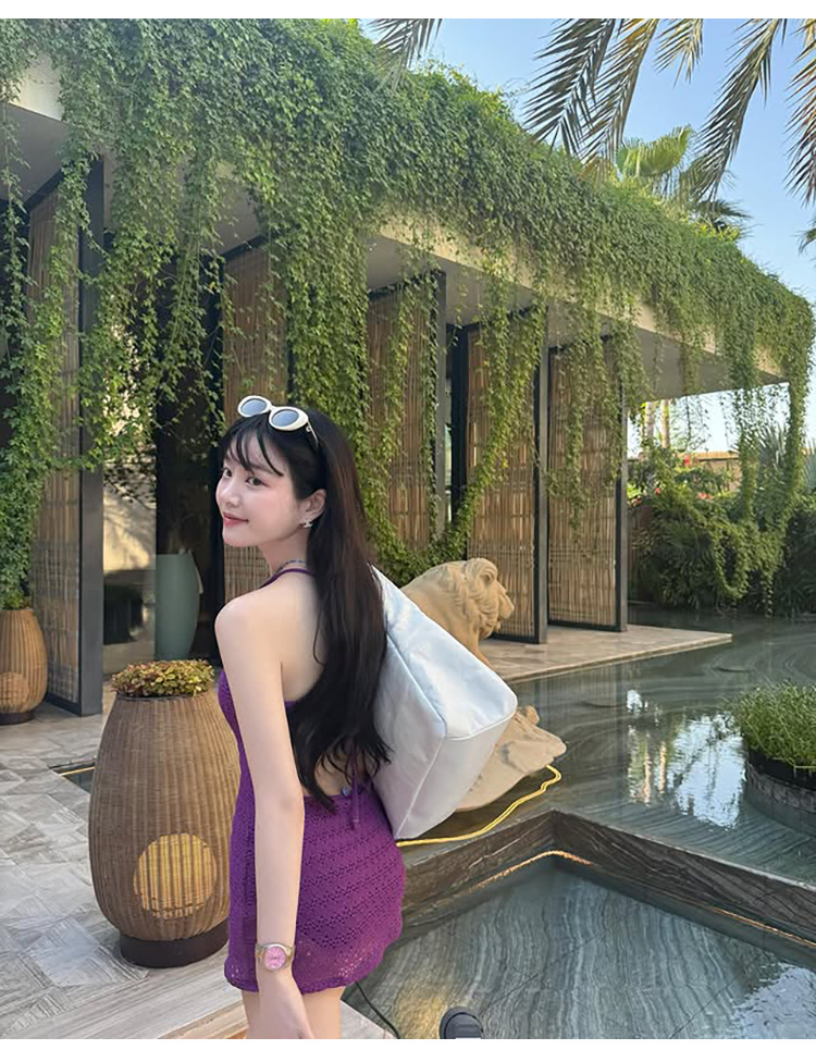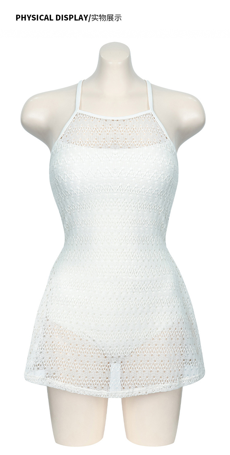 한국의 인기 인터넷 연예인 스타일 흰색과 보라색 아름다운 중공 스커트 원피스 수영복 고급 해변 휴가 수영복스토어 가기