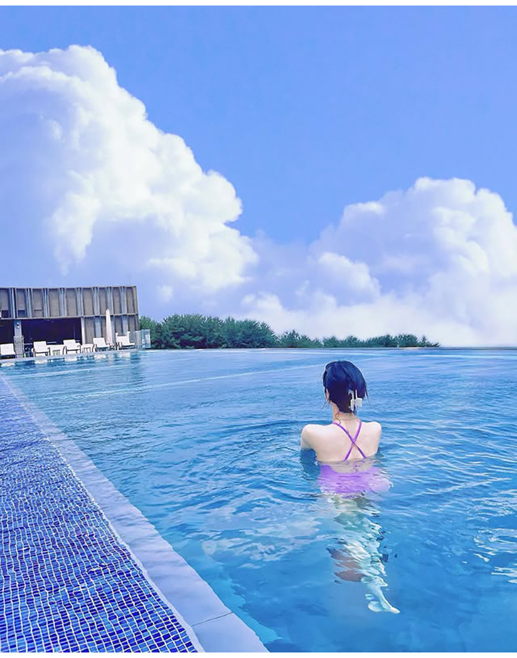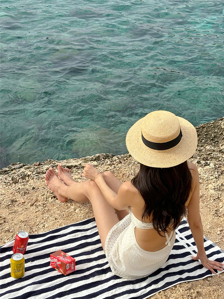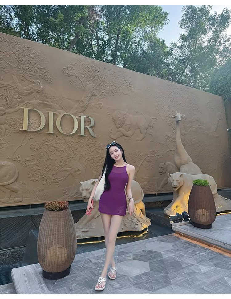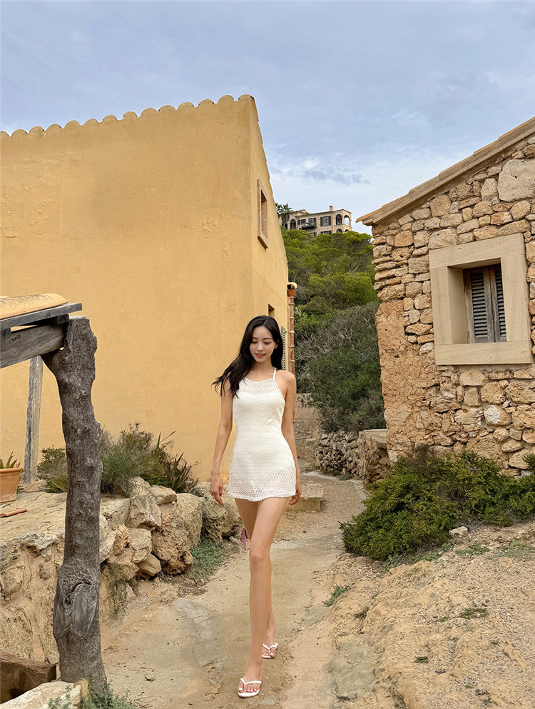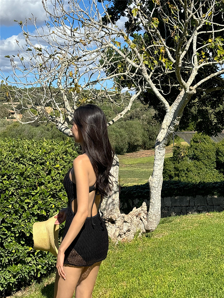 한국의 인기 인터넷 연예인 스타일 흰색과 보라색 아름다운 중공 스커트 원피스 수영복 고급 해변 휴가 수영복스토어 가기