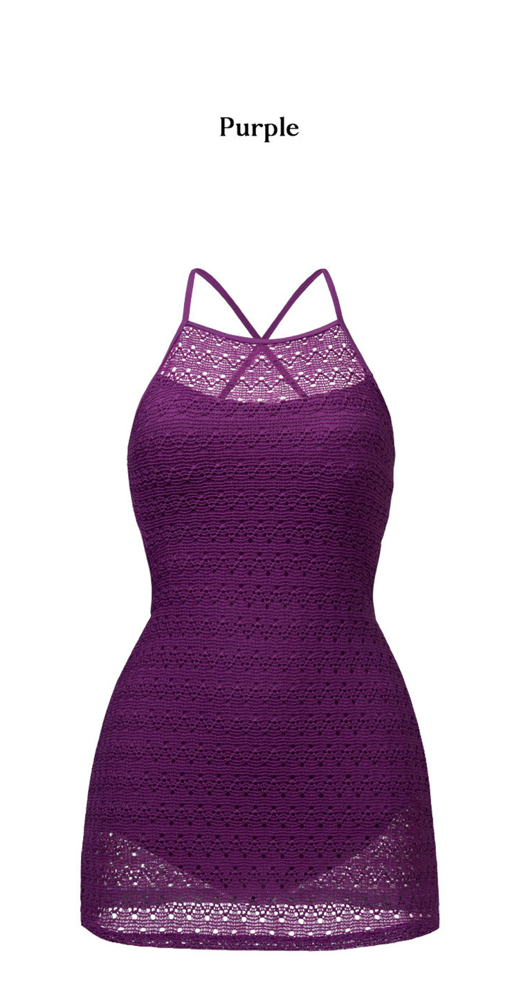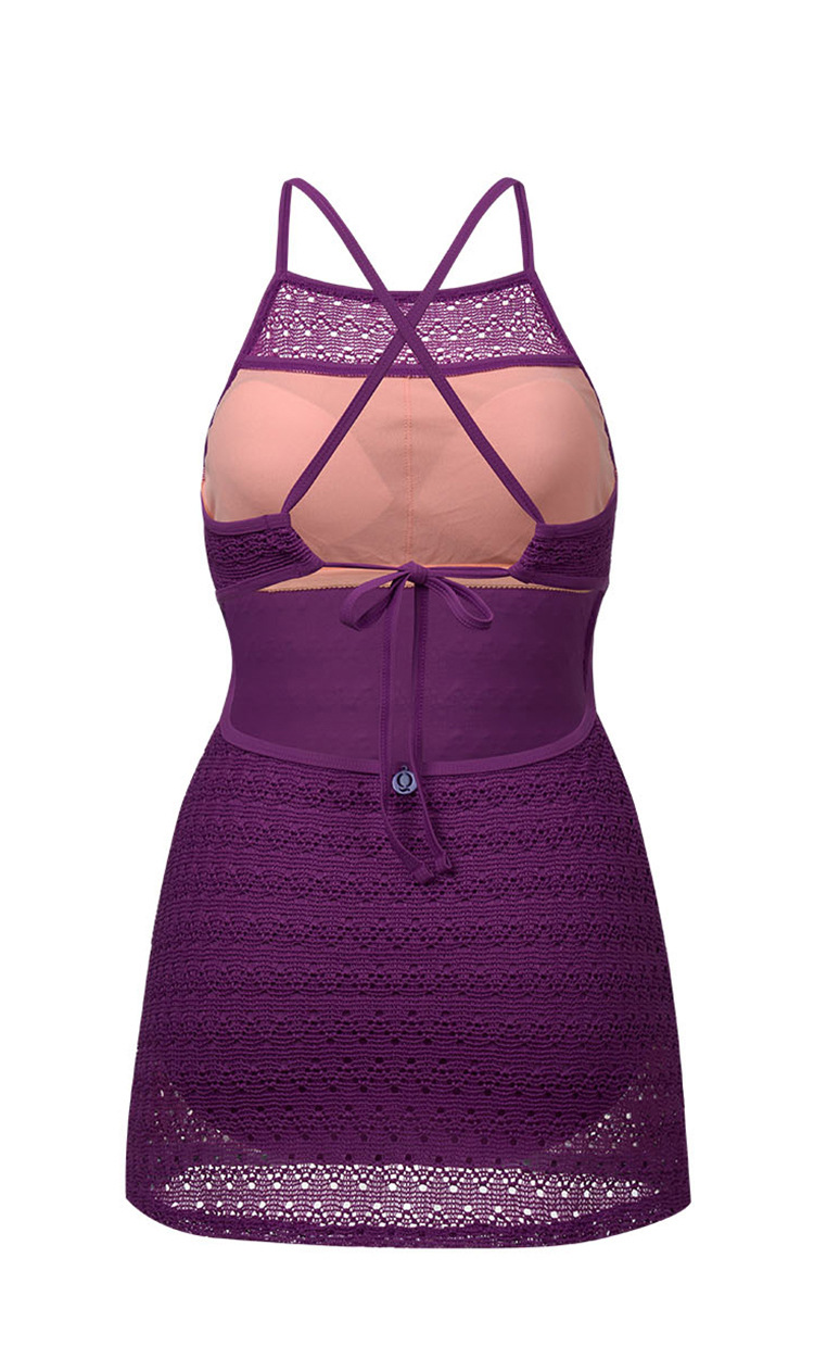 한국의 인기 인터넷 연예인 스타일 흰색과 보라색 아름다운 중공 스커트 원피스 수영복 고급 해변 휴가 수영복