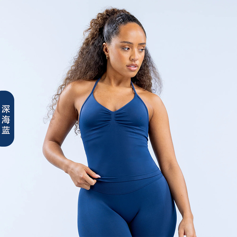 DFYNE 유럽과 미국의 원활한 목 스포츠 조끼, 가슴 패드 높은 탄성 멸종 나일론 요가 브래지어 속옷