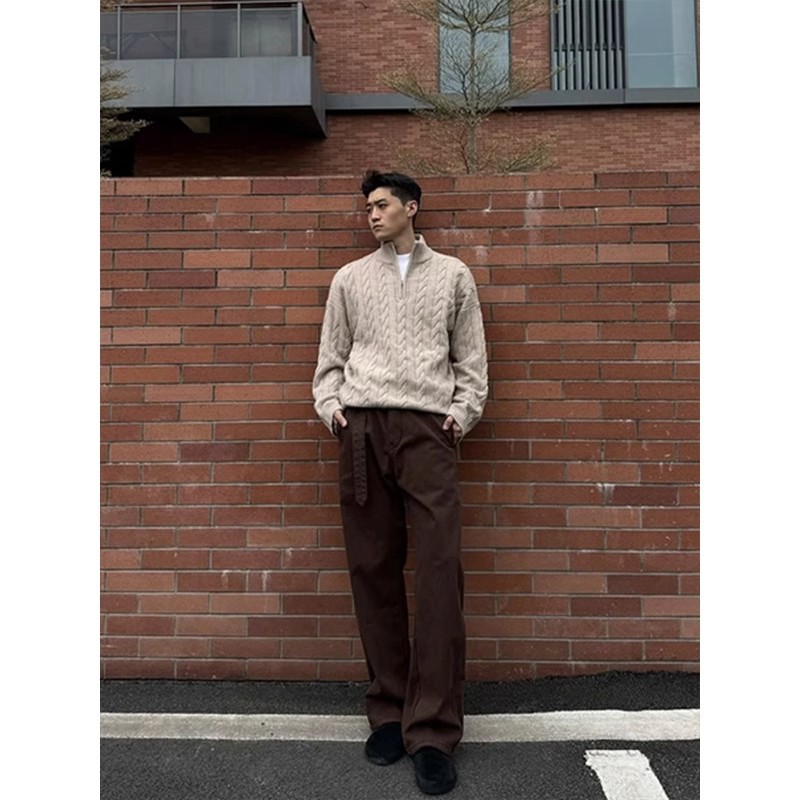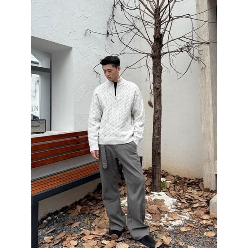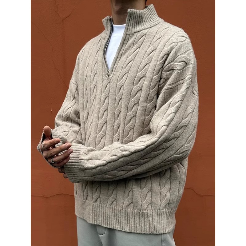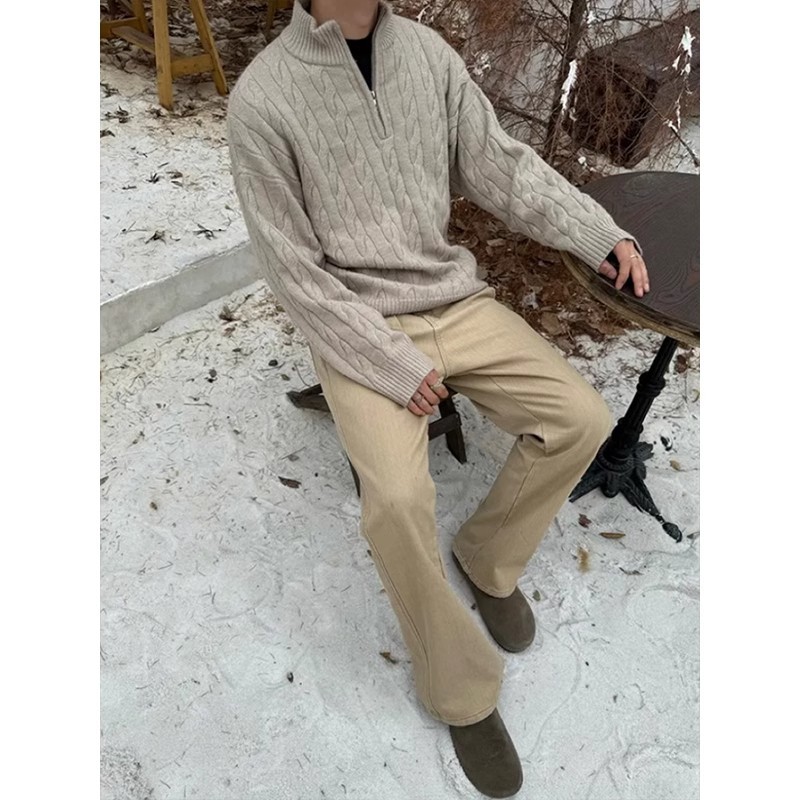 양각 대마 패턴 두꺼운 바늘 영국 스타일 하프 Zip 스웨터 남자 겨울 중간 목 내부 스웨터 코트