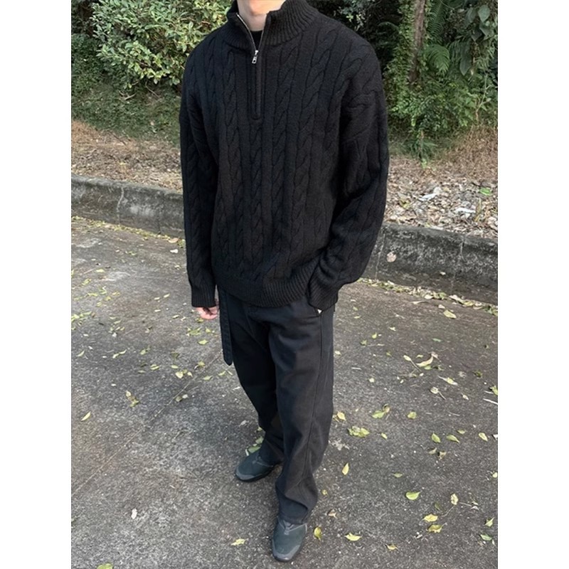 양각 대마 패턴 두꺼운 바늘 영국 스타일 하프 Zip 스웨터 남자 겨울 중간 목 내부 스웨터 코트스토어 가기