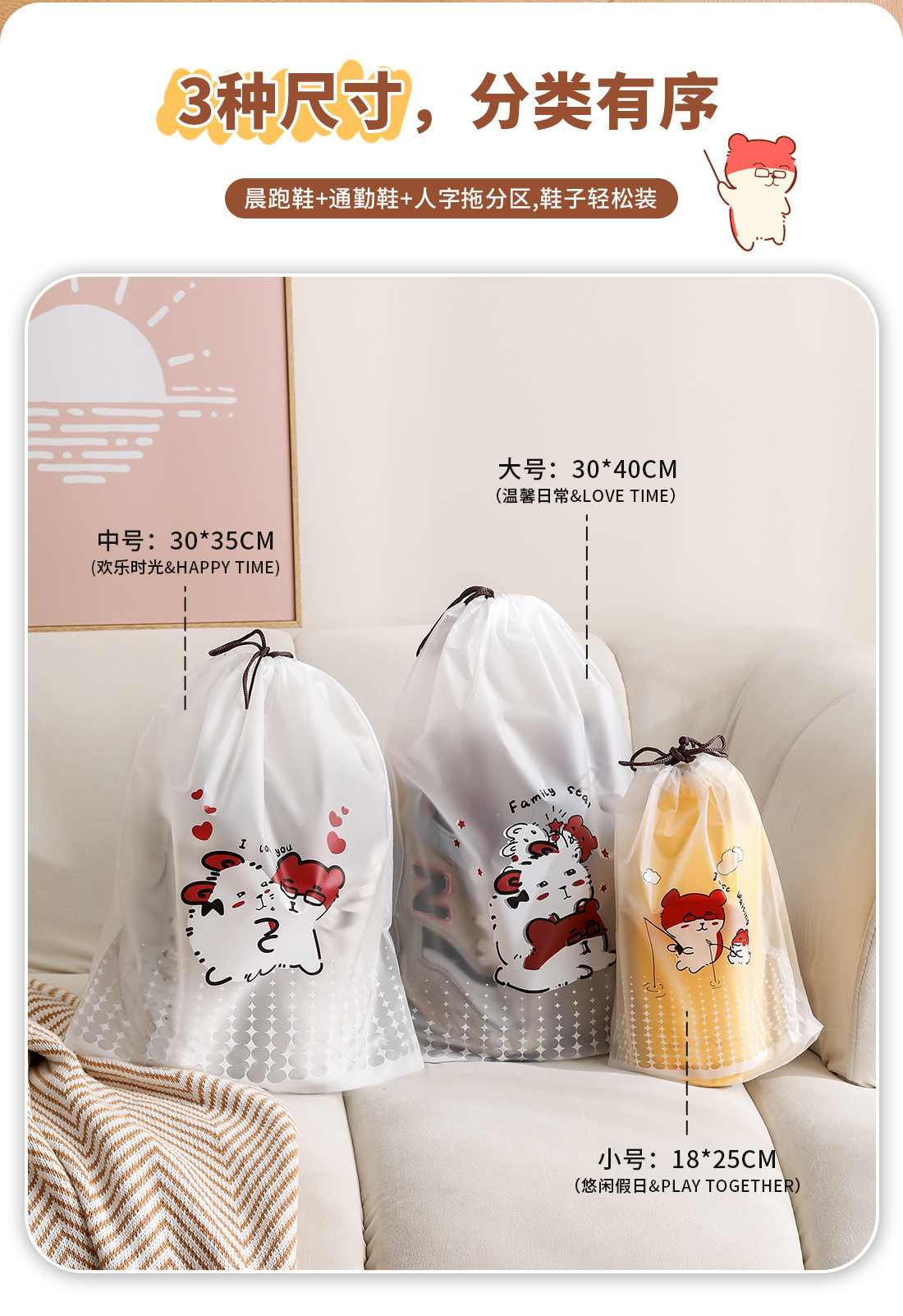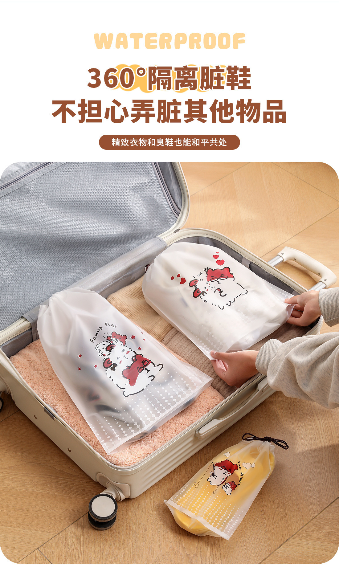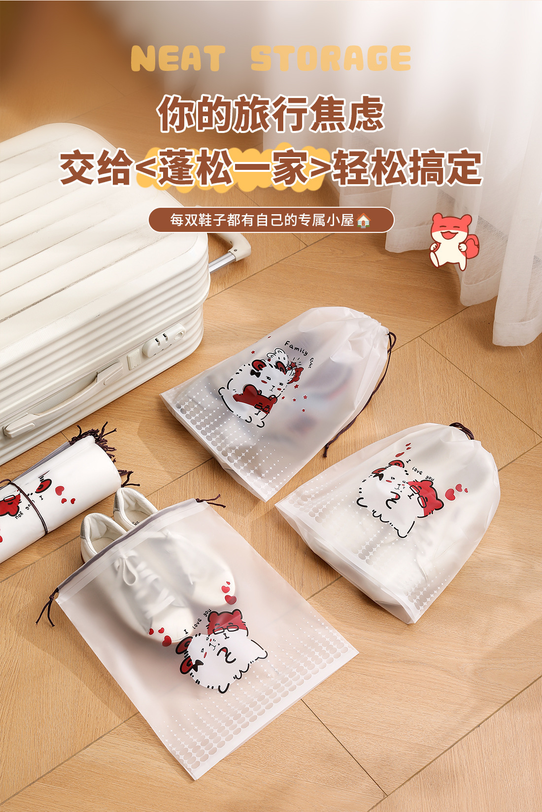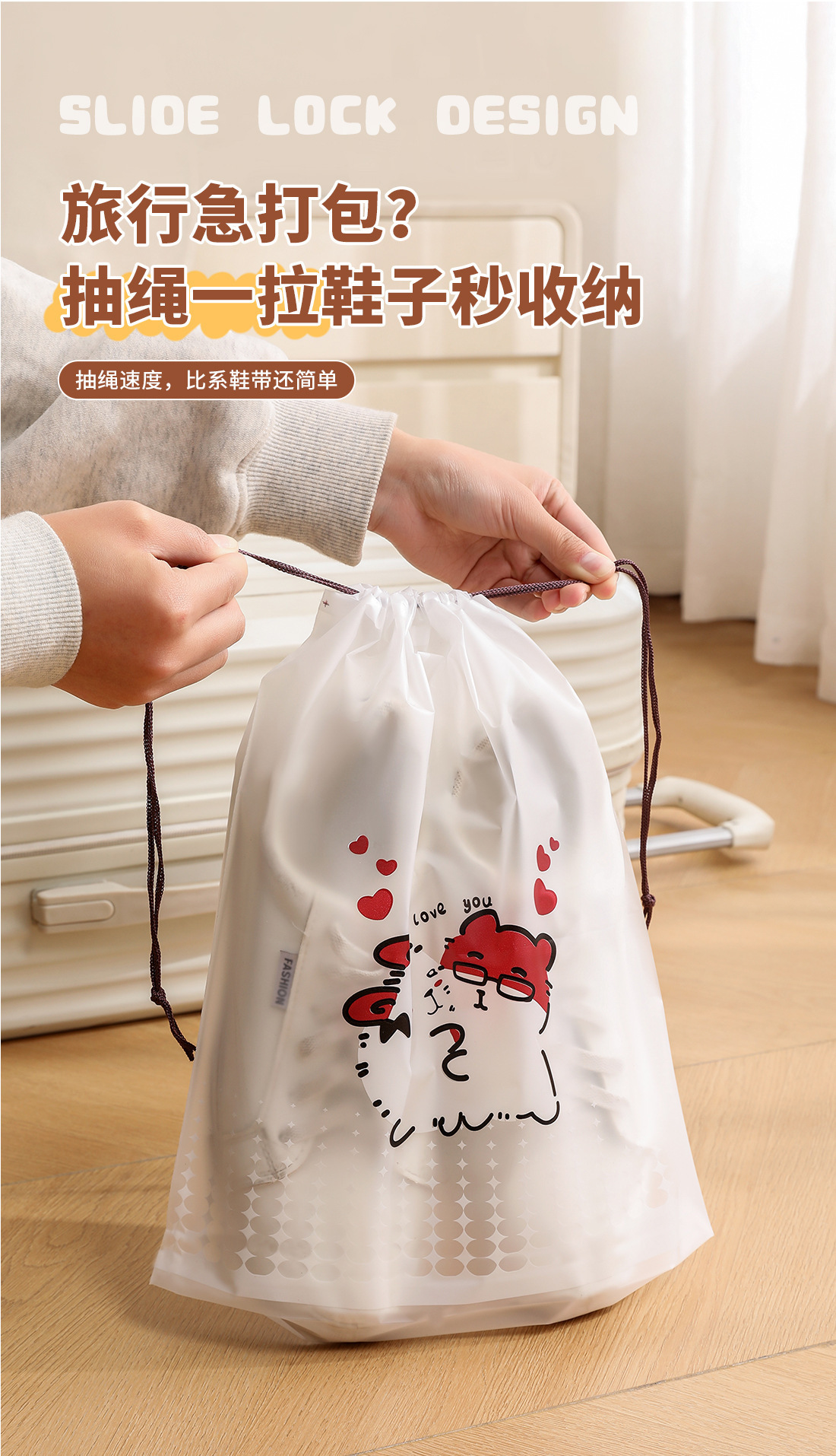 【오리지널】귀여운 여행용 수납 가방, 여행 가방 속옷 정리, 출장용 끈 조임식 편리한 수납 분류 도매스토어 가기