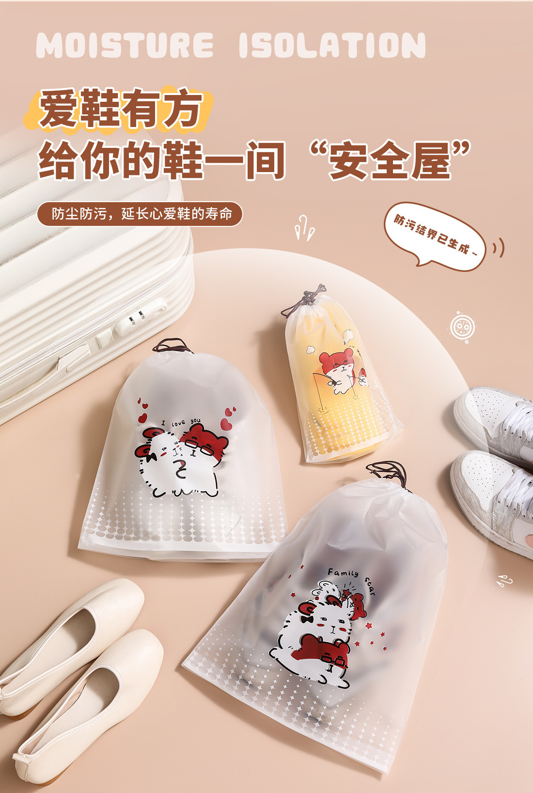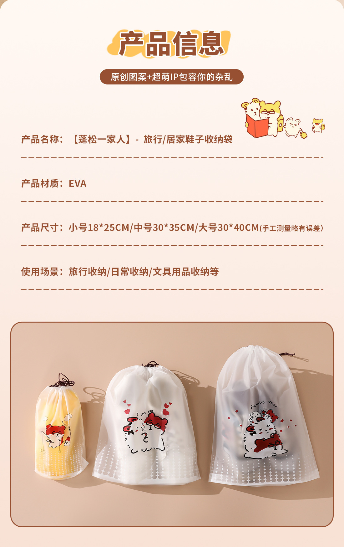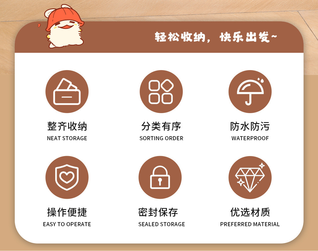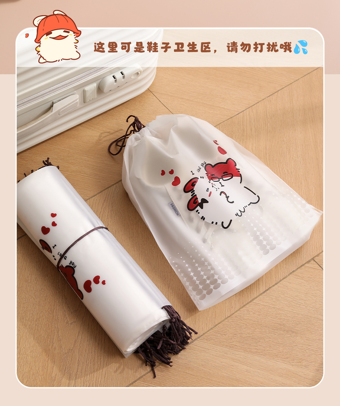 【오리지널】귀여운 여행용 수납 가방, 여행 가방 속옷 정리, 출장용 끈 조임식 편리한 수납 분류 도매스토어 가기