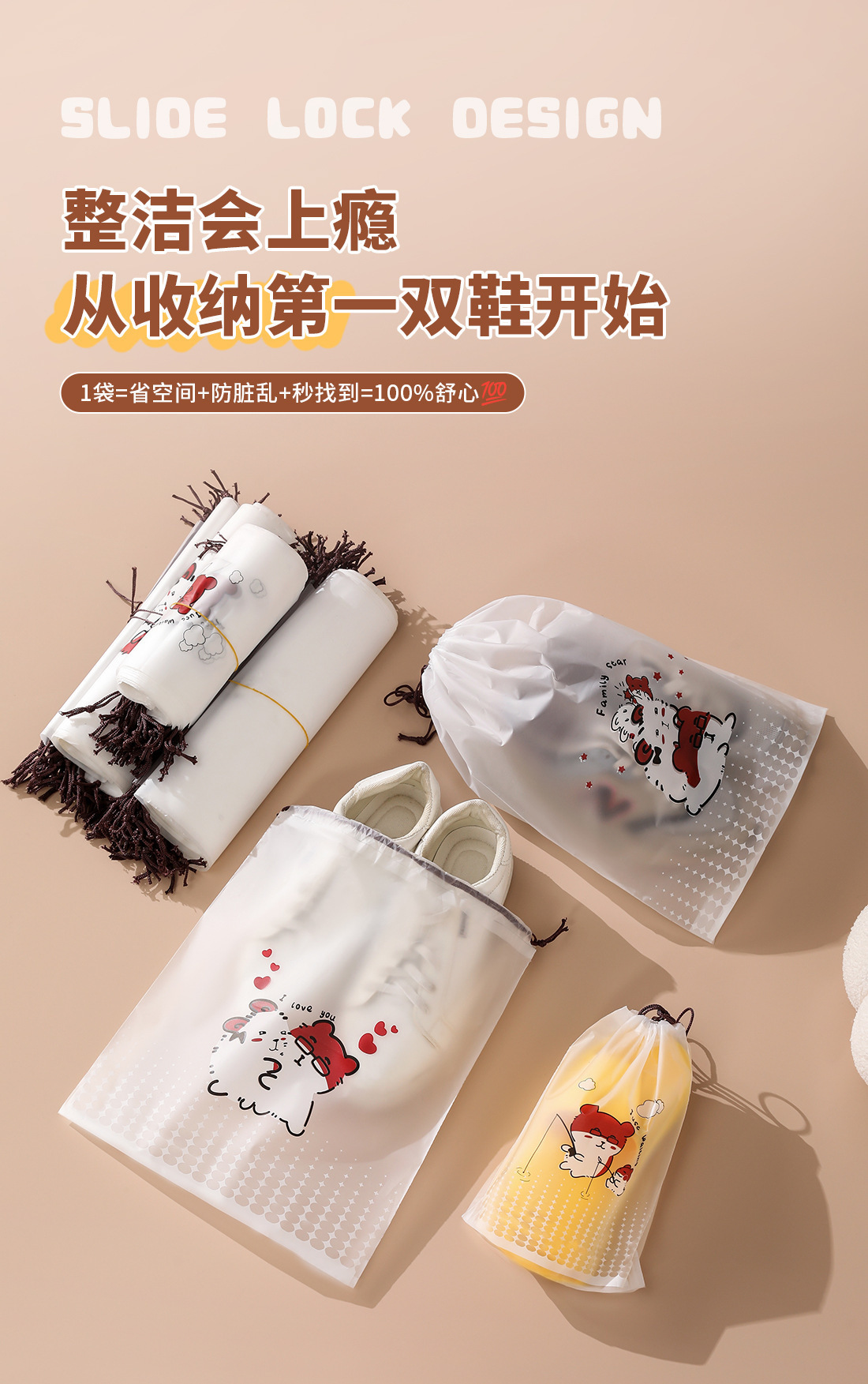 【오리지널】귀여운 여행용 수납 가방, 여행 가방 속옷 정리, 출장용 끈 조임식 편리한 수납 분류 도매