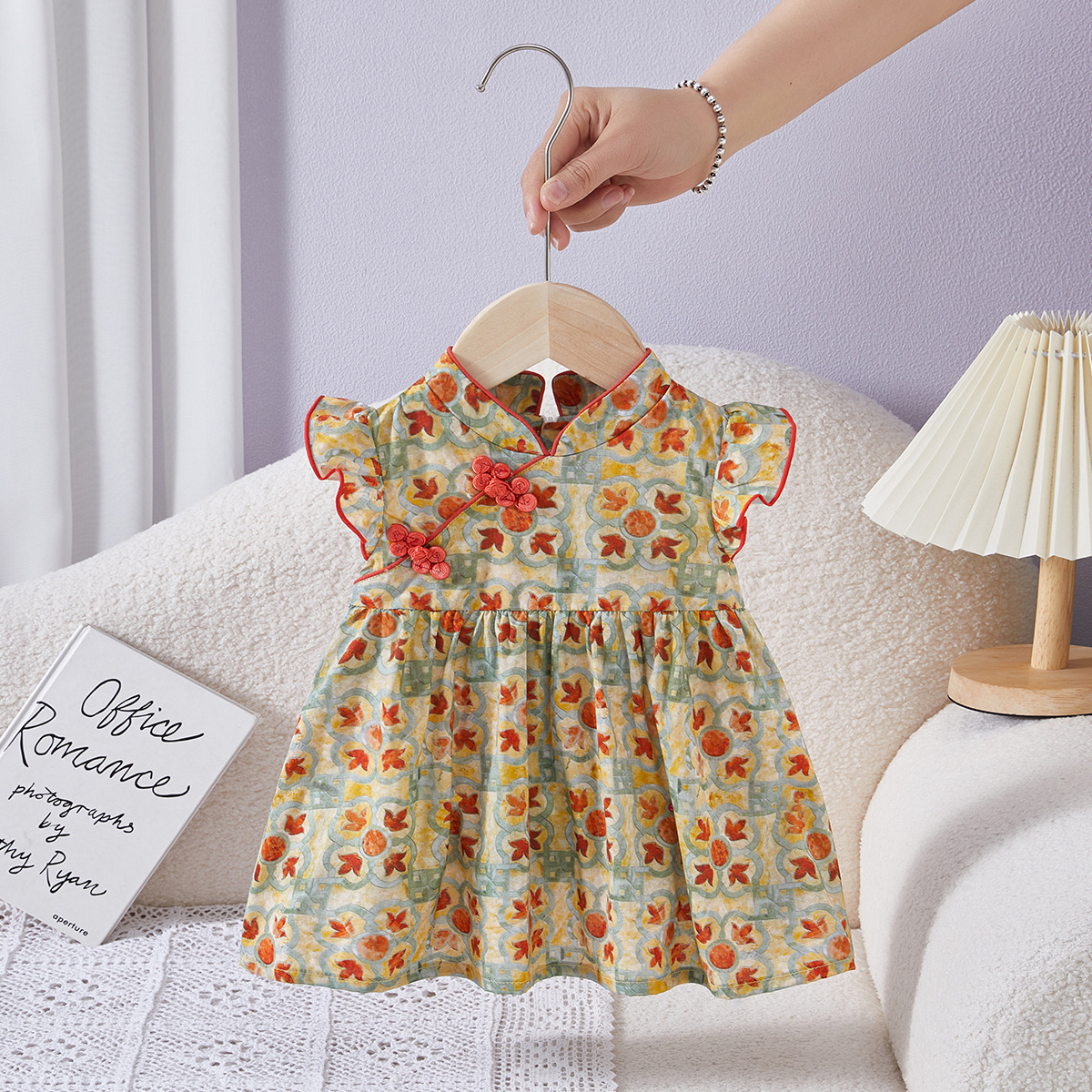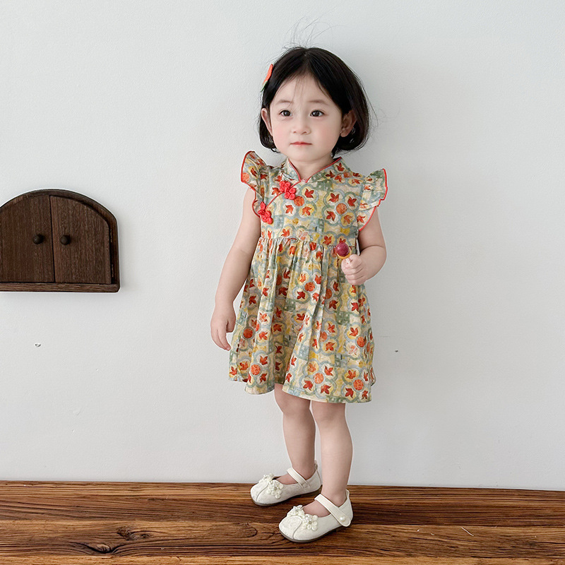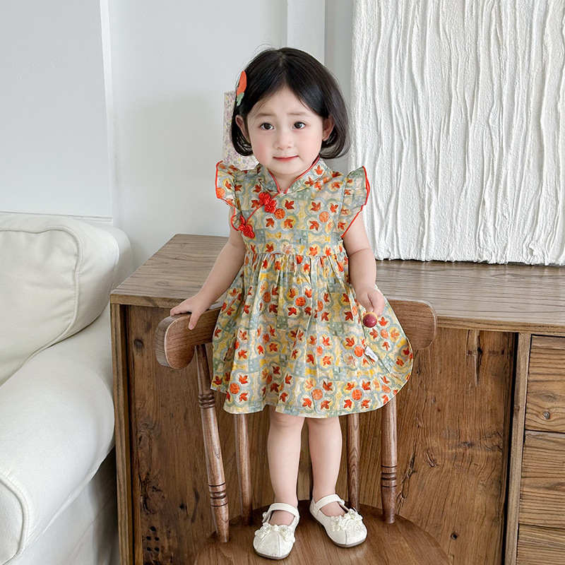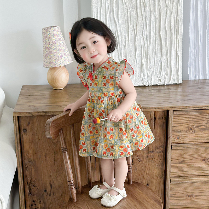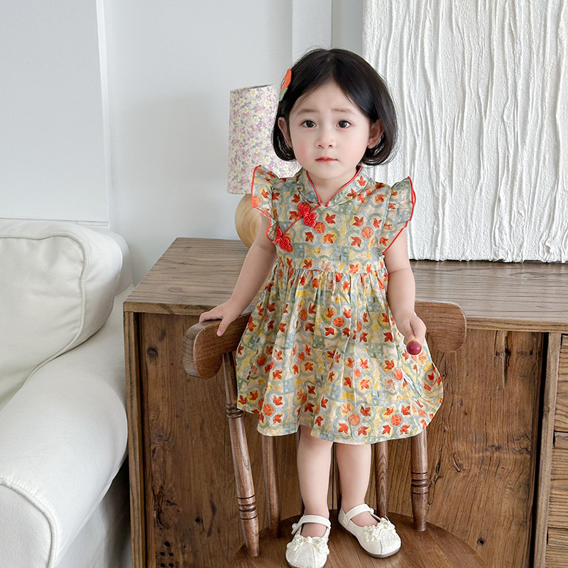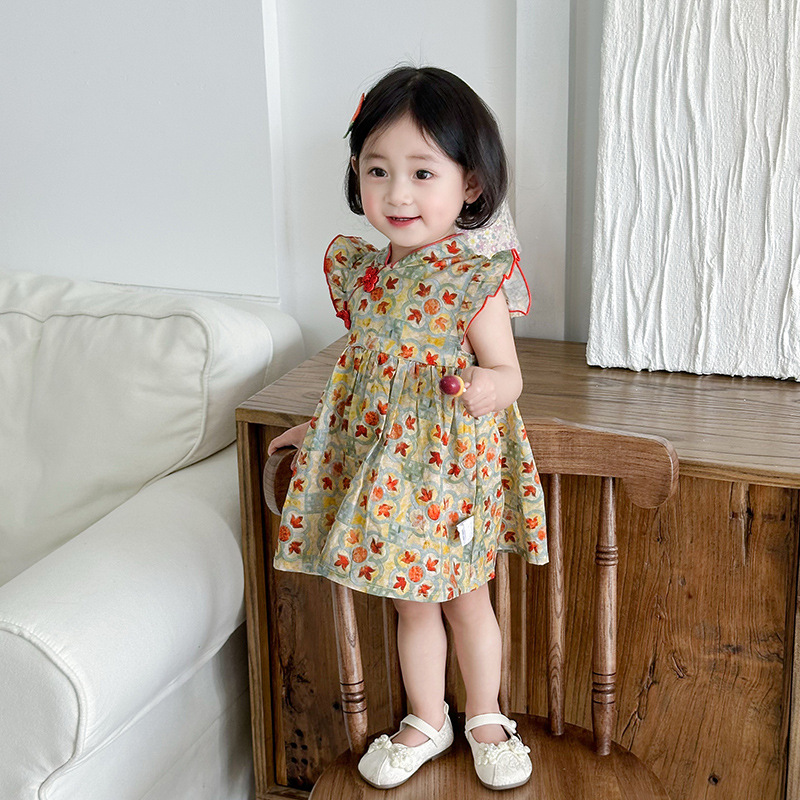 25 여름 새 소녀의 인쇄 된 면화 원피스 중국 스타일 어린이 원피스 새로운 중국 스타일 아기 원피스 1 년 된 원피스
