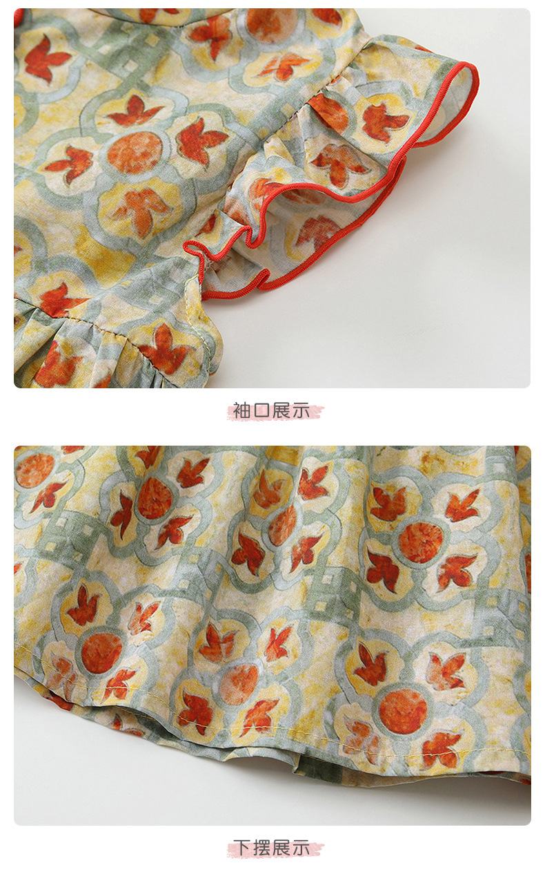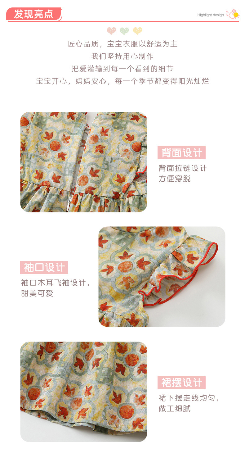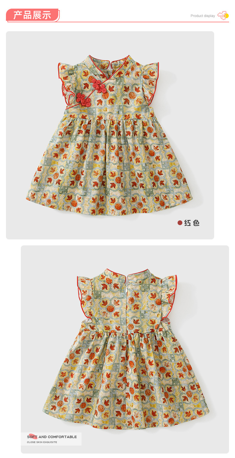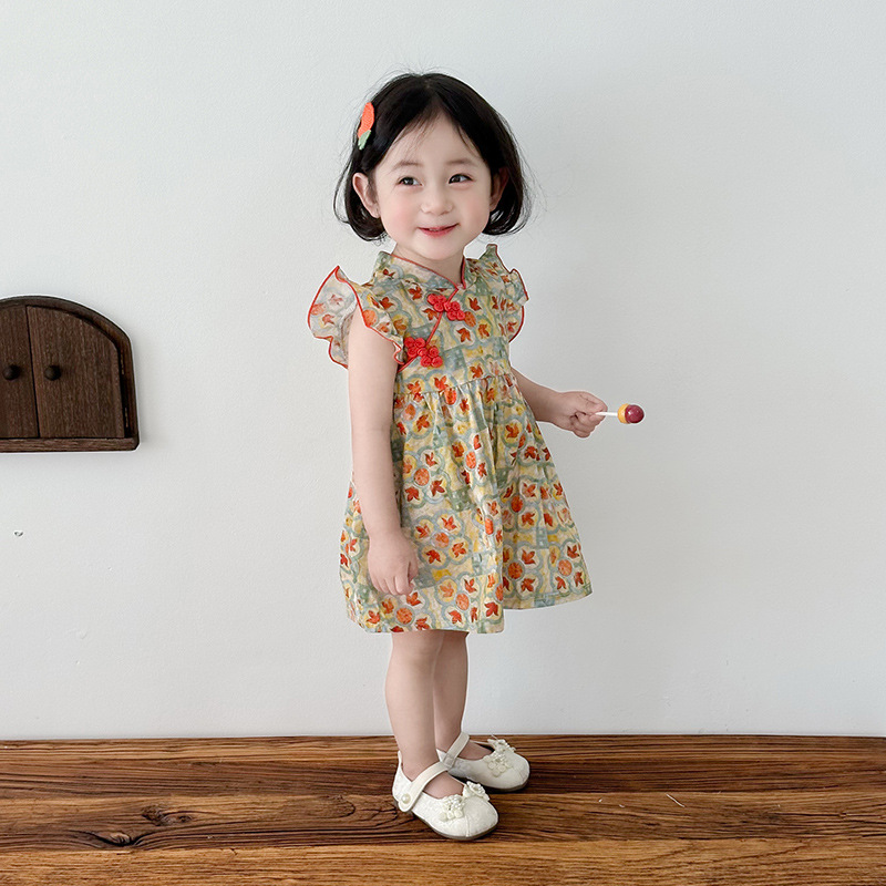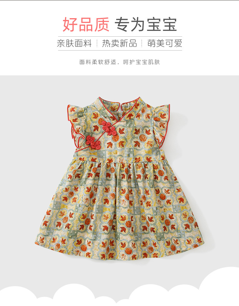 25 여름 새 소녀의 인쇄 된 면화 원피스 중국 스타일 어린이 원피스 새로운 중국 스타일 아기 원피스 1 년 된 원피스