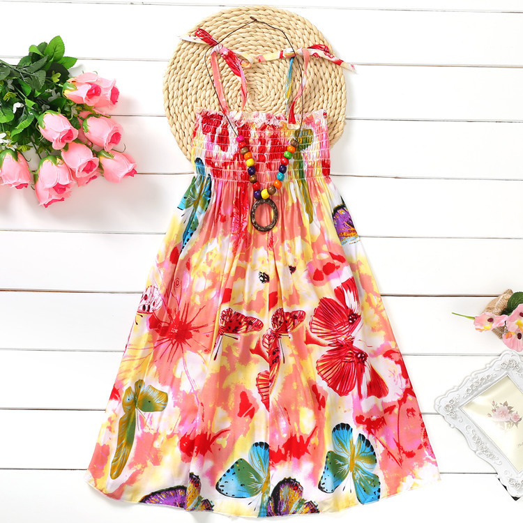 중대형 여아 비치 드레스 여름 어린이 멜빵 드레스 해변 휴가 보헤미안 면 실크 어린이 원피스 스트라이프스토어 가기
