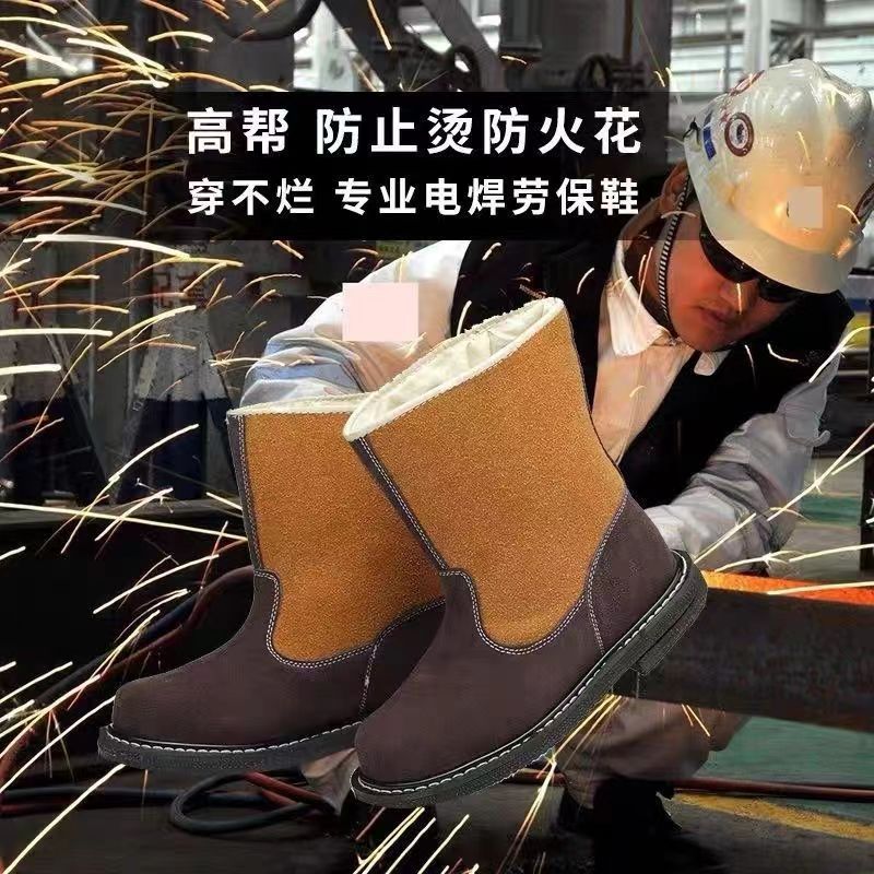하이 탑 용접 노동 보호 신발 내화 고온 내마모성 안티 스매싱 안티 스매싱 보호 신발 소 가죽 보호 부츠 제조 업체스토어 가기
