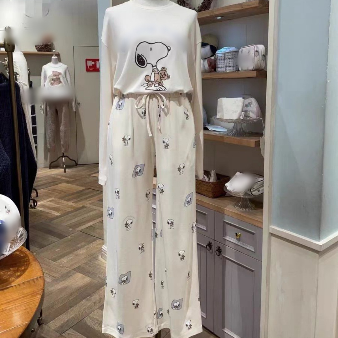 gp 무라벨 오리지널 남성용 부드러운 아이스크림 스누피 프린트 소프트 라운드넥 긴팔 잠옷 커플 홈웨어스토어 가기