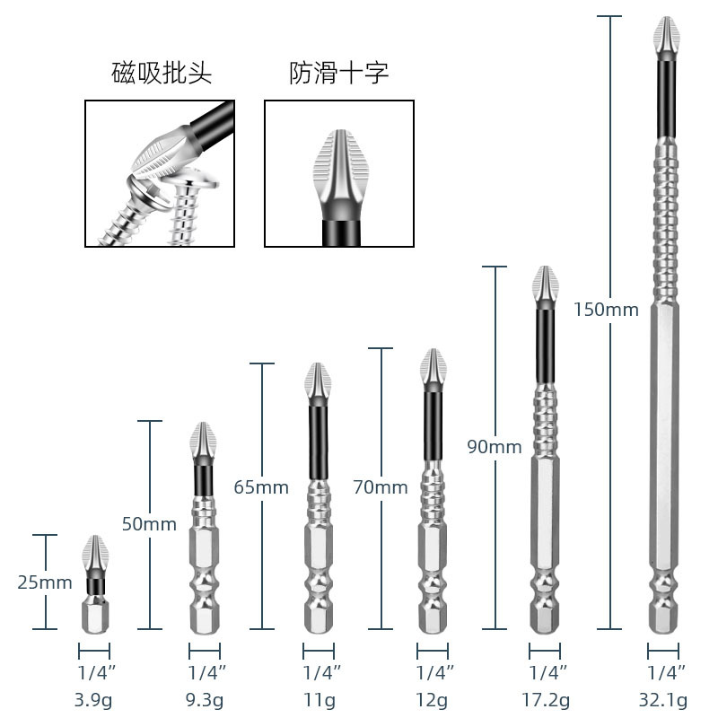 • 8개[보라색 미끄럼 방지 임팩트 배치(25/50/65/70/90/150) + 수납 베이스 + 육각 손잡이 및 자화 장치] 91.5g