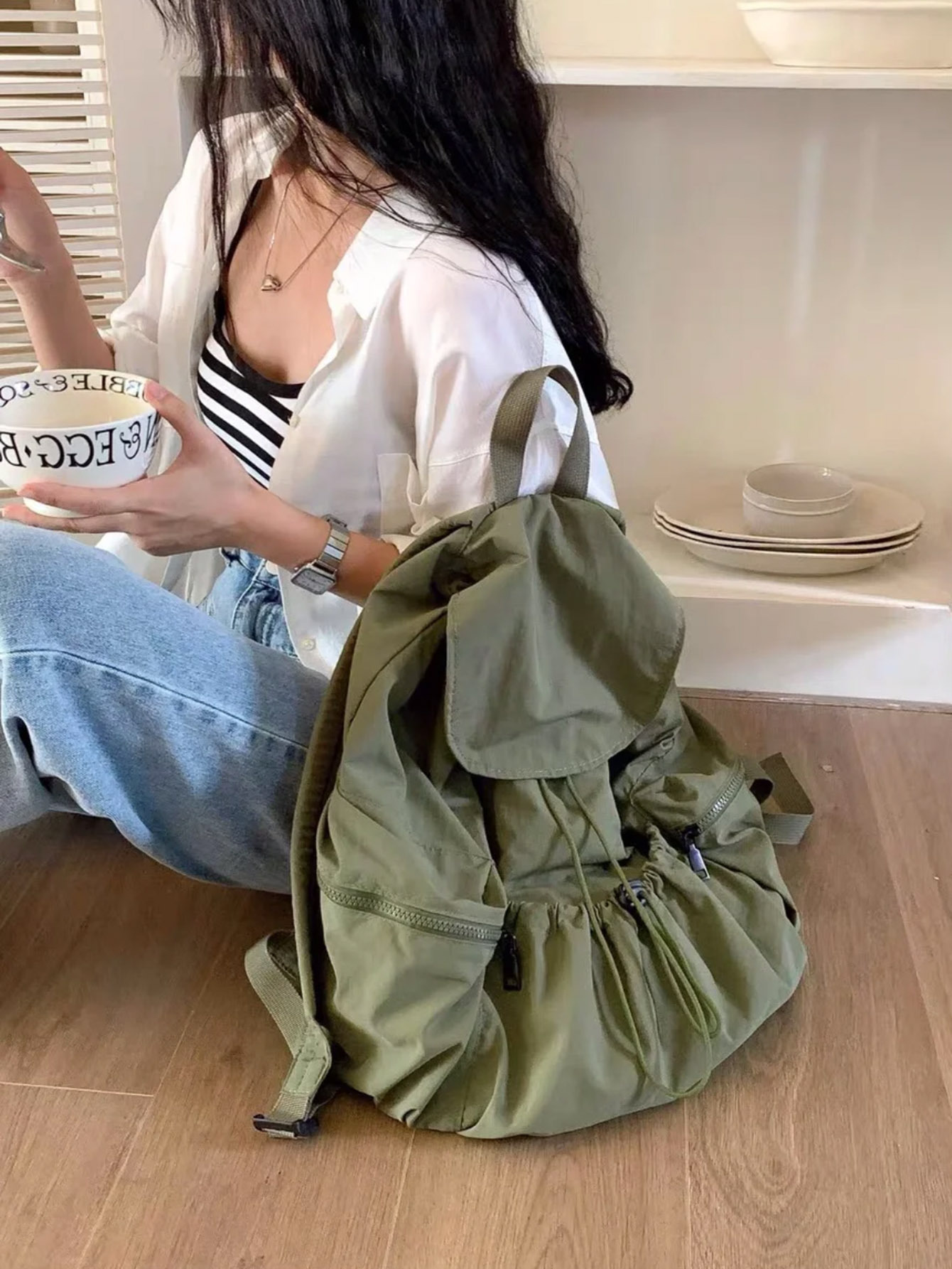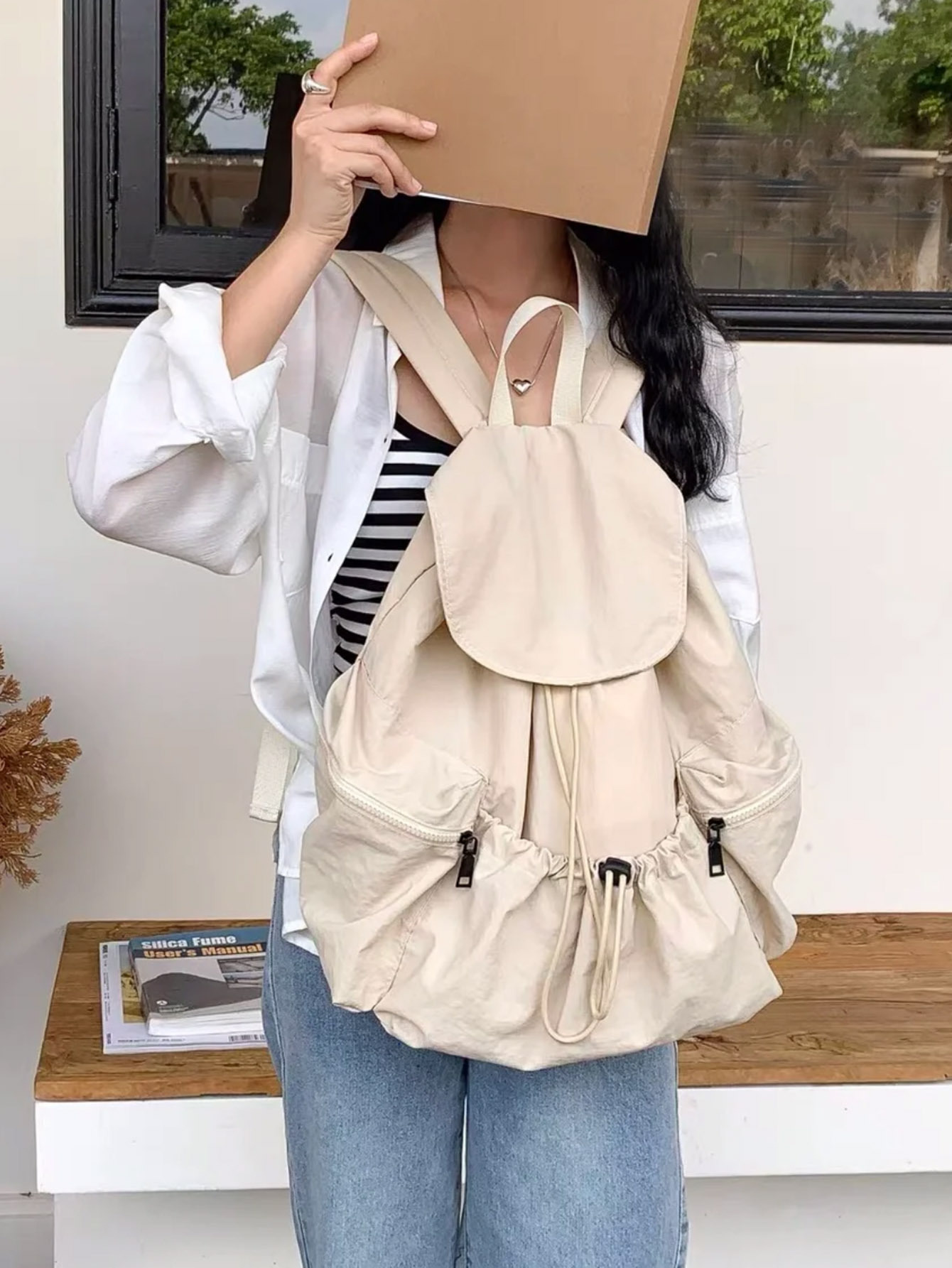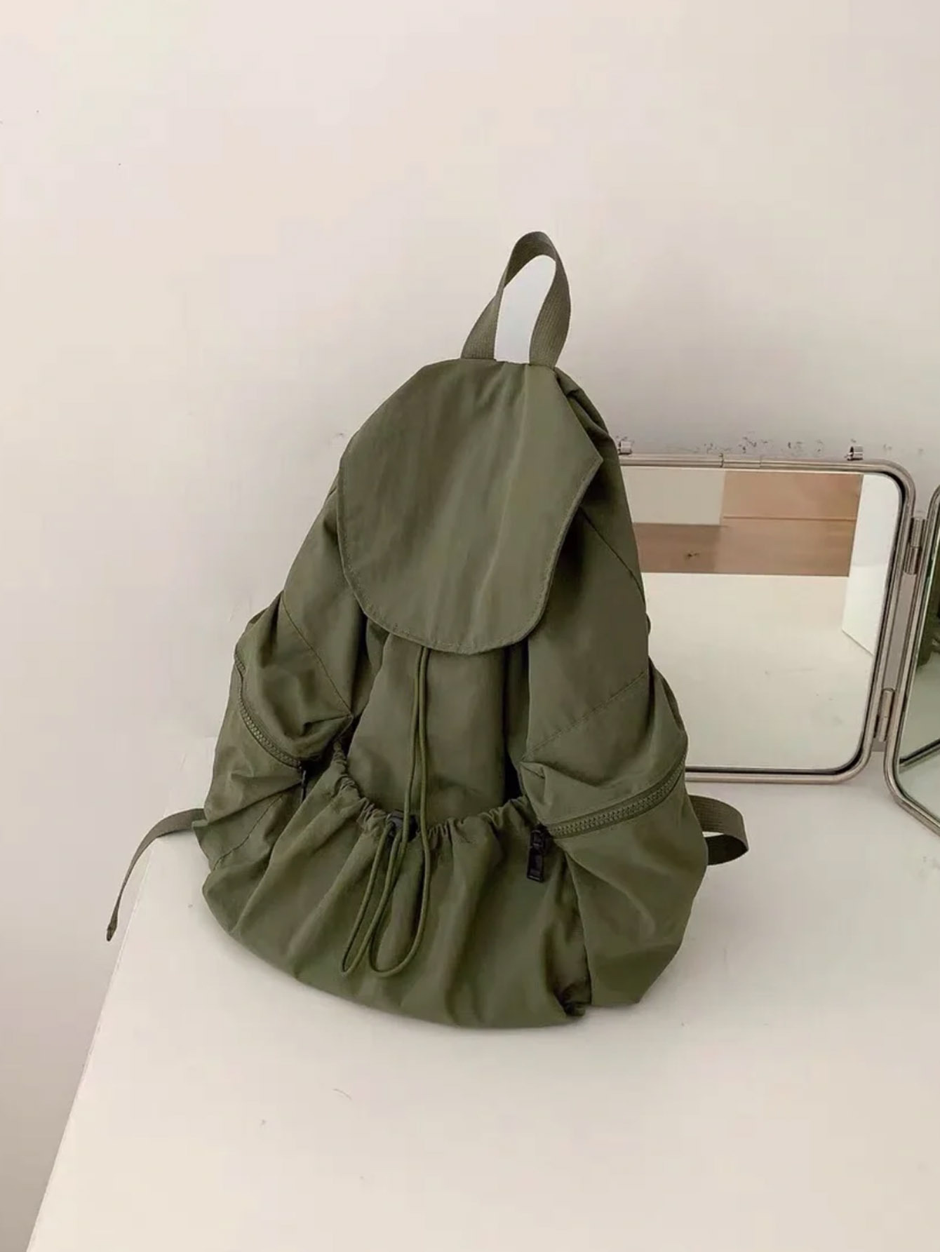 盖头背包尺寸 高40cm,底宽16cm,底长32cm 测量方式误差1-3cm