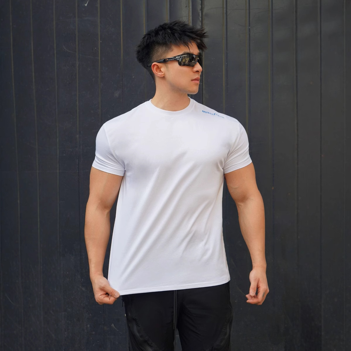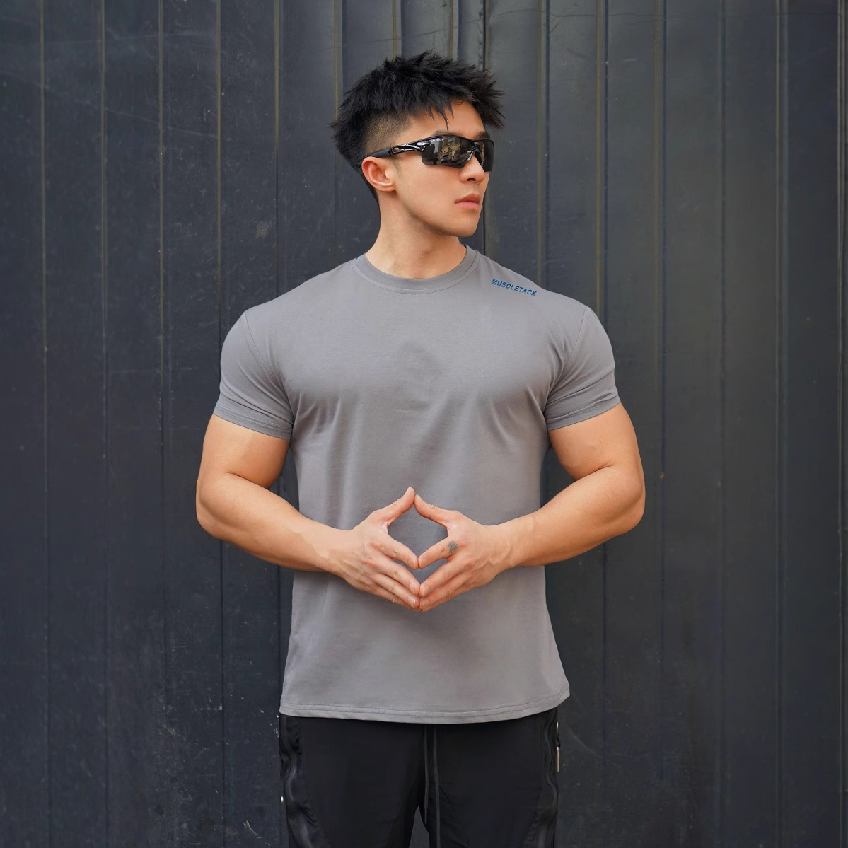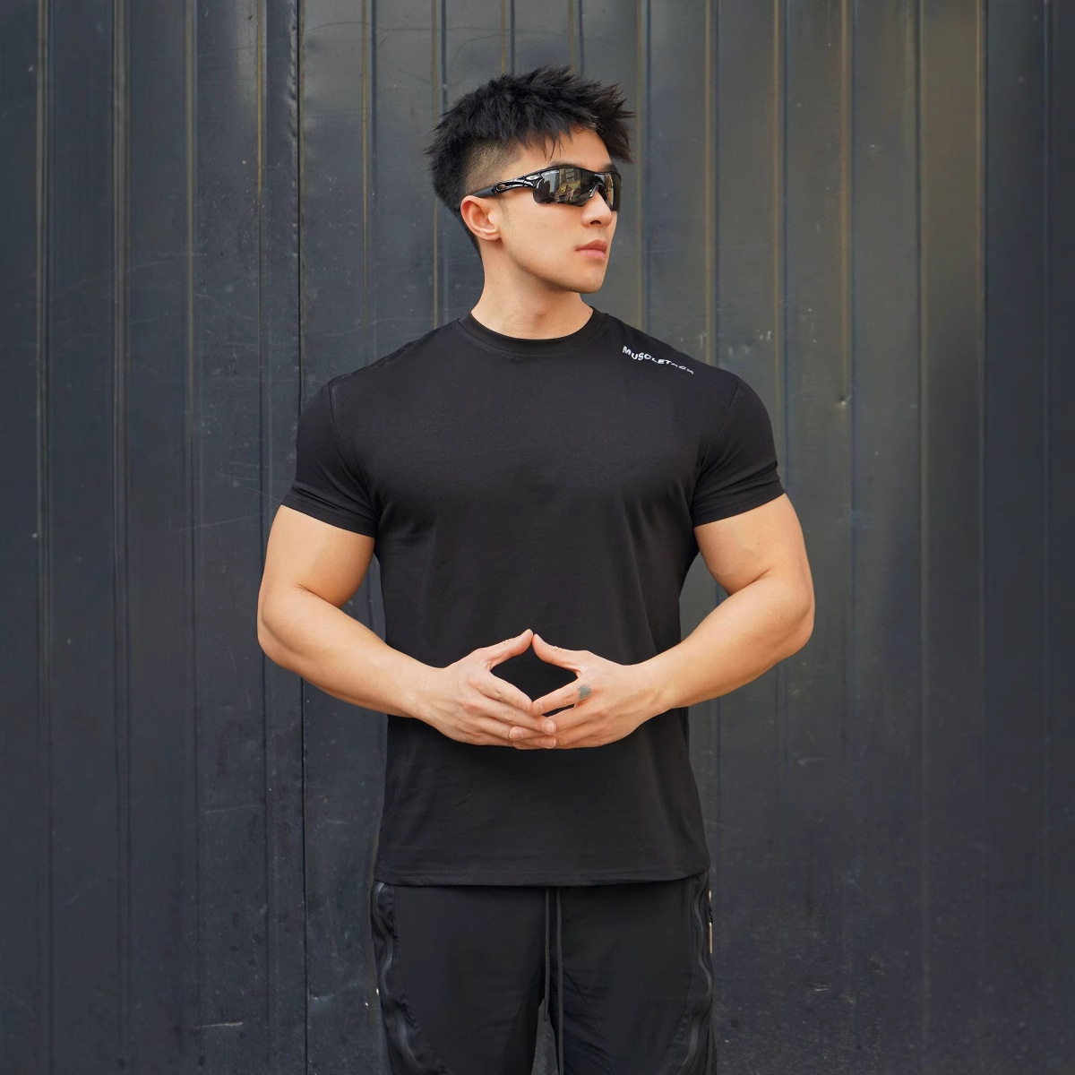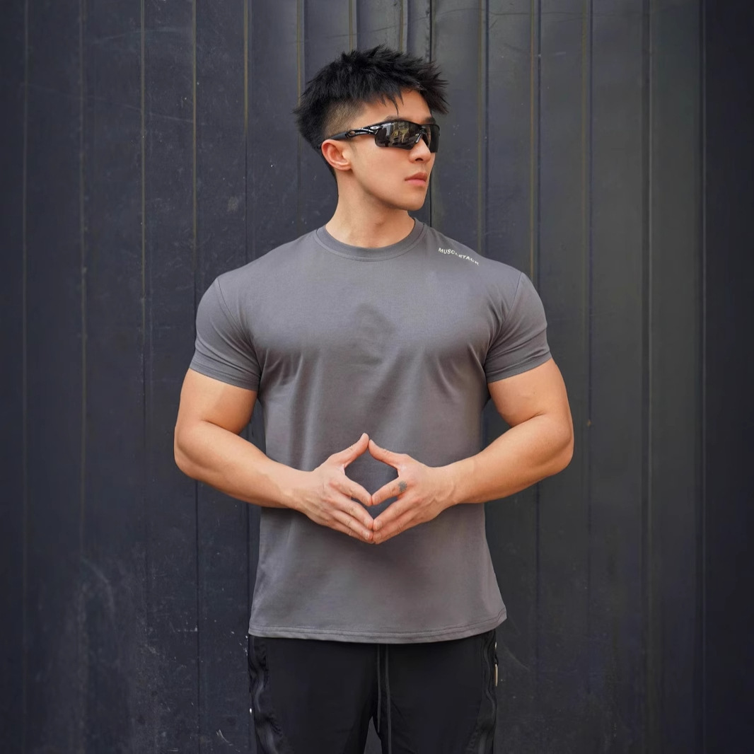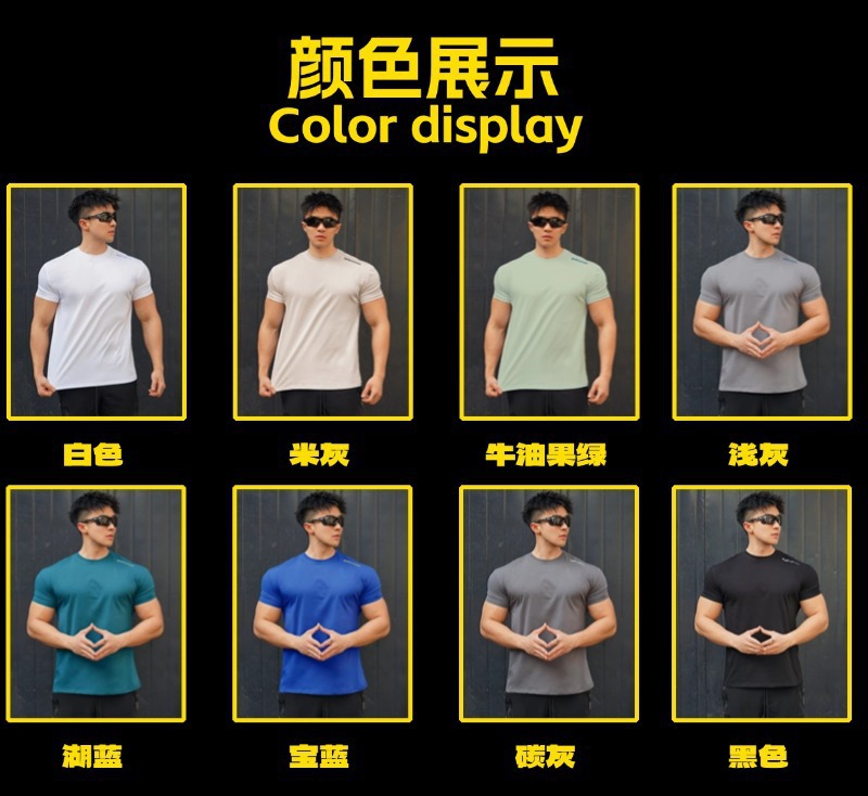 2025 근육 피트니스 형제 스포츠 남성 티셔츠 통기성 솔로나 솔리드 컬러 라운드 넥 캐주얼 러닝 짧은 소매