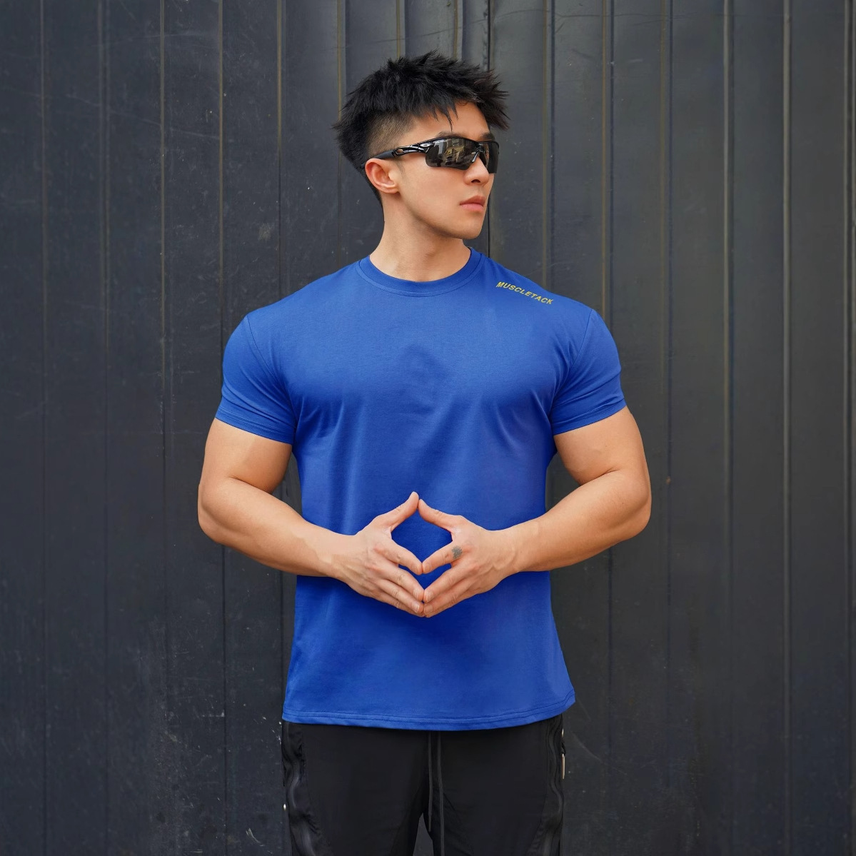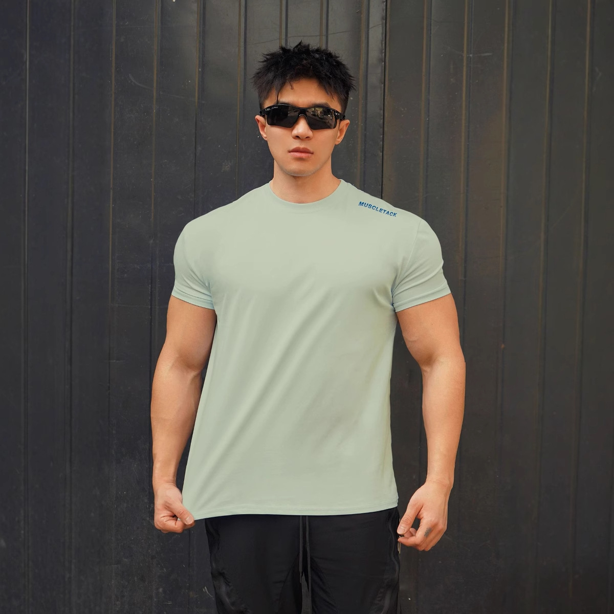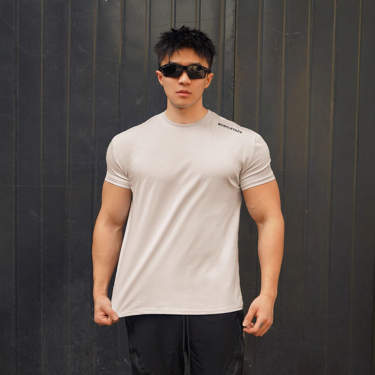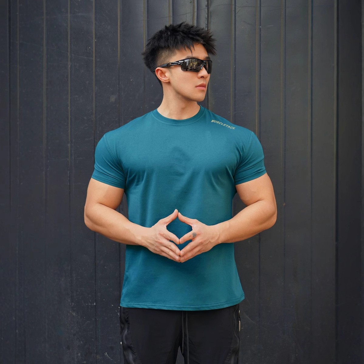 2025 근육 피트니스 형제 스포츠 남성 티셔츠 통기성 솔로나 솔리드 컬러 라운드 넥 캐주얼 러닝 짧은 소매