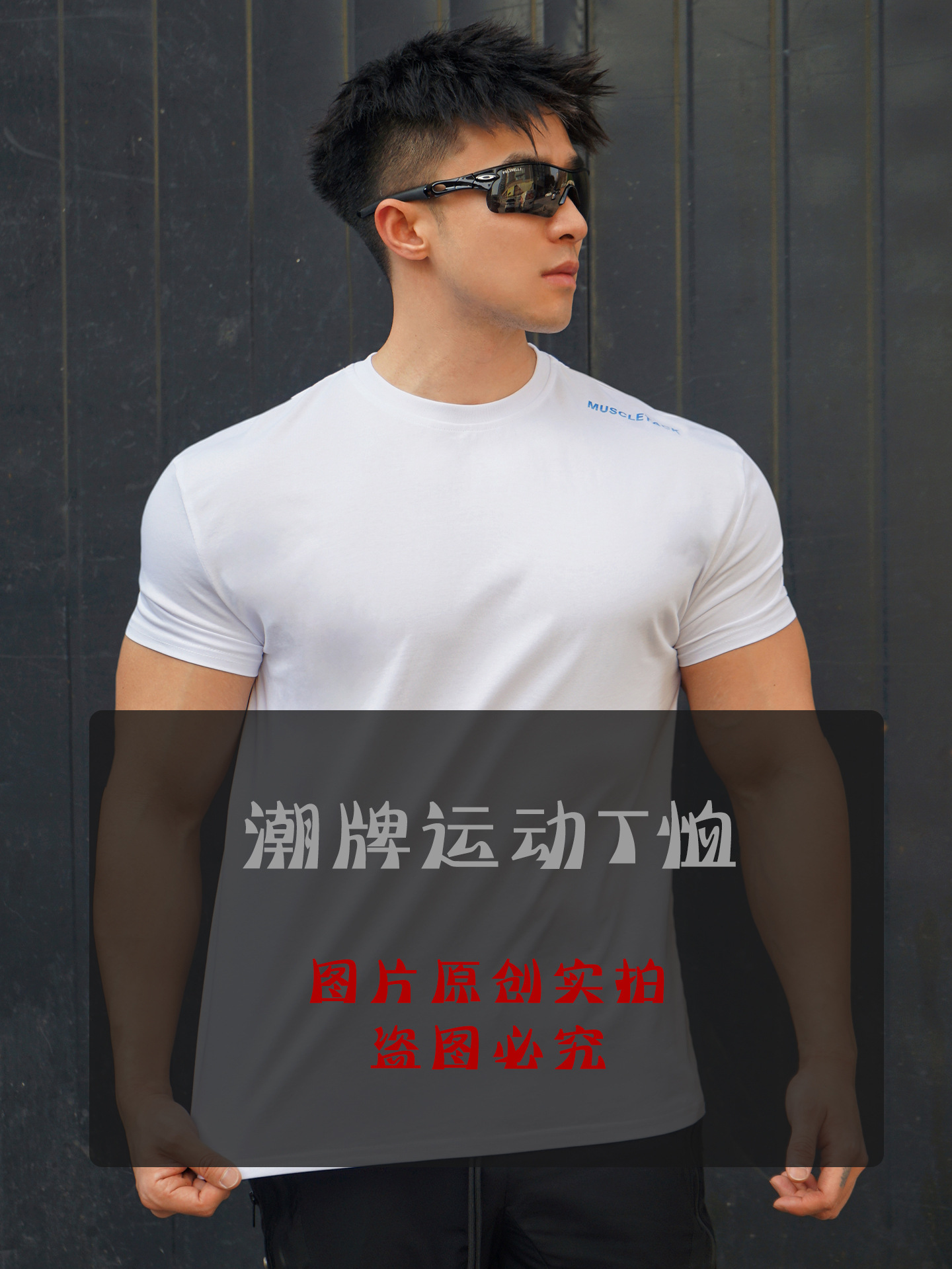 2025 근육 피트니스 형제 스포츠 남성 티셔츠 통기성 솔로나 솔리드 컬러 라운드 넥 캐주얼 러닝 짧은 소매스토어 가기