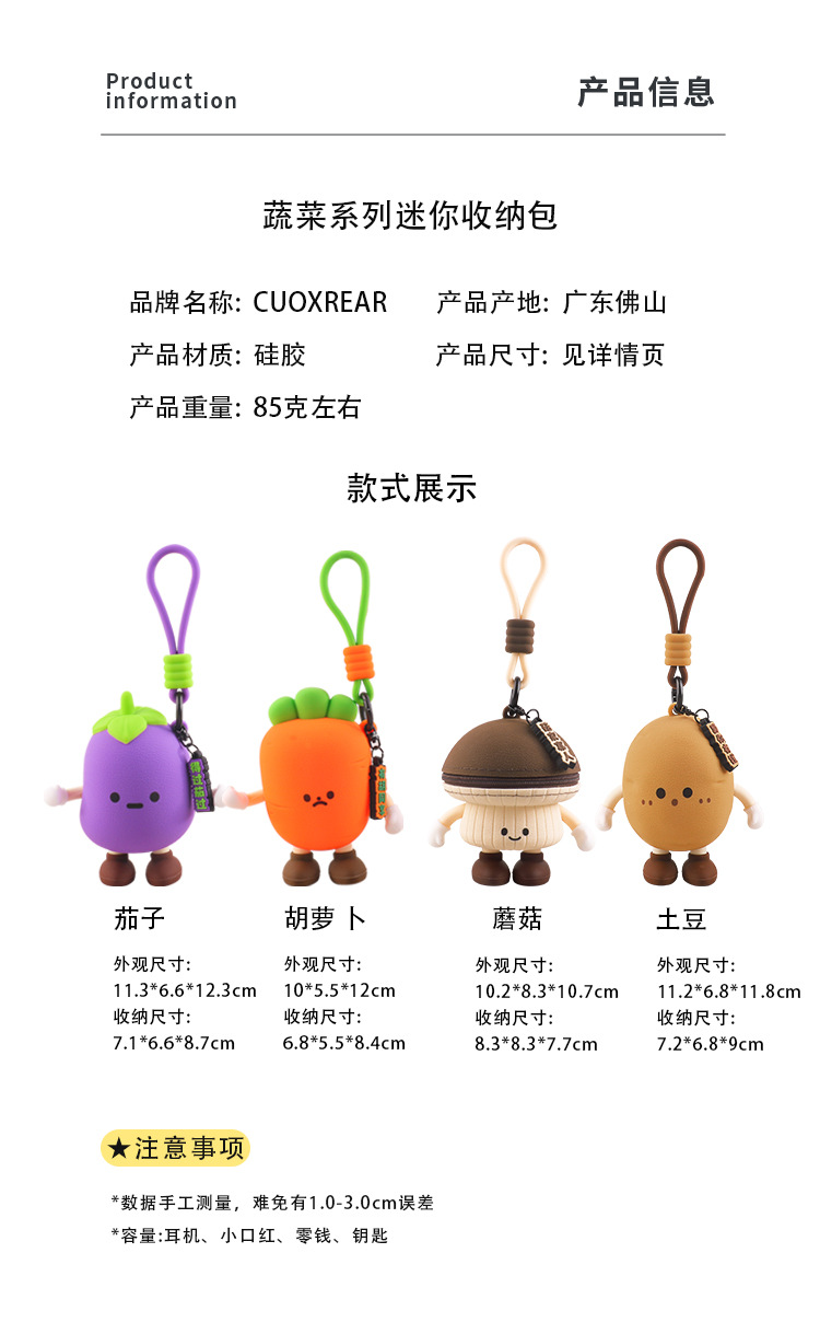 귀여운 야채 시리즈 동전 지갑 무 재미있는 헤드셋 미니 저장 가방 가지 가방 키 펜던트 크리에이티브스토어 가기