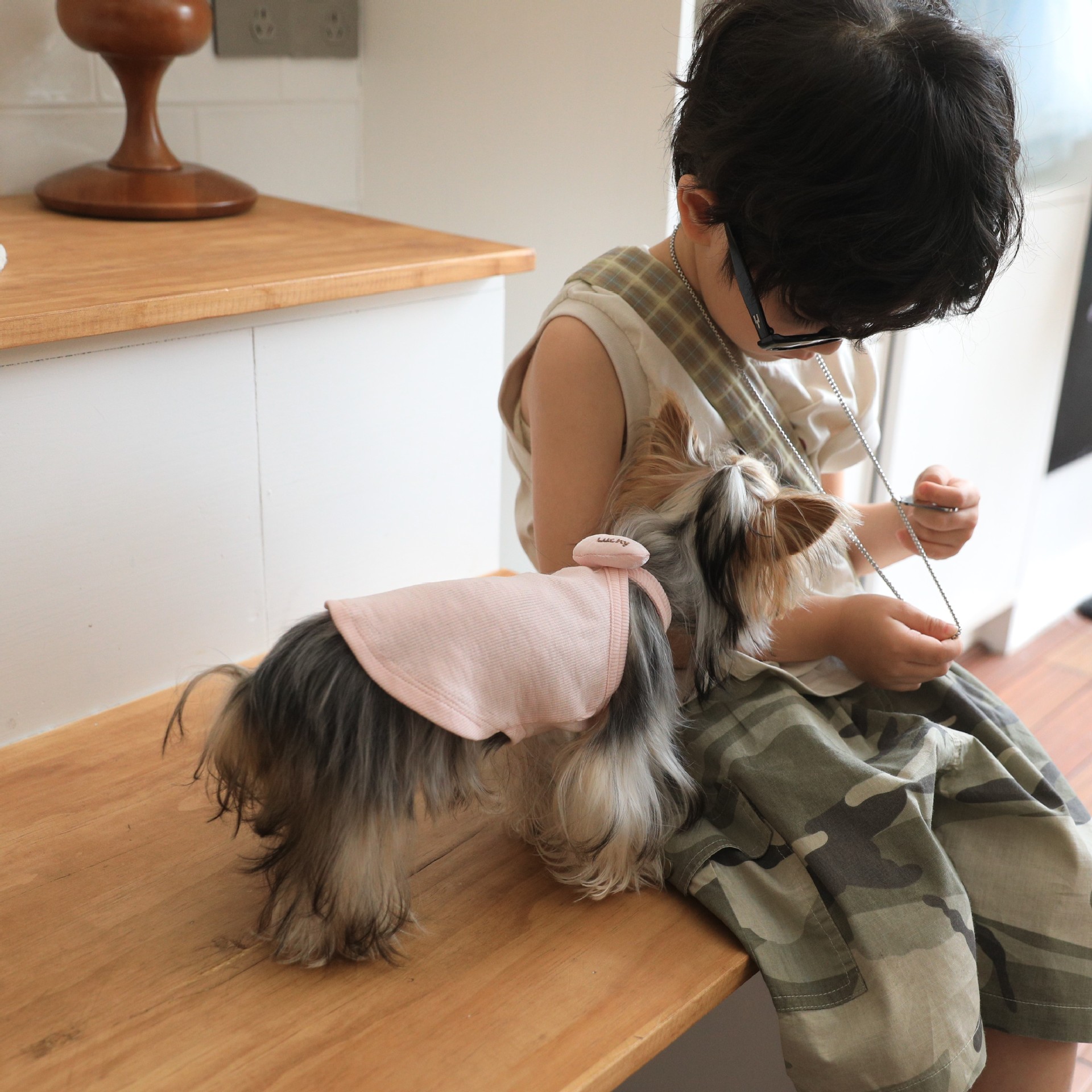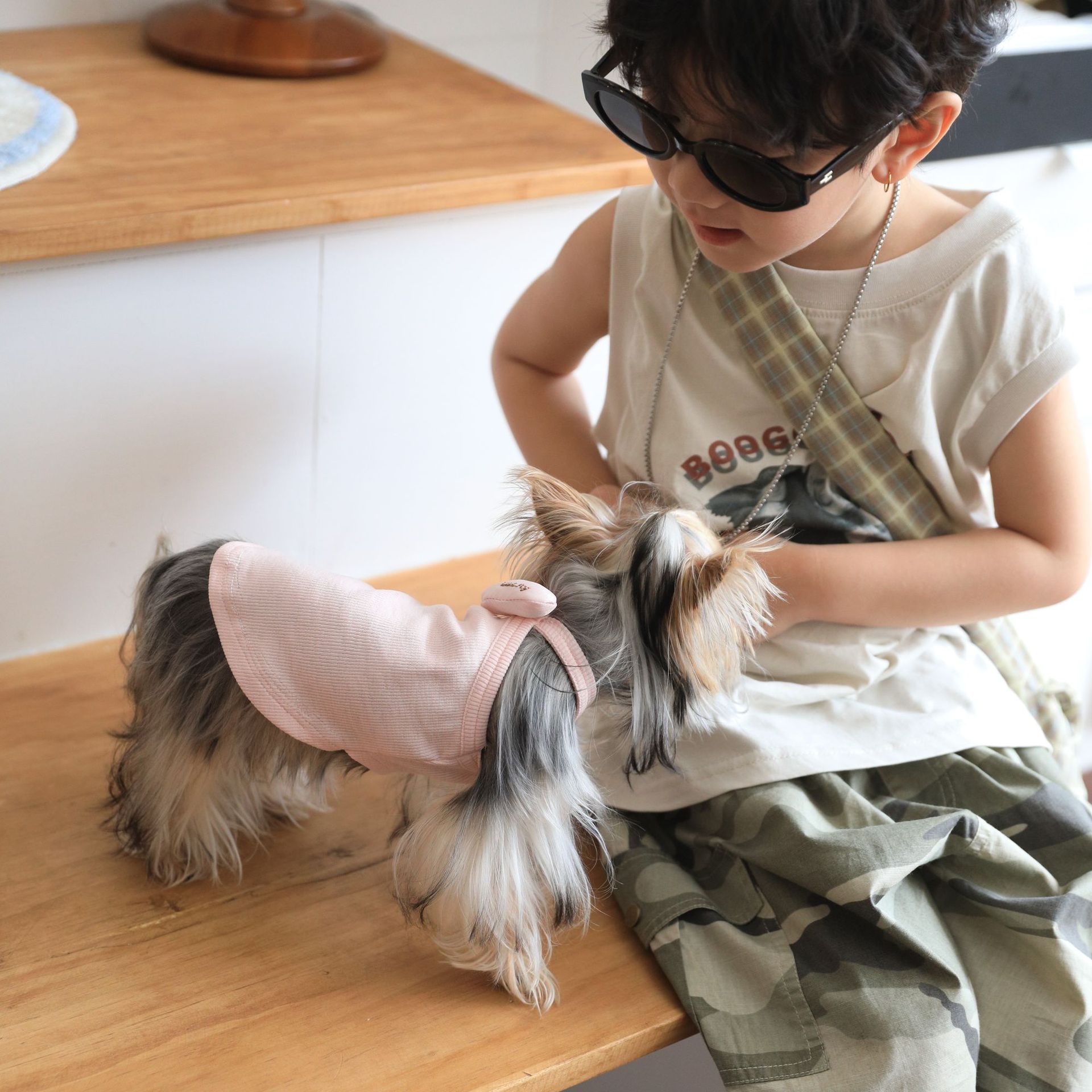 드레싱 코튼 부드러운 사랑 작은 슬링 봄과 여름 목 애완 동물 강아지 고양이 쓴 곰 Malzis 옷