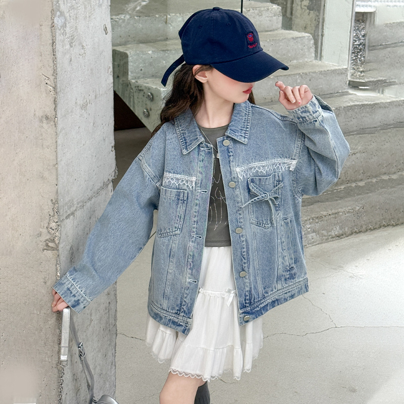 여아 데님 재킷 가을옷 2025 신상 아동용 스타일리쉬 데님 의류 중대형 아동 캐주얼 스타일리쉬 재킷 상의스토어 가기