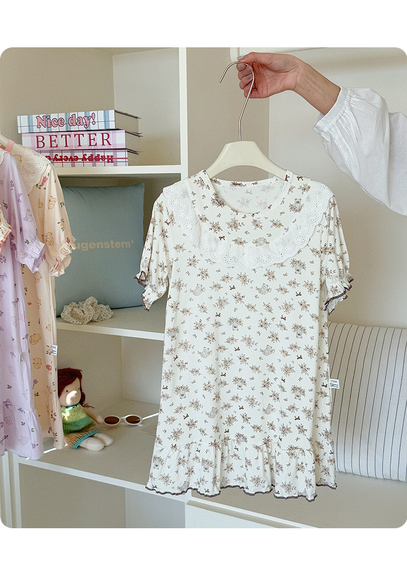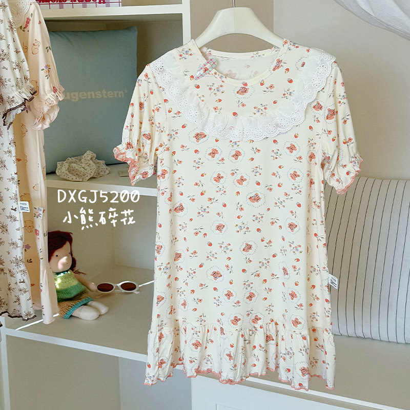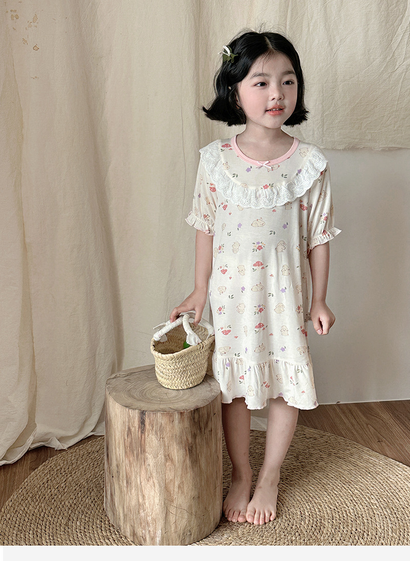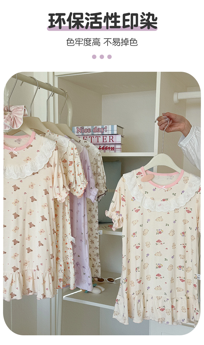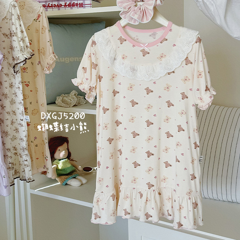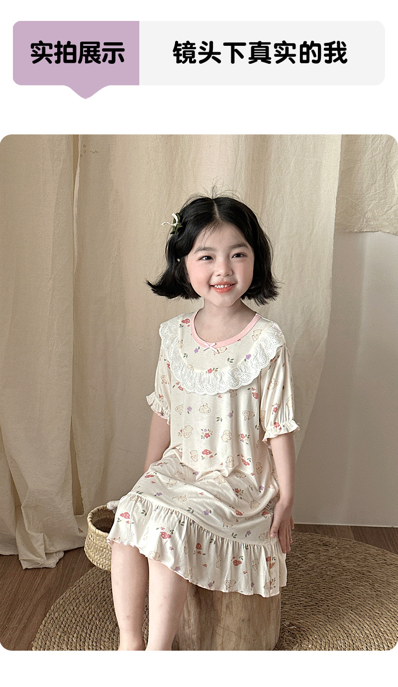 콩 새싹 곰 얼음 도라에몽 어린이 나이트 드레스 2025 여름 새로운 만화 전체 인쇄 느슨한 소녀의 레이스 여름 원피스스토어 가기