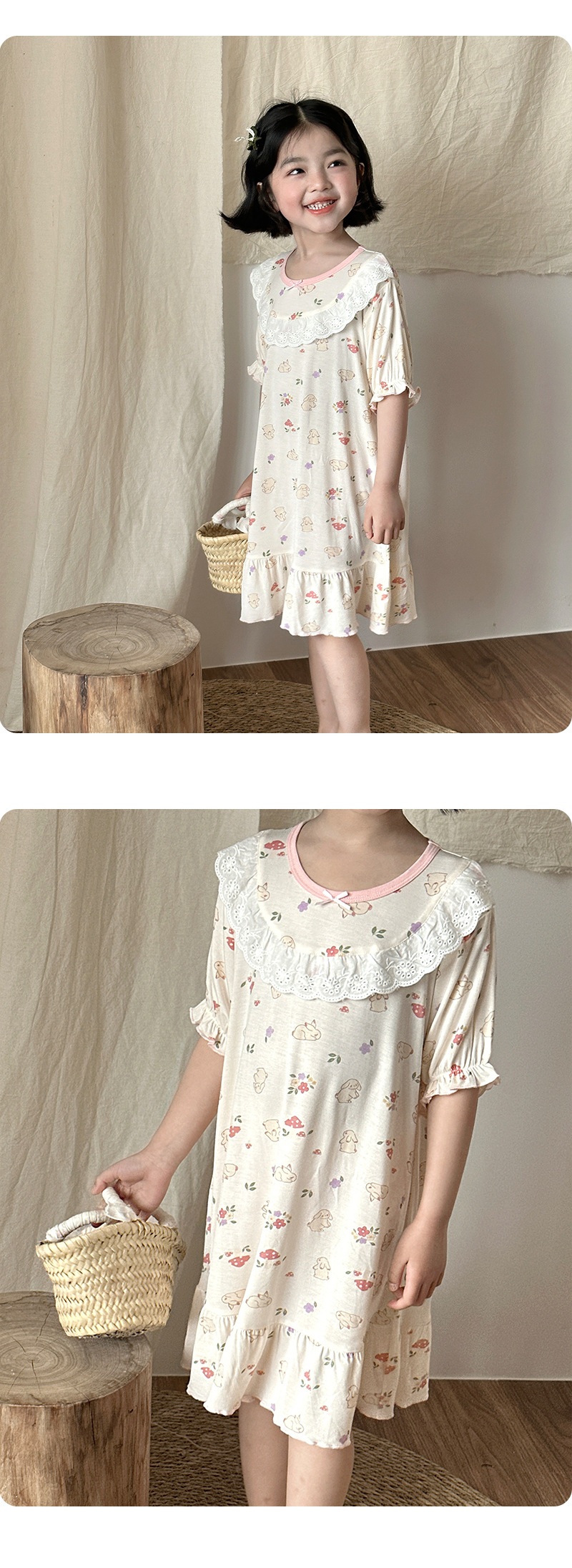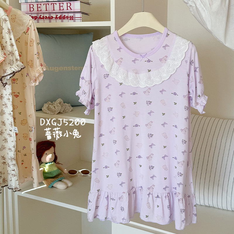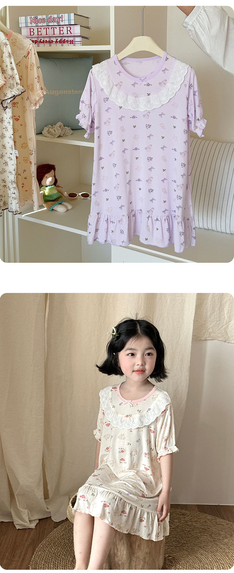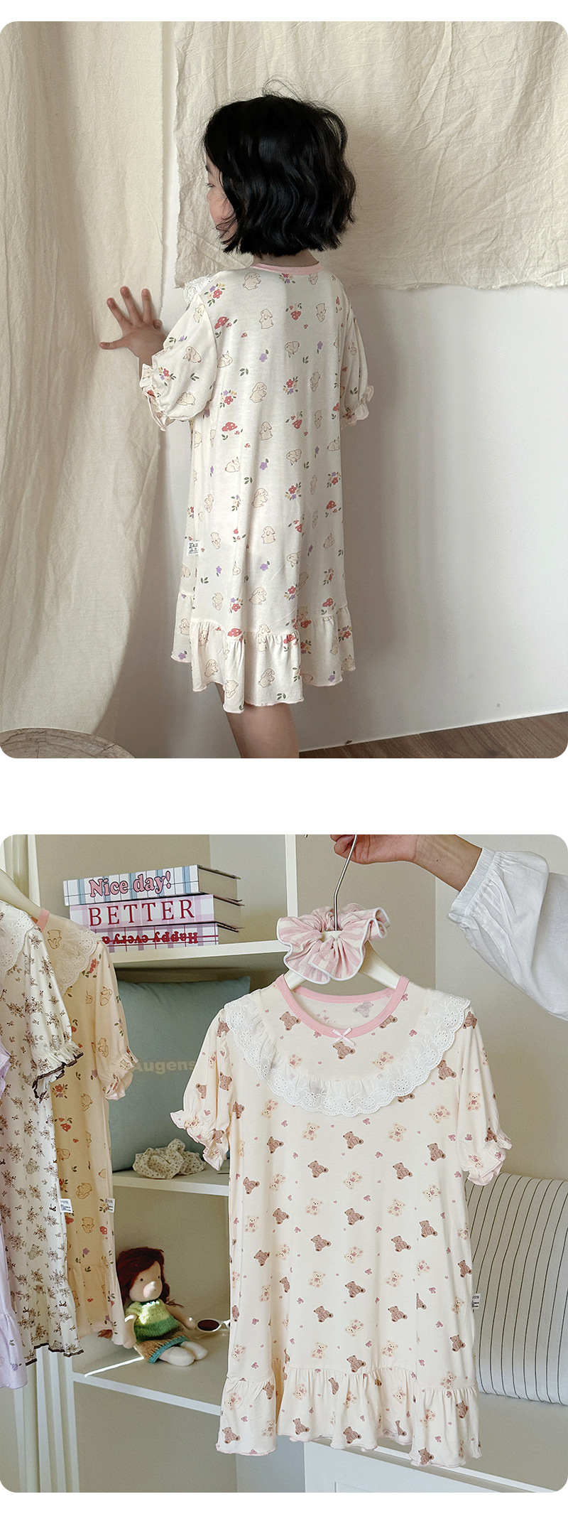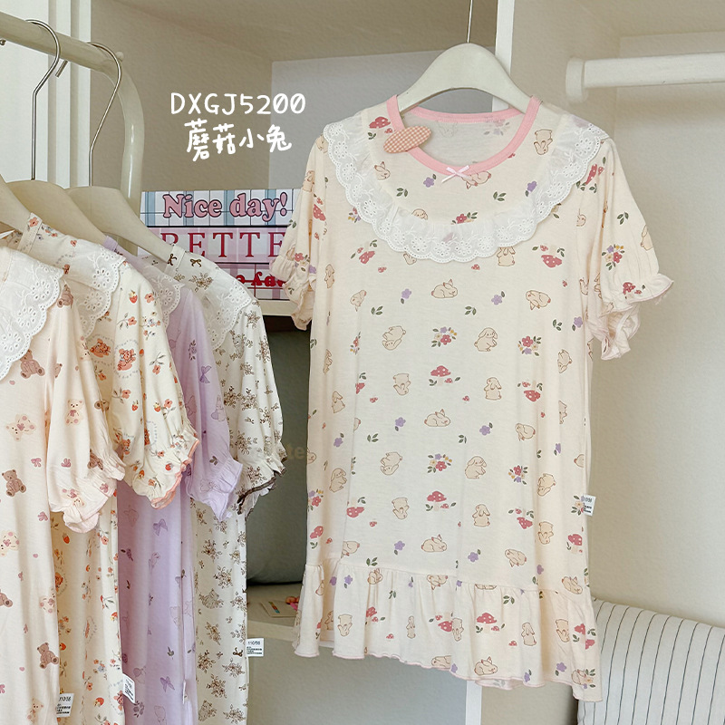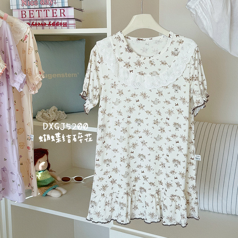 콩 새싹 곰 얼음 도라에몽 어린이 나이트 드레스 2025 여름 새로운 만화 전체 인쇄 느슨한 소녀의 레이스 여름 원피스스토어 가기