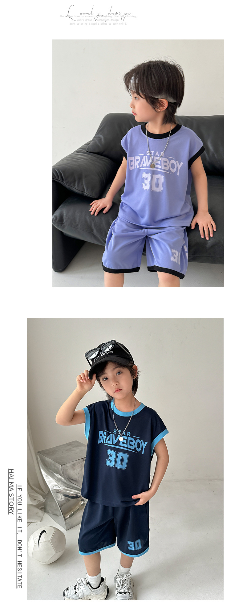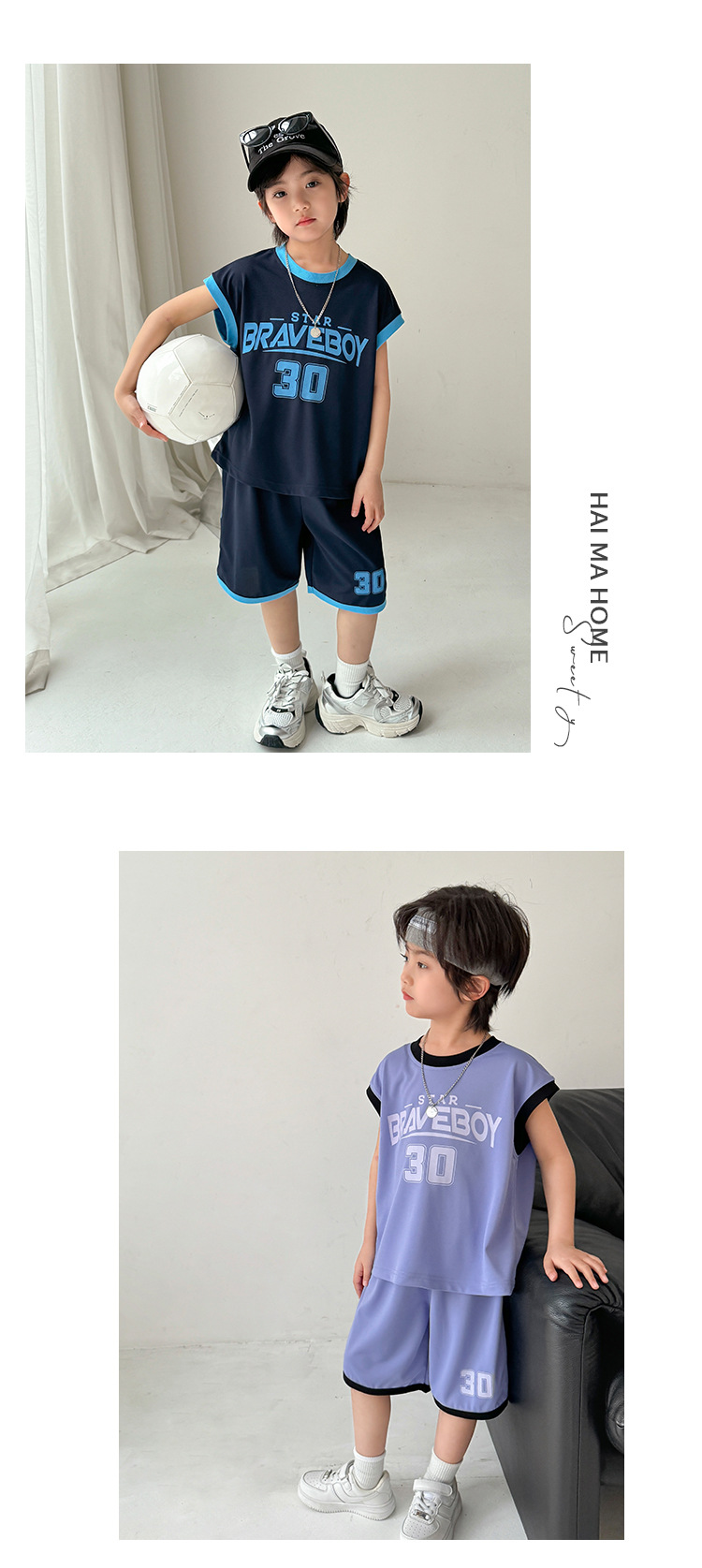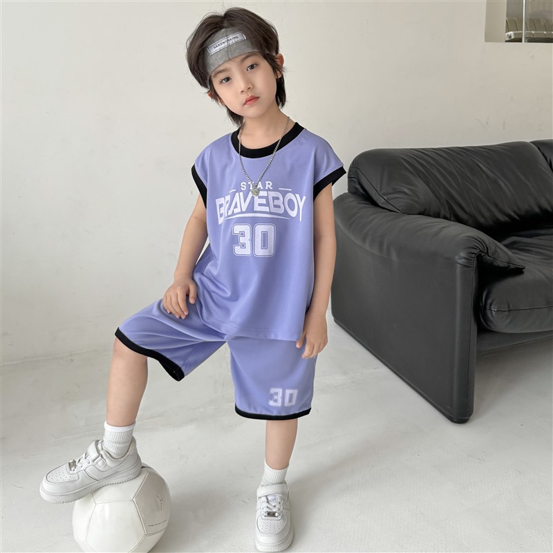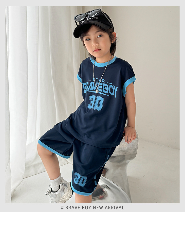하이마의 2026년 여름 신상 남아 농구 스포츠웨어 세트, 반팔 반바지 투피스 세트, 중대형 아동 여름옷