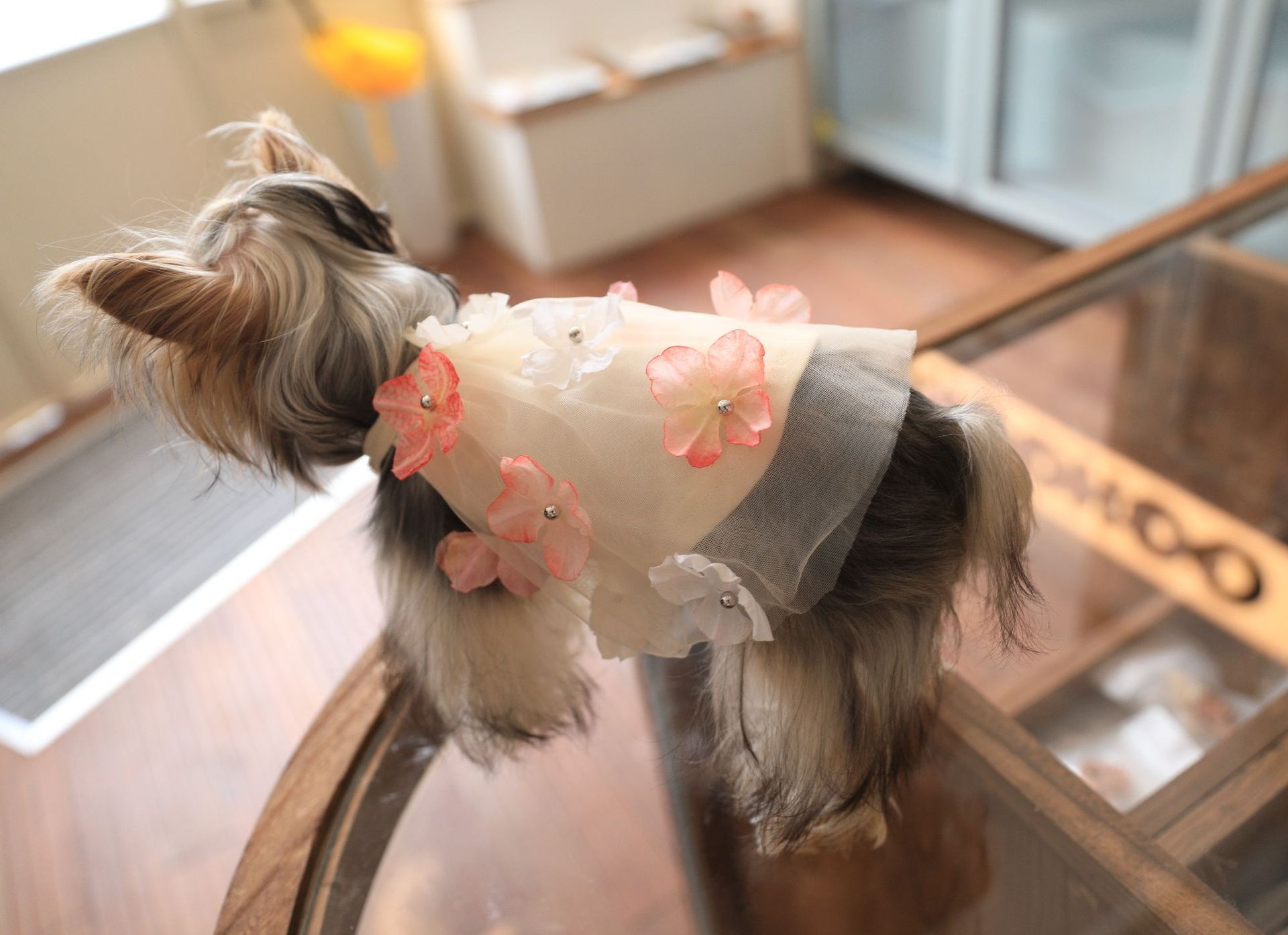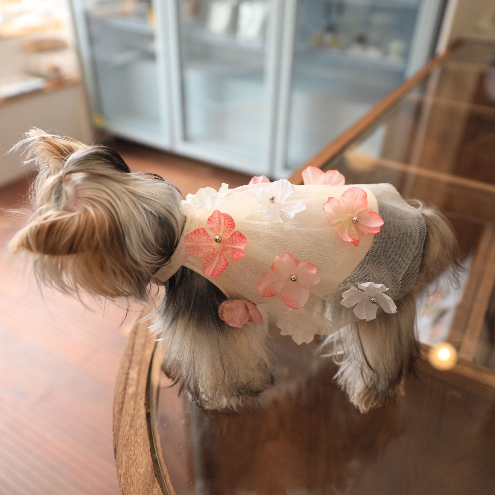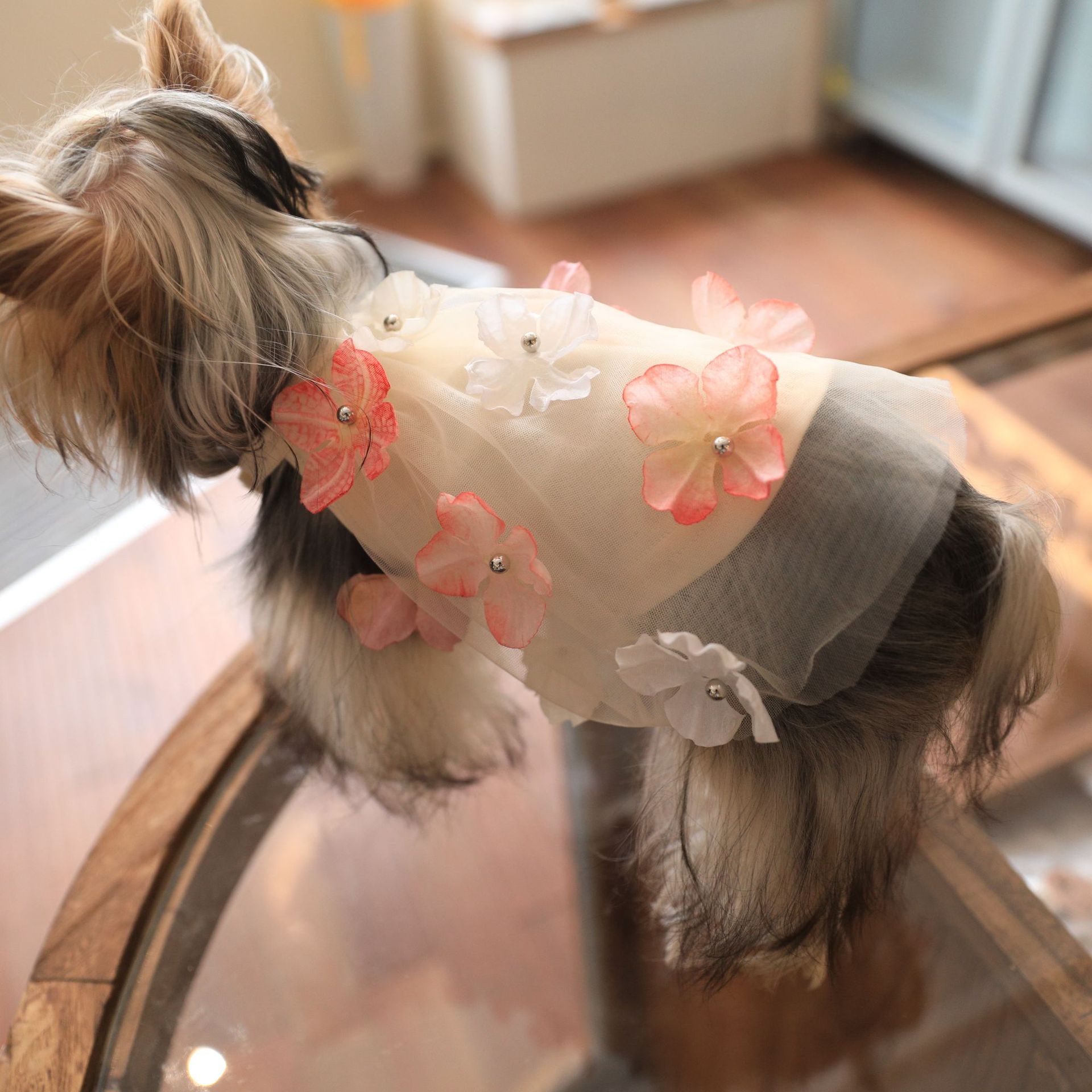여름 개 요정 슬립 스커트 3 차원 꽃 메쉬 캔디 쿨 통기성 테디 비콘 요크셔스토어 가기