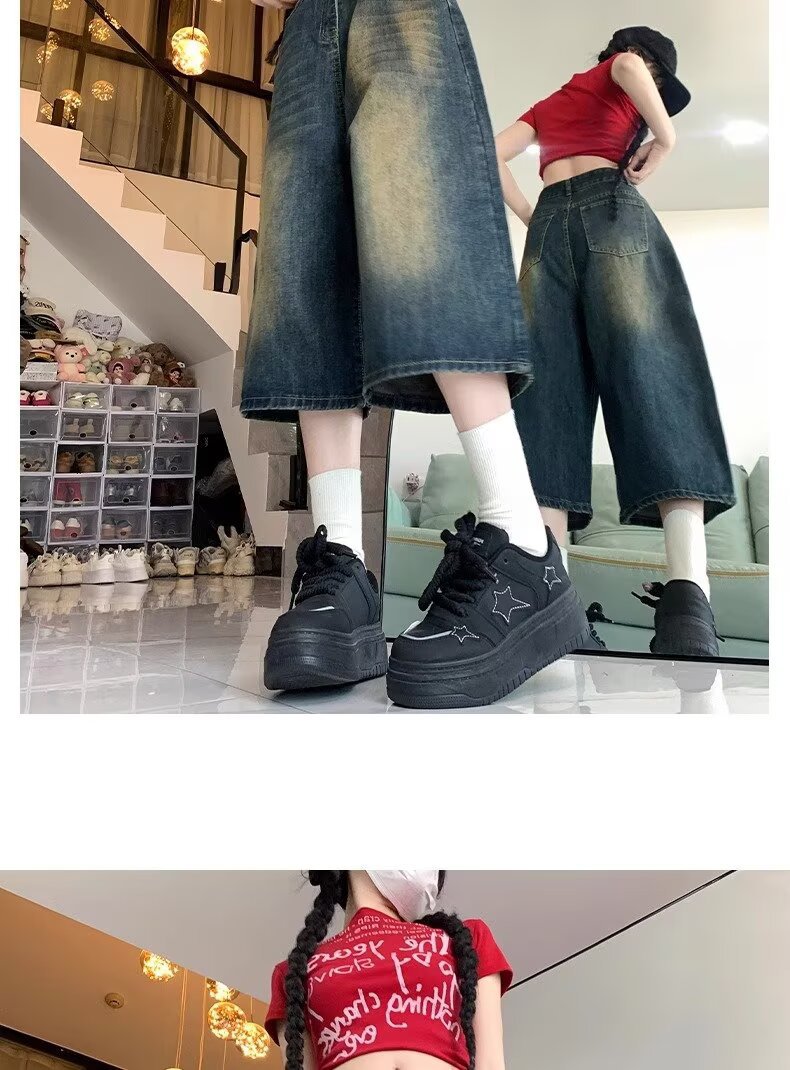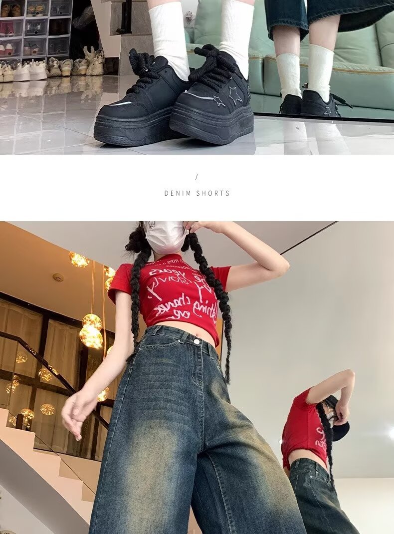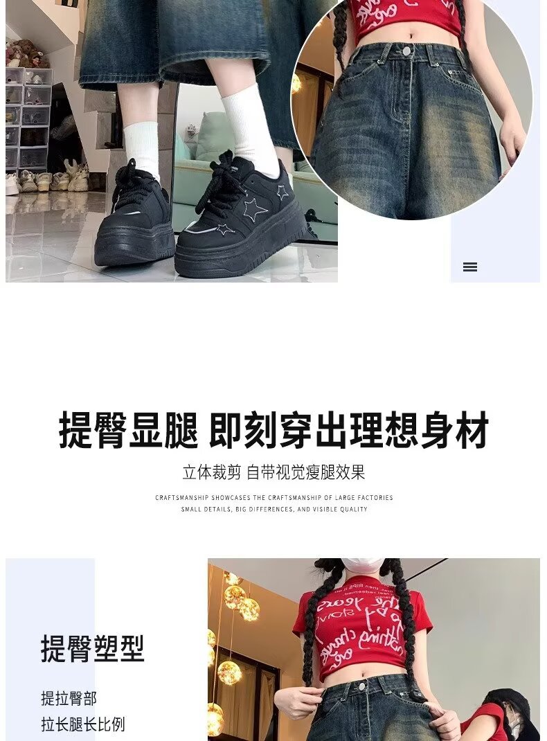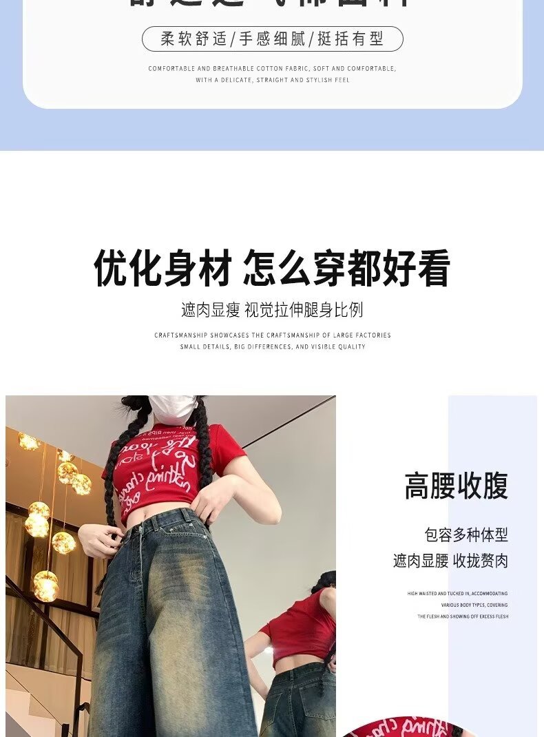 아메리칸 스타일 하이 스트리트 올드 와이드 레그 크롭 청바지 여성 여름 새로운 높은 허리 느슨한 슬리밍 빈티지 스트레이트 바지