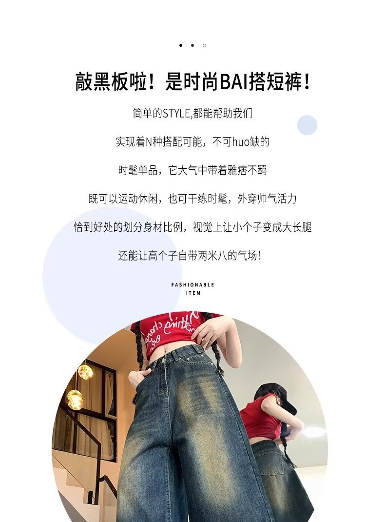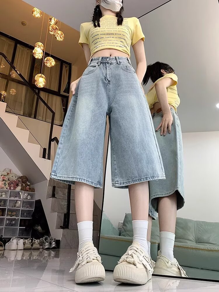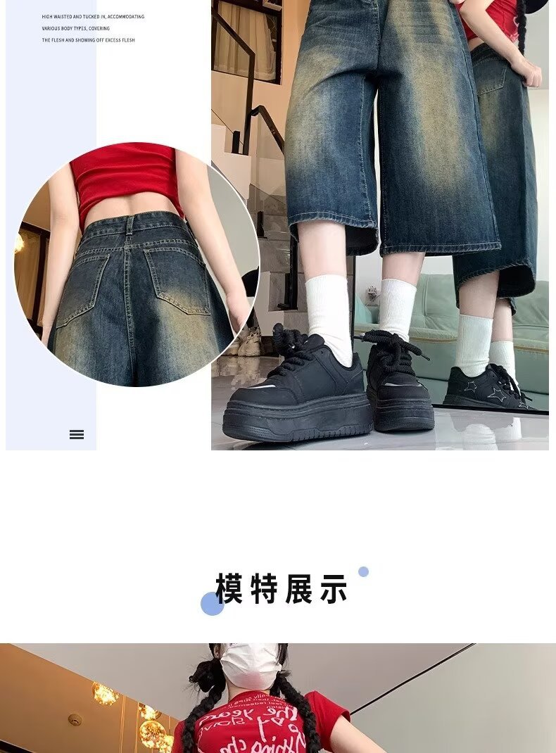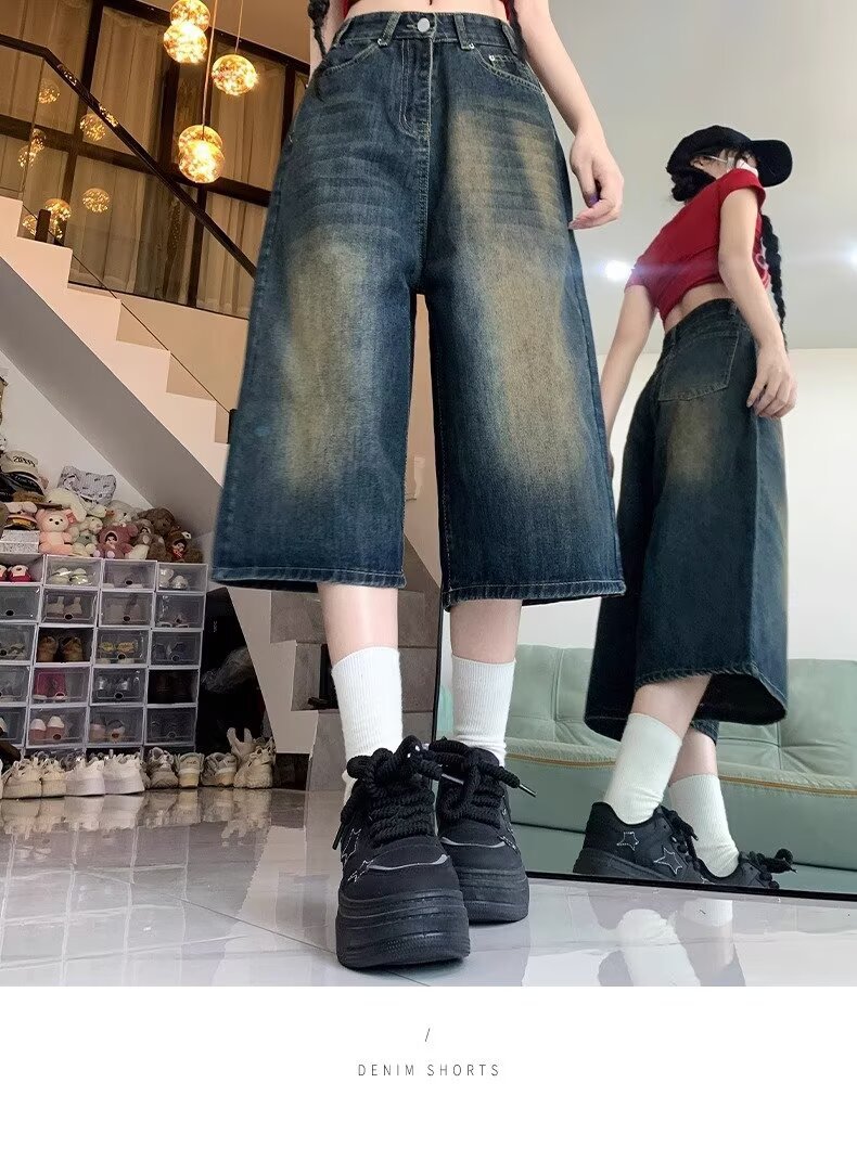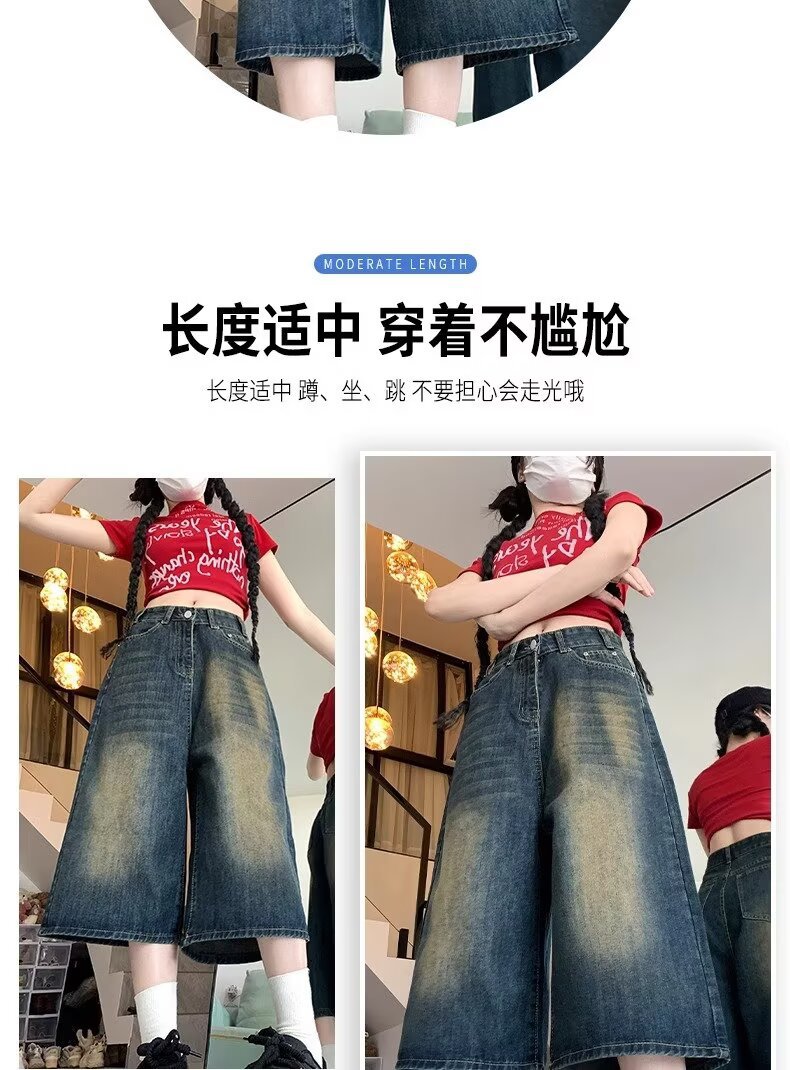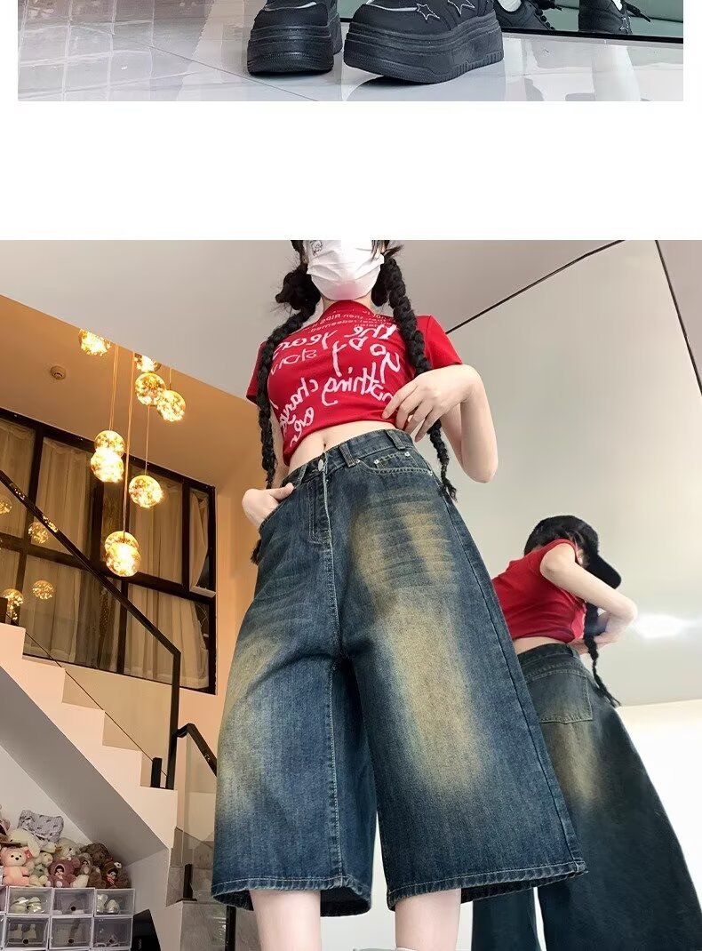 아메리칸 스타일 하이 스트리트 올드 와이드 레그 크롭 청바지 여성 여름 새로운 높은 허리 느슨한 슬리밍 빈티지 스트레이트 바지스토어 가기