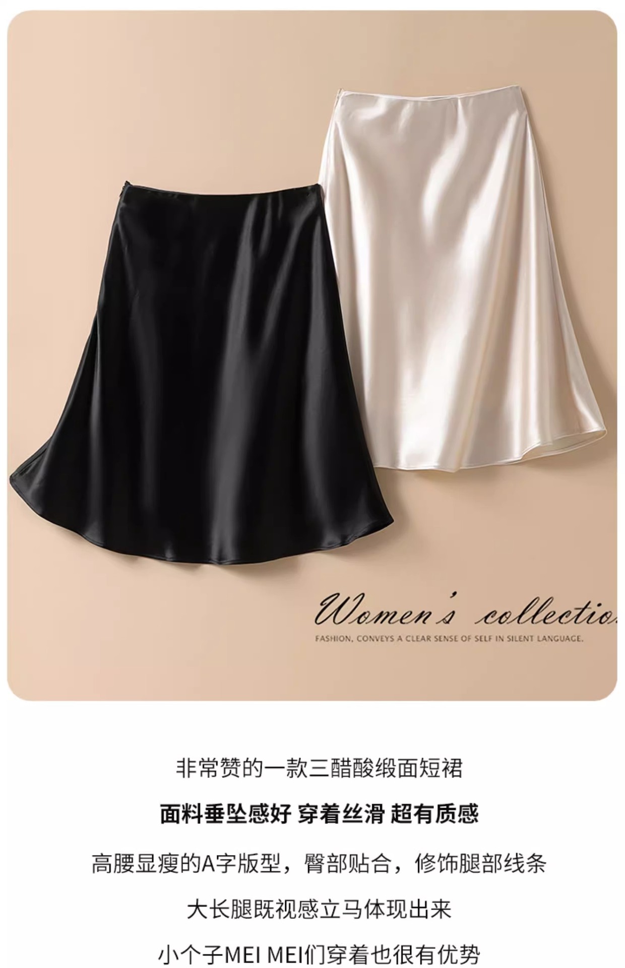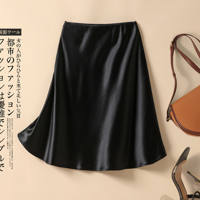 Acetic Acid Satin 스커트 여성 여름 고급 세련된 아름다운 A 라인 스커트스토어 가기