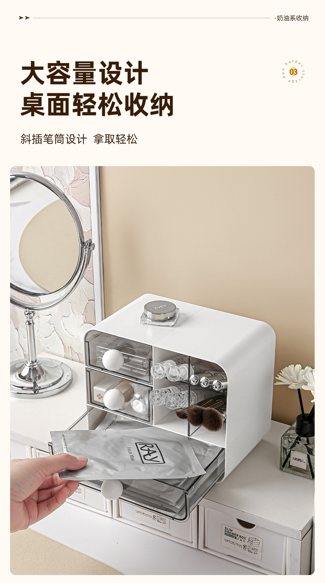 도매 데스크탑 스토리지 박스 학생 문구 경사 펜 홀더 화장품 데스크 서랍 유형 다기능 스토리지 랙