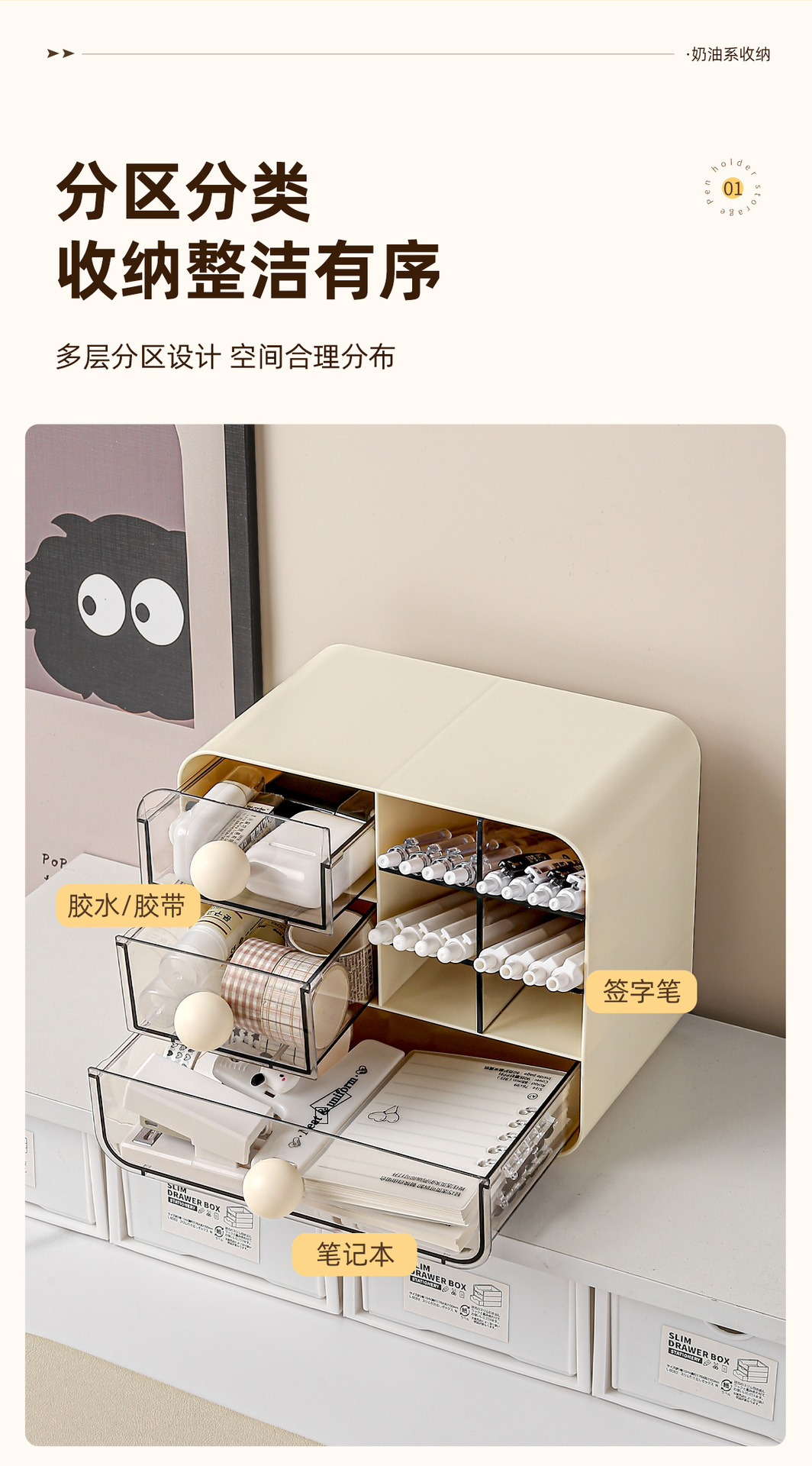 도매 데스크탑 스토리지 박스 학생 문구 경사 펜 홀더 화장품 데스크 서랍 유형 다기능 스토리지 랙스토어 가기