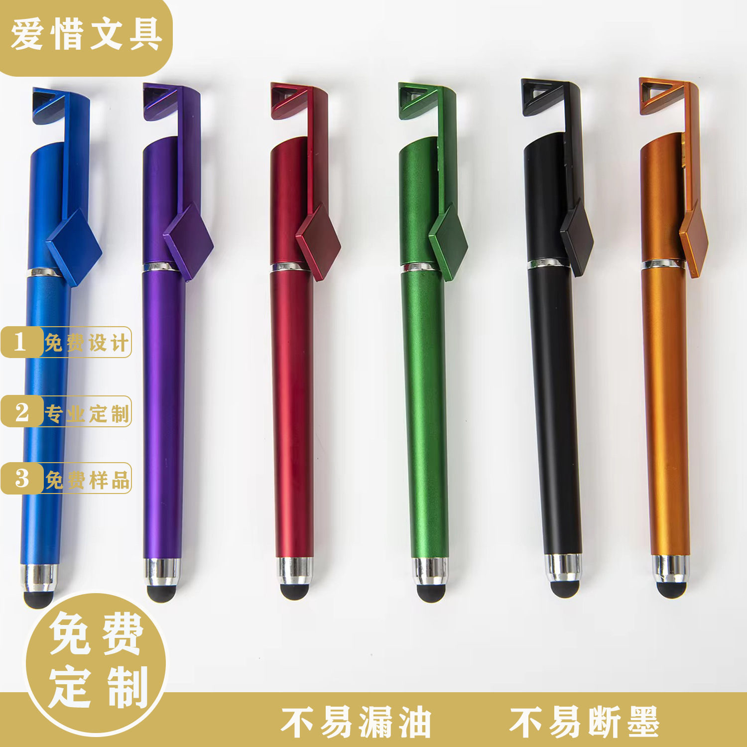 소스 제조 업체 광고 사용자 지정 로고 2 차원 코드 터치 다기능 휴대 전화 브래킷 펜 볼펜