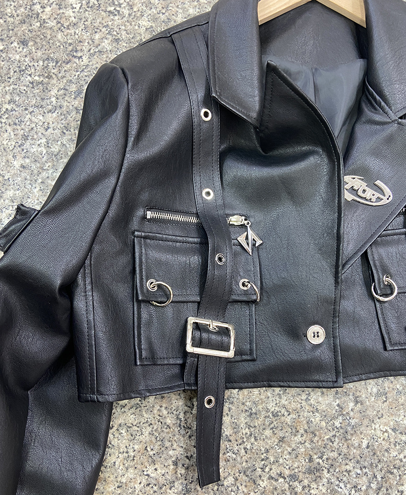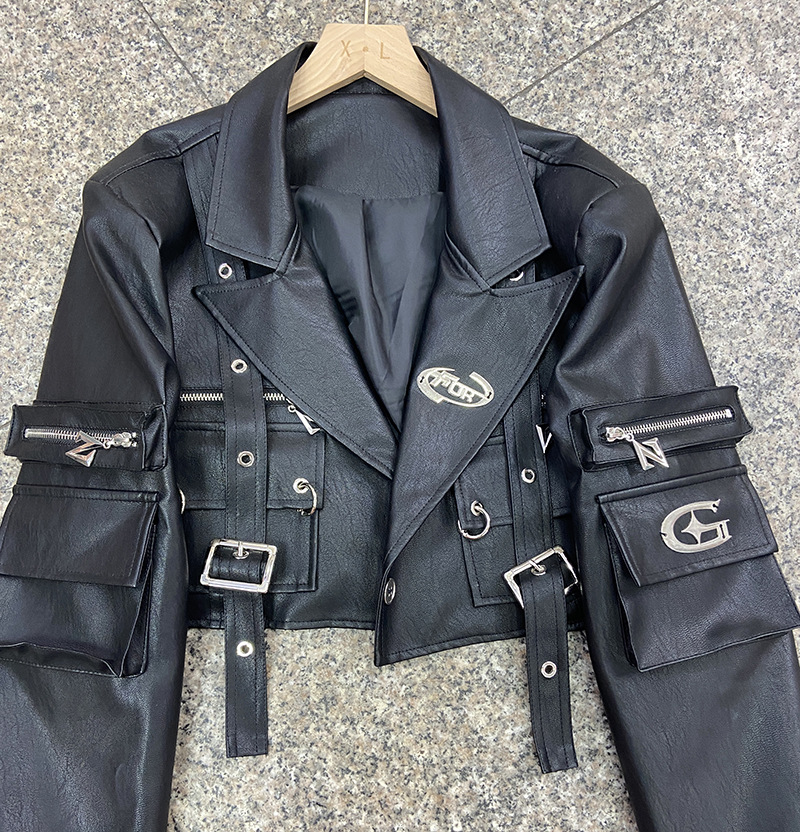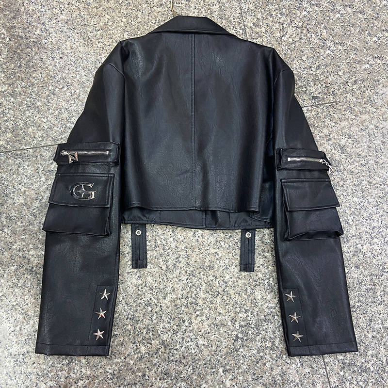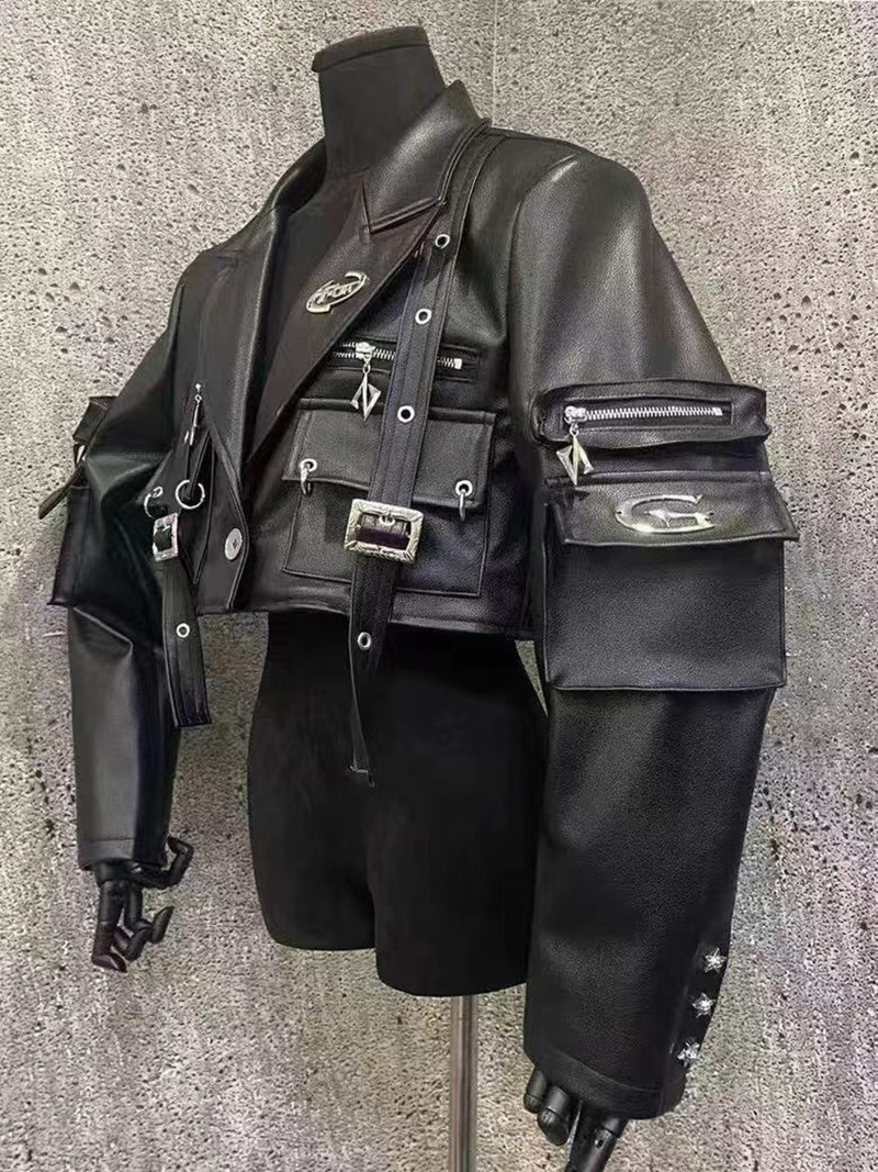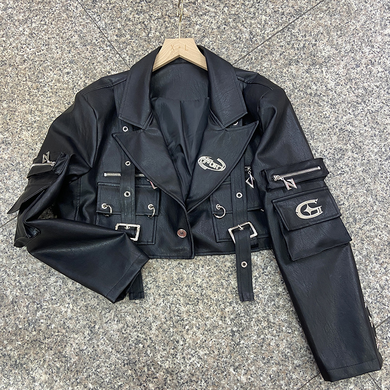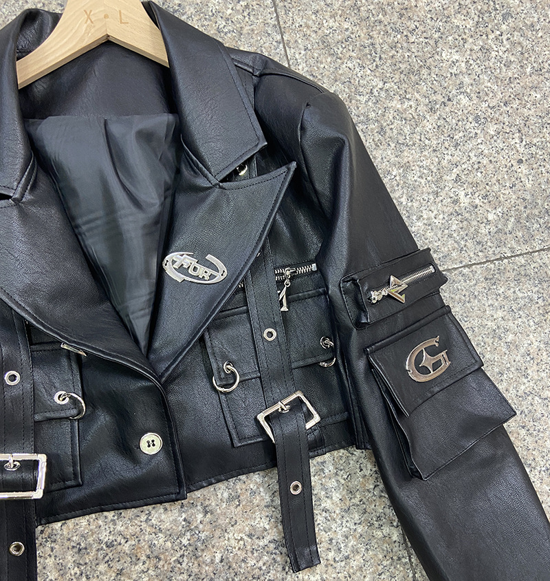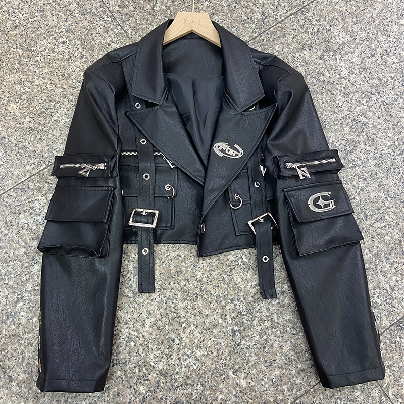 쿨 사 뜨거운 소녀 금속 장식 블랙 오토바이 PU 가죽 자켓 여성의 가을 프라이드 스트리트 툴링 멀티 포켓 가죽 자켓스토어 가기