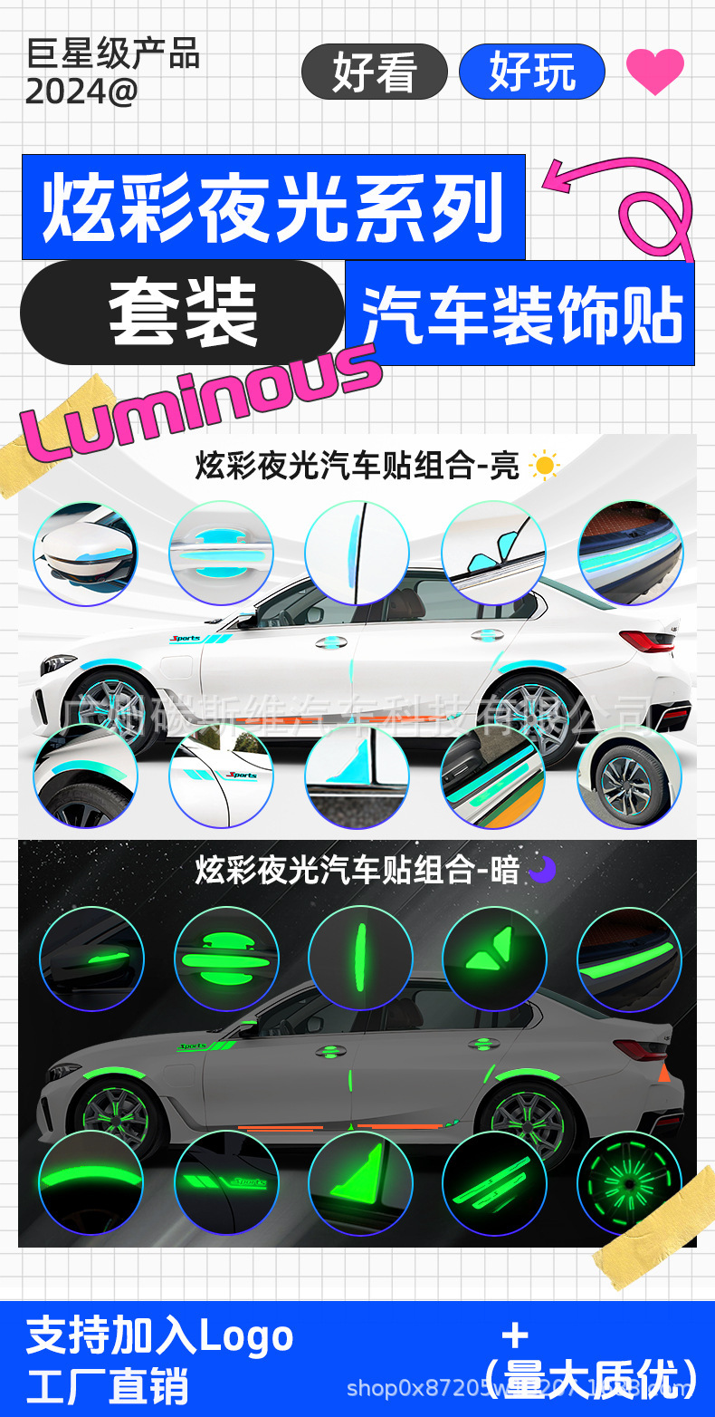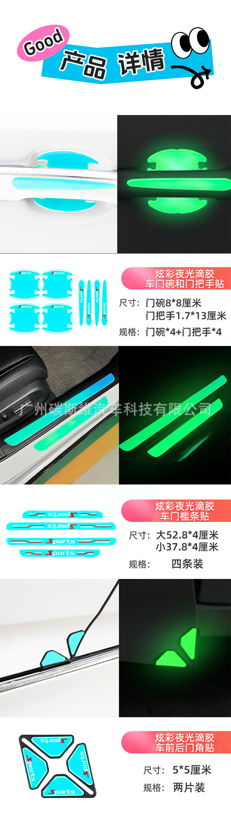 그림과 같이 새로운 매직 컬러 빛나는 자동차 바디 스티커 세트 도어 보울 도어 핸들 자동차 스티커 드롭 접착제 도어 충돌 방지 고무 스트립