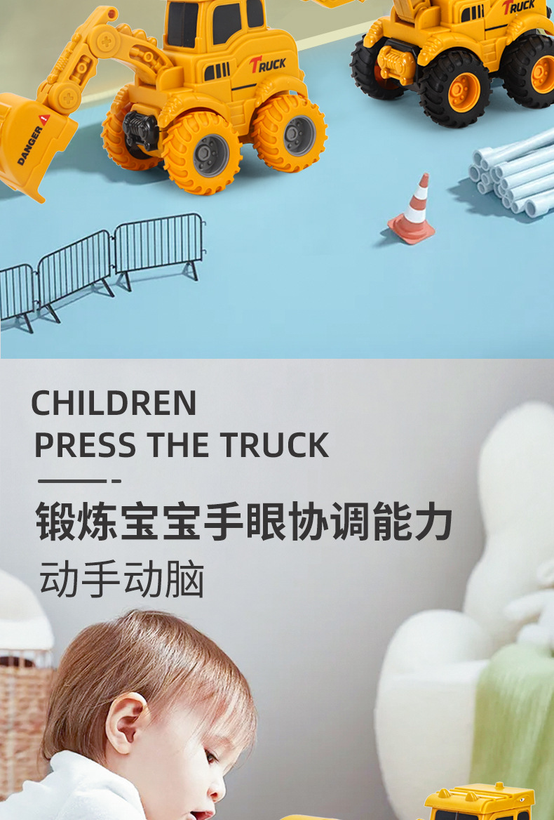 국경 간 어린이 모델 엔지니어링 차량 누르는 관성 앞으로 재미있는 풀백 굴삭기 굴삭기 퍼즐 카스토어 가기
